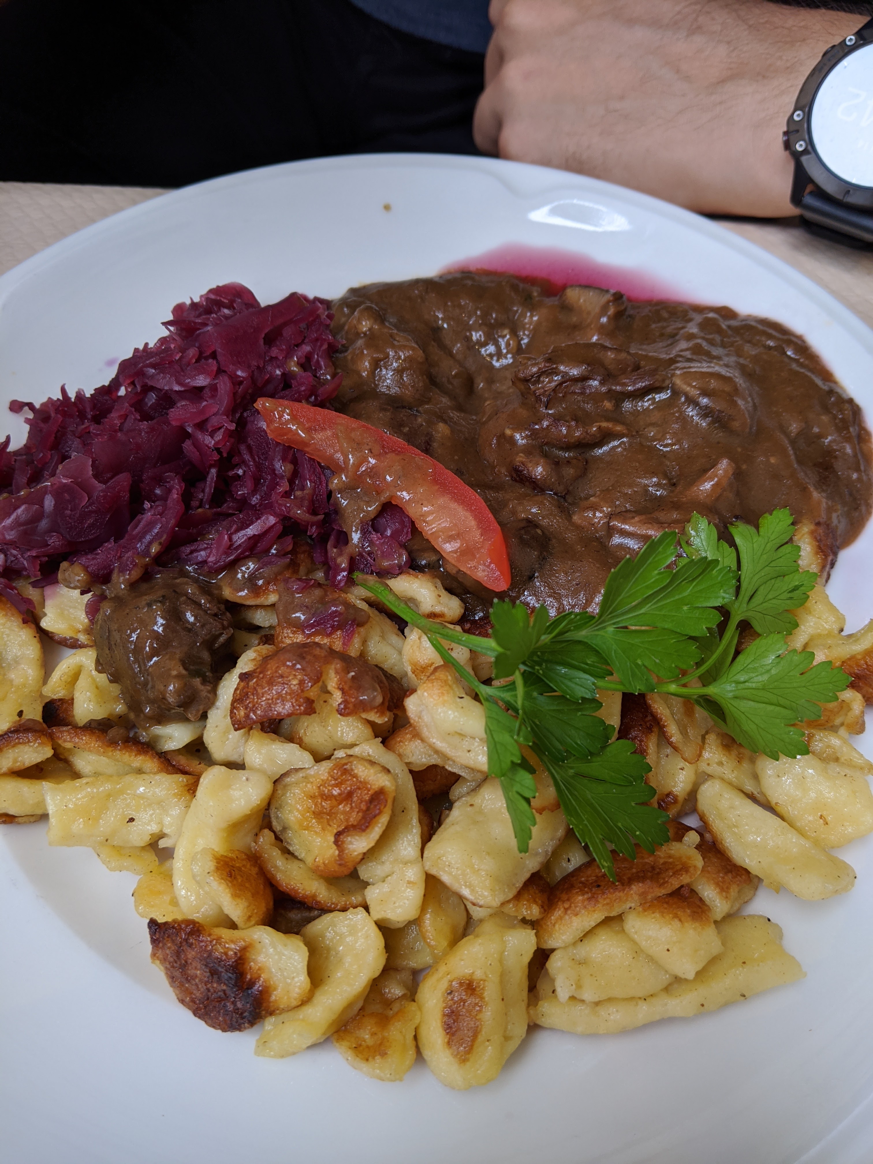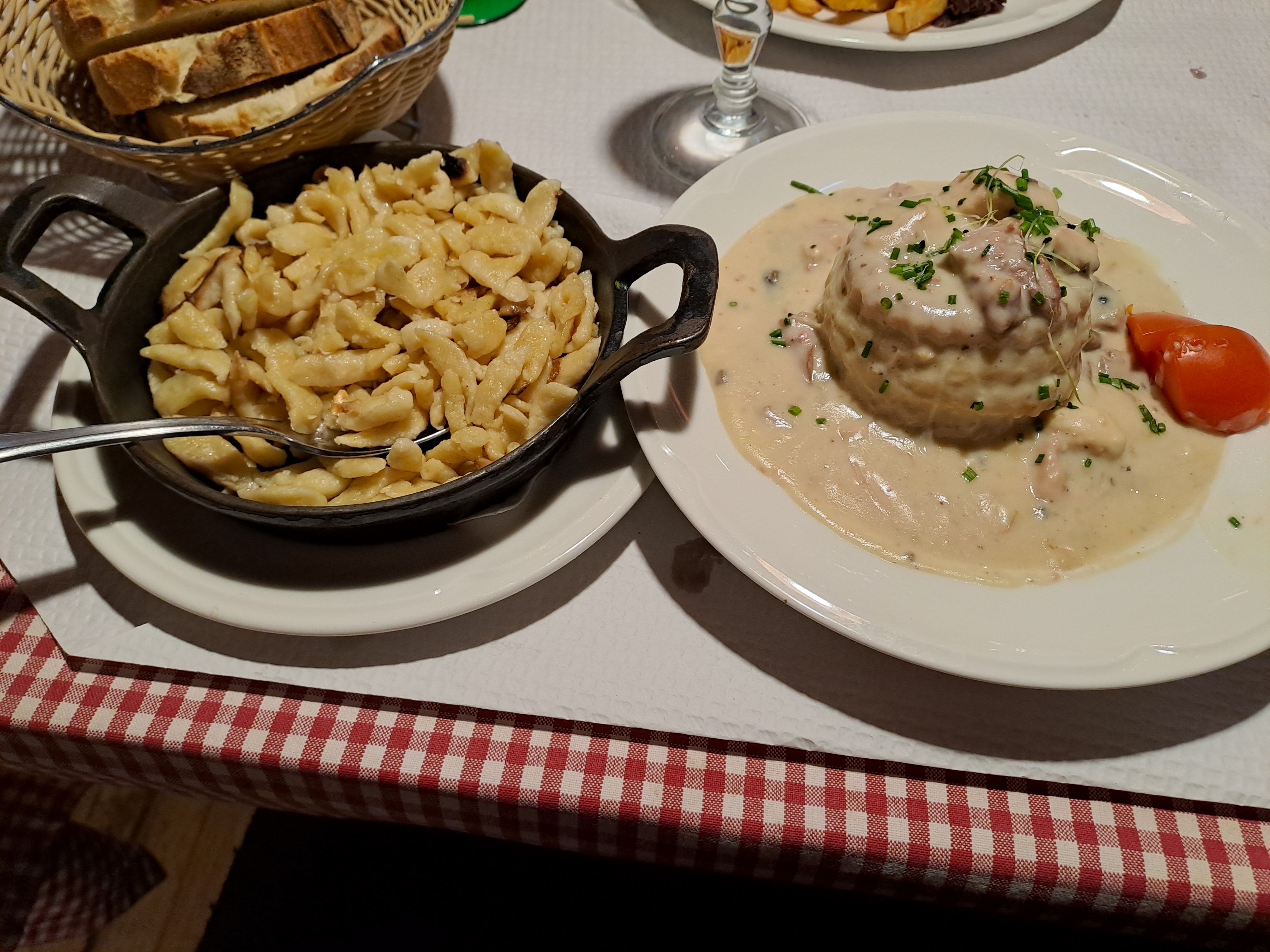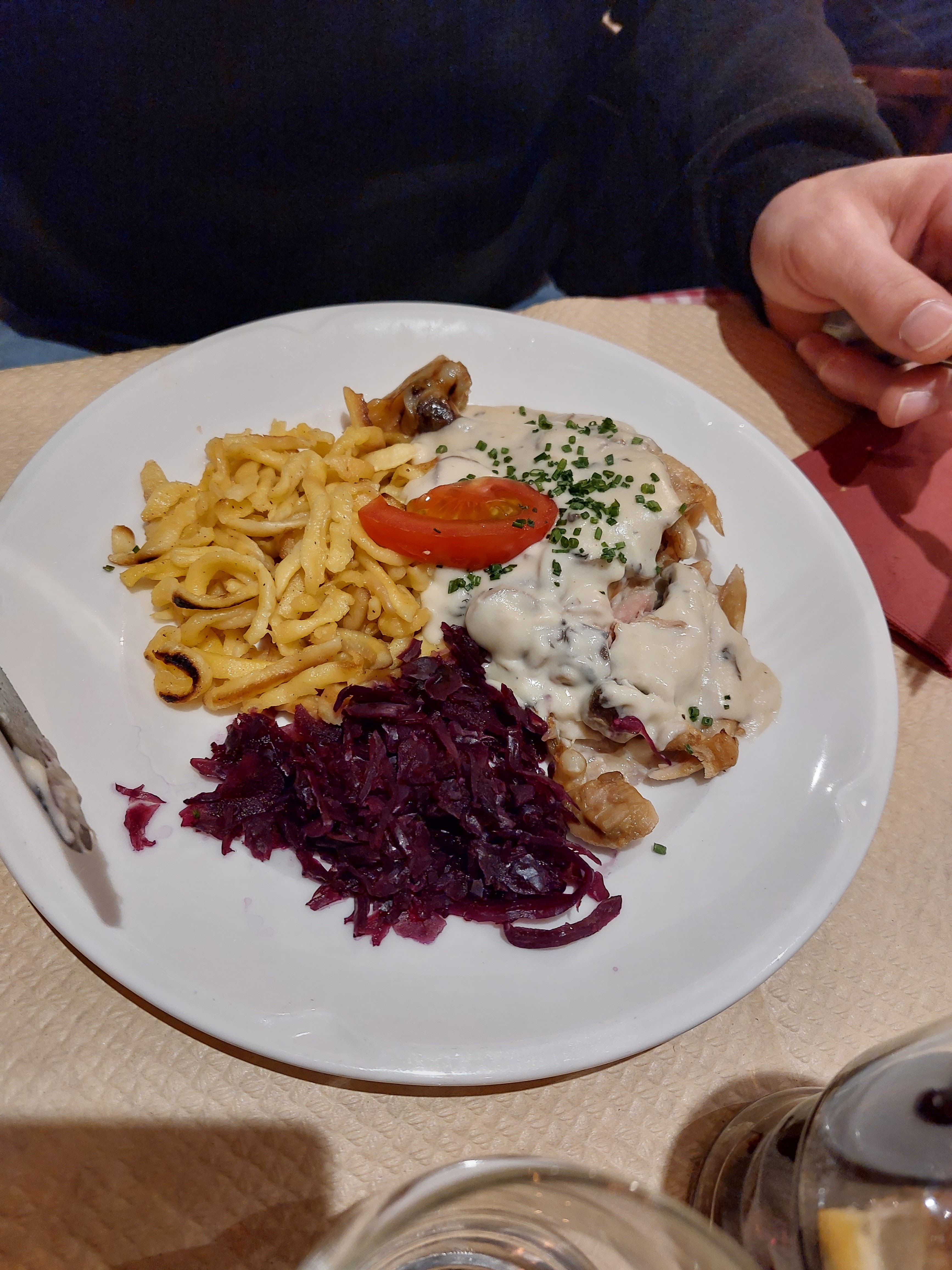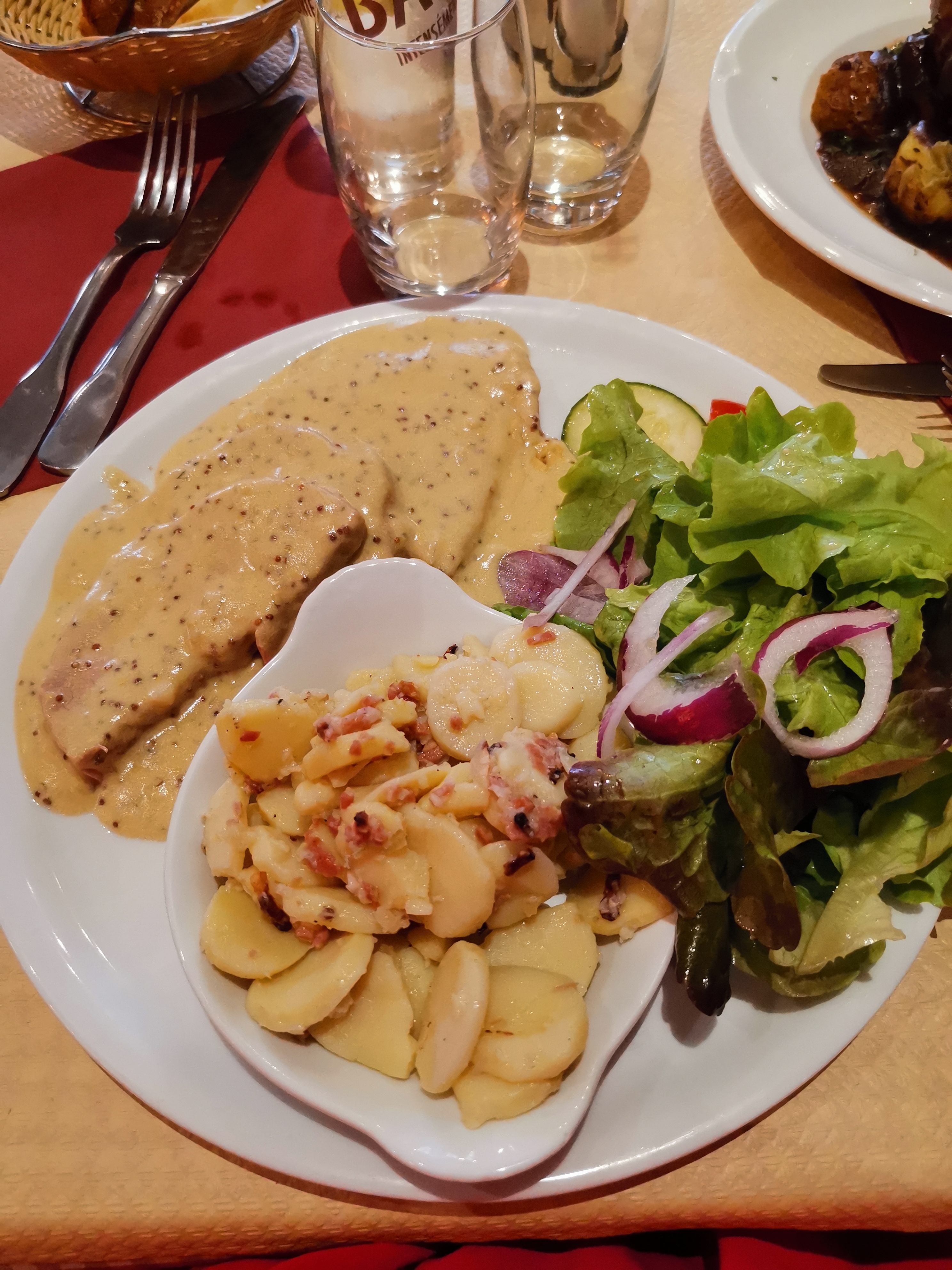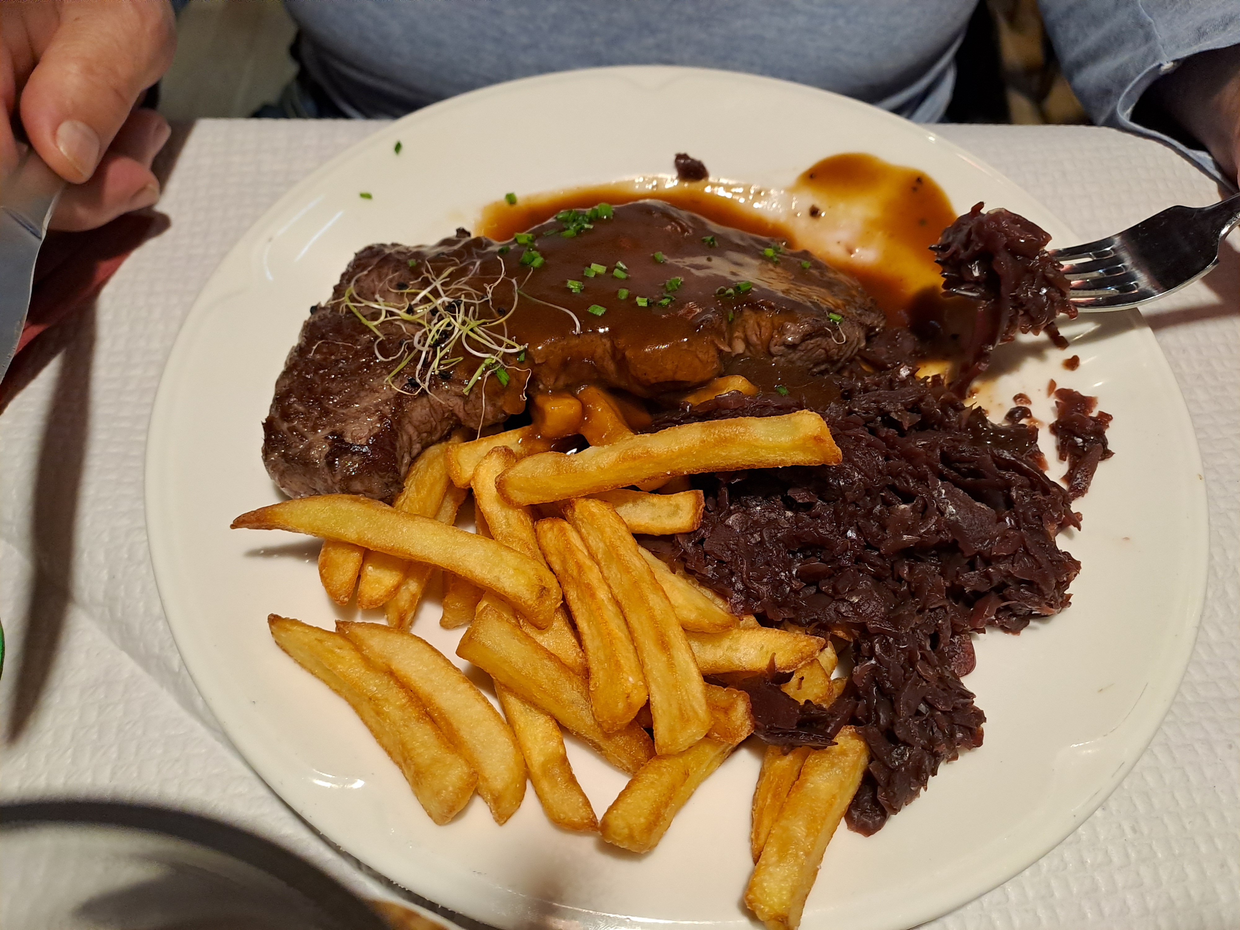 Une belle expérience. Nous étions réticents à l’idée d’aller manger dans un restaurant en période de marché de Noël mais le cadre et la sympathie des serveurs nous ont fait changer d’avis. De plus, nous y avons très bien mangé, des plats traditionnels à prix corrects et de bonne qualité. Je recommande ! Un GROS plus pour la forêt noire qui est à tomber !
