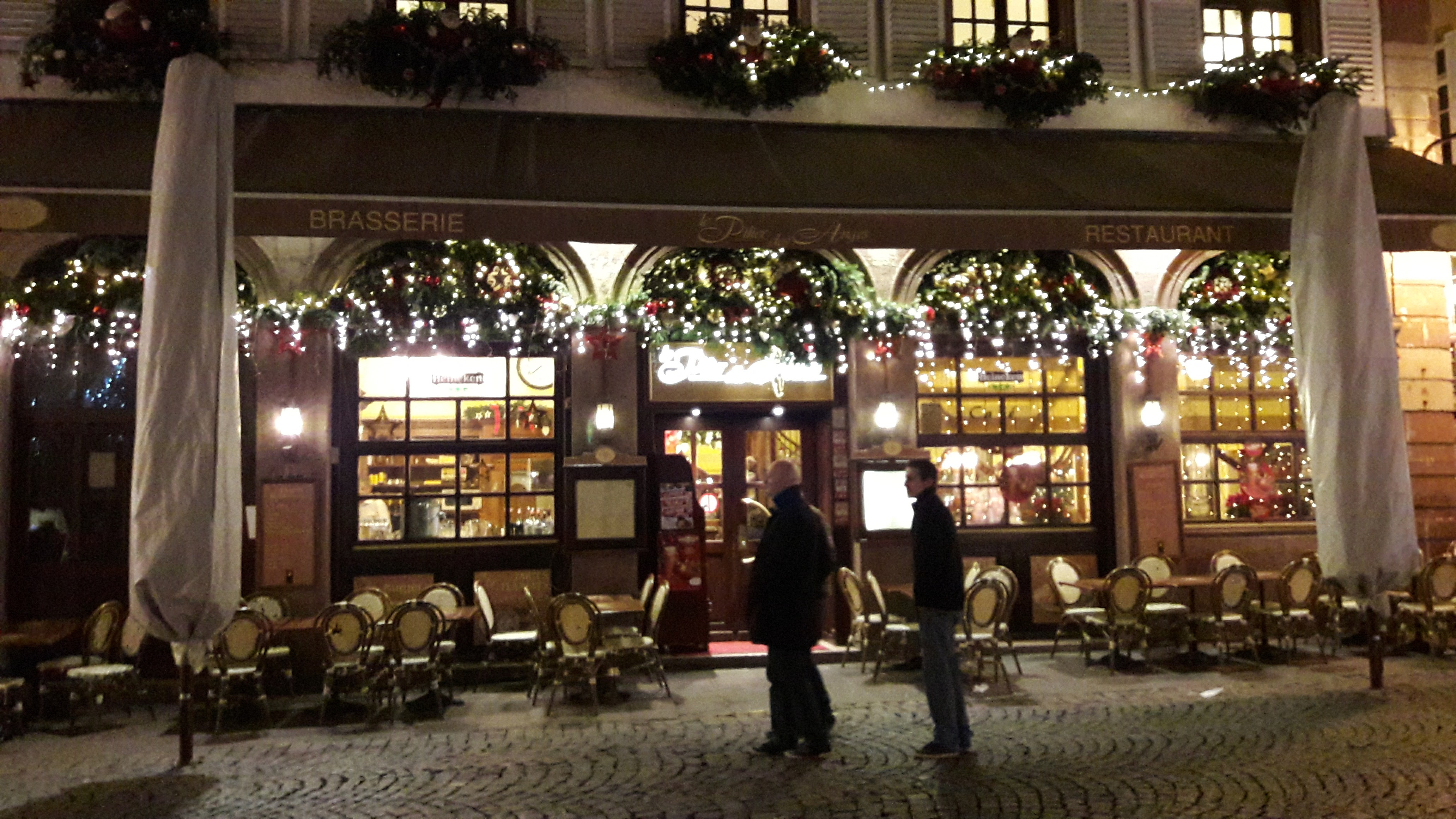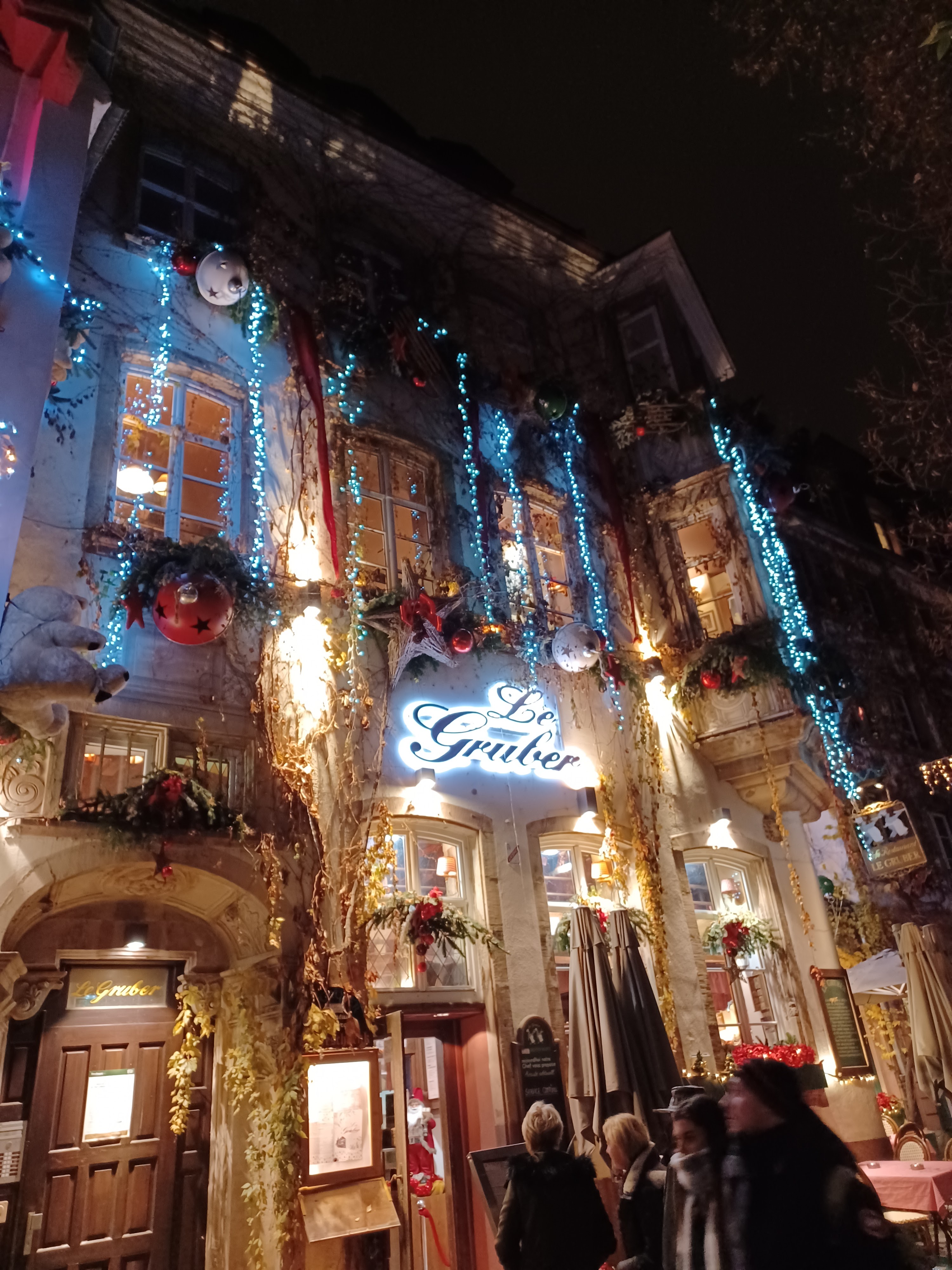 Probablement le pire repas que j'ai fait à Strasbourg. Le repas du réveillon de Noël est une escroquerie: le foie gras suinte tant il est chaud, certaines tables n'ont pas eu de confit de figues, la mienne n'a pas fait exception, l'amuse-bouche était un mini-macaron sec caramel salé, le plat de resistance était médiocre, poulet surcuit, 3 patates, on ne parlera pas des morilles et de la sauce aux truffes et le bouquet final: la tranche de buche picard et son coulis de mangue industriel. 66 balles par personne sans les boissons!! J'ai fait de meilleurs repas chez flunch ^^ la palme revient au carrillon de la mort wtf qui joue de manière impromptue dans un immense moment cringe... trois fois. Et joyeux Noël hein