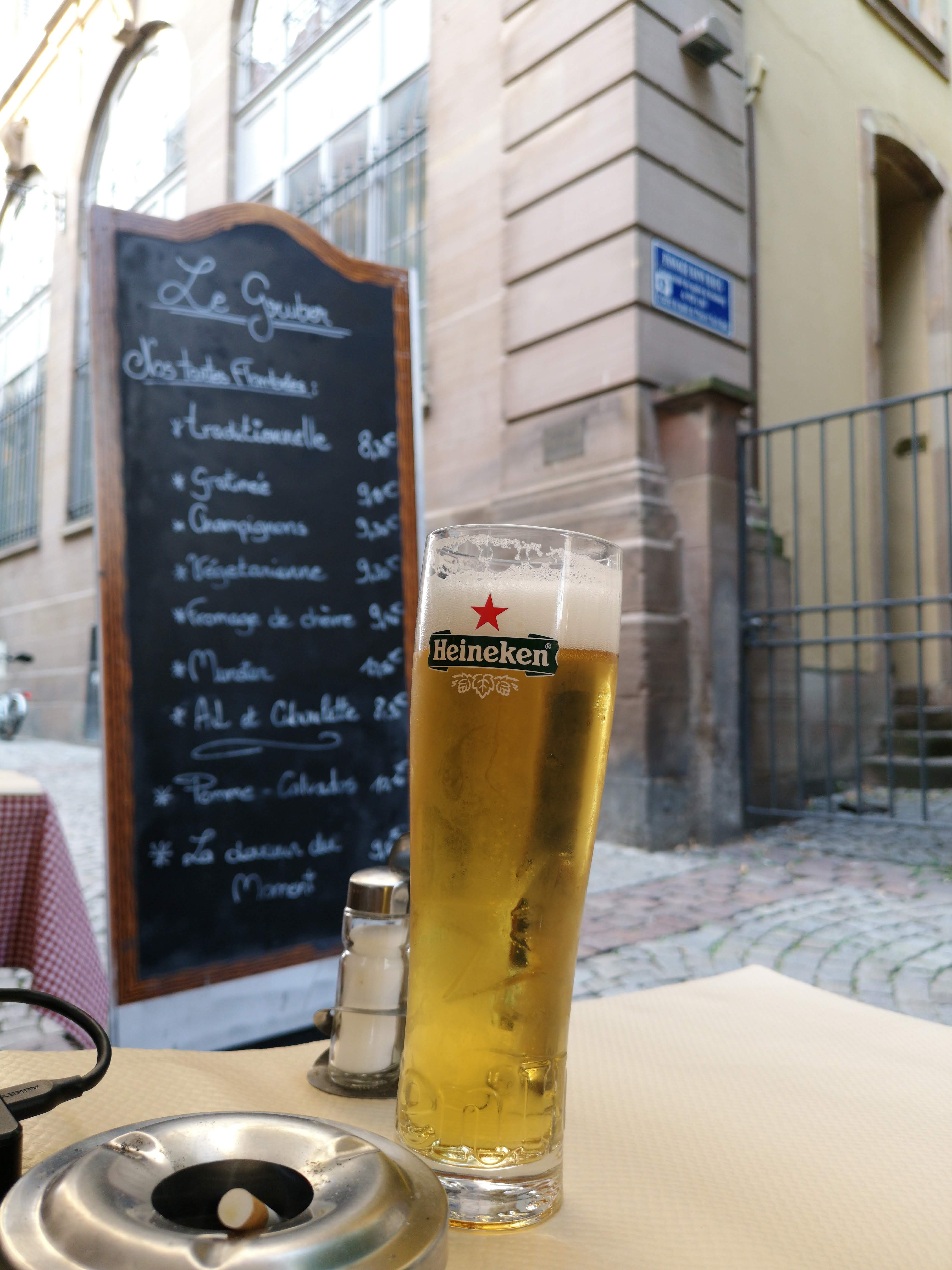 Peu de plats et aucun desserts sont faits entièrement maison avec des produits bruts mais c'est indiqué sur la carte. Serveuse aimable mais sans plus. Plats (choucroute et fleischnaka) bons, desserts vraiment pas top (beaucoup de crème dans le tiramisu et seulement 2 cerises dans une part de forêt noire). Il doit y avoir mieux sur Strasbourg mais on est dans l'ambiance. Malgré le beau temps, nous avons préféré pour cela être à l'intérieur plus calme et avec la déco plutôt qu'en terrasse avec le passage des touristes
