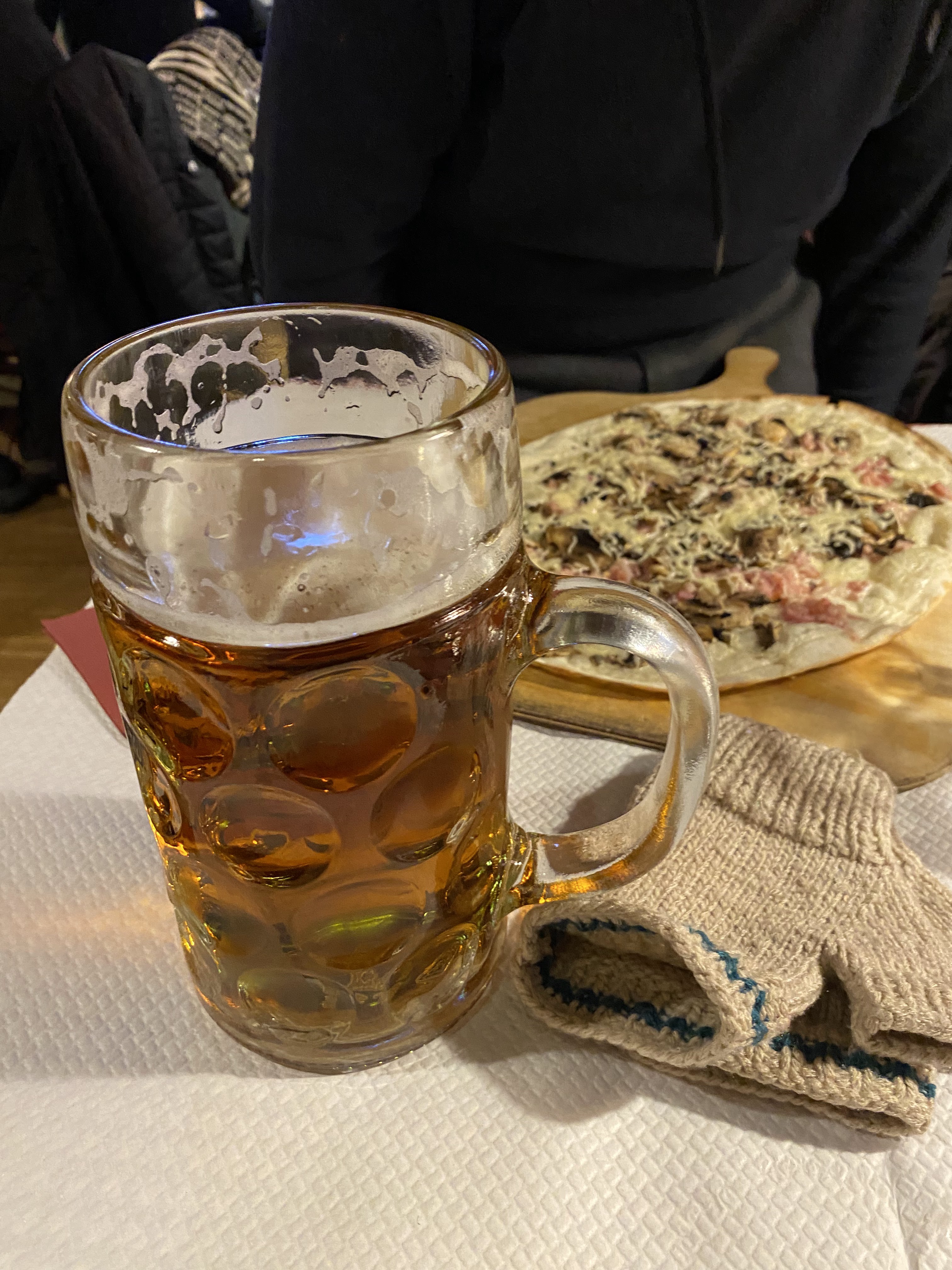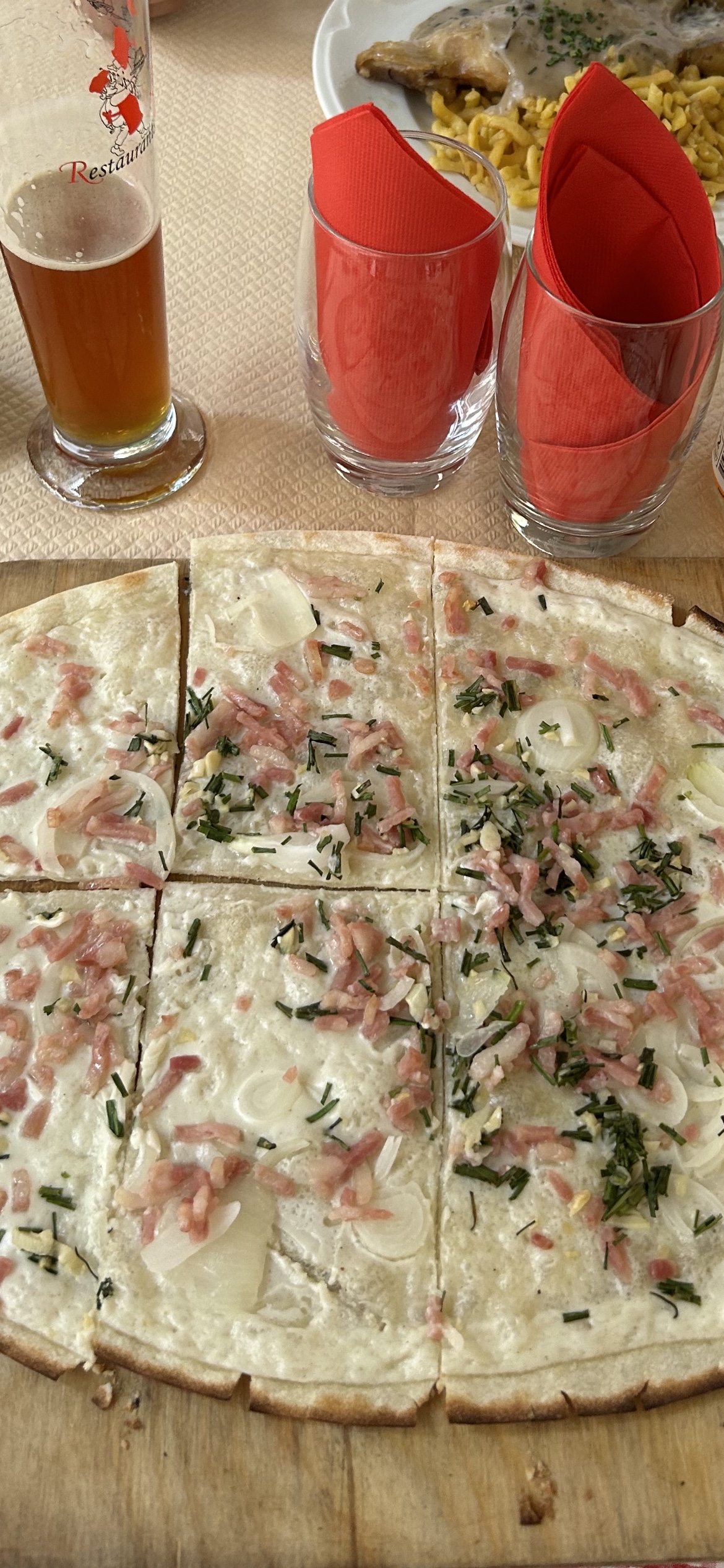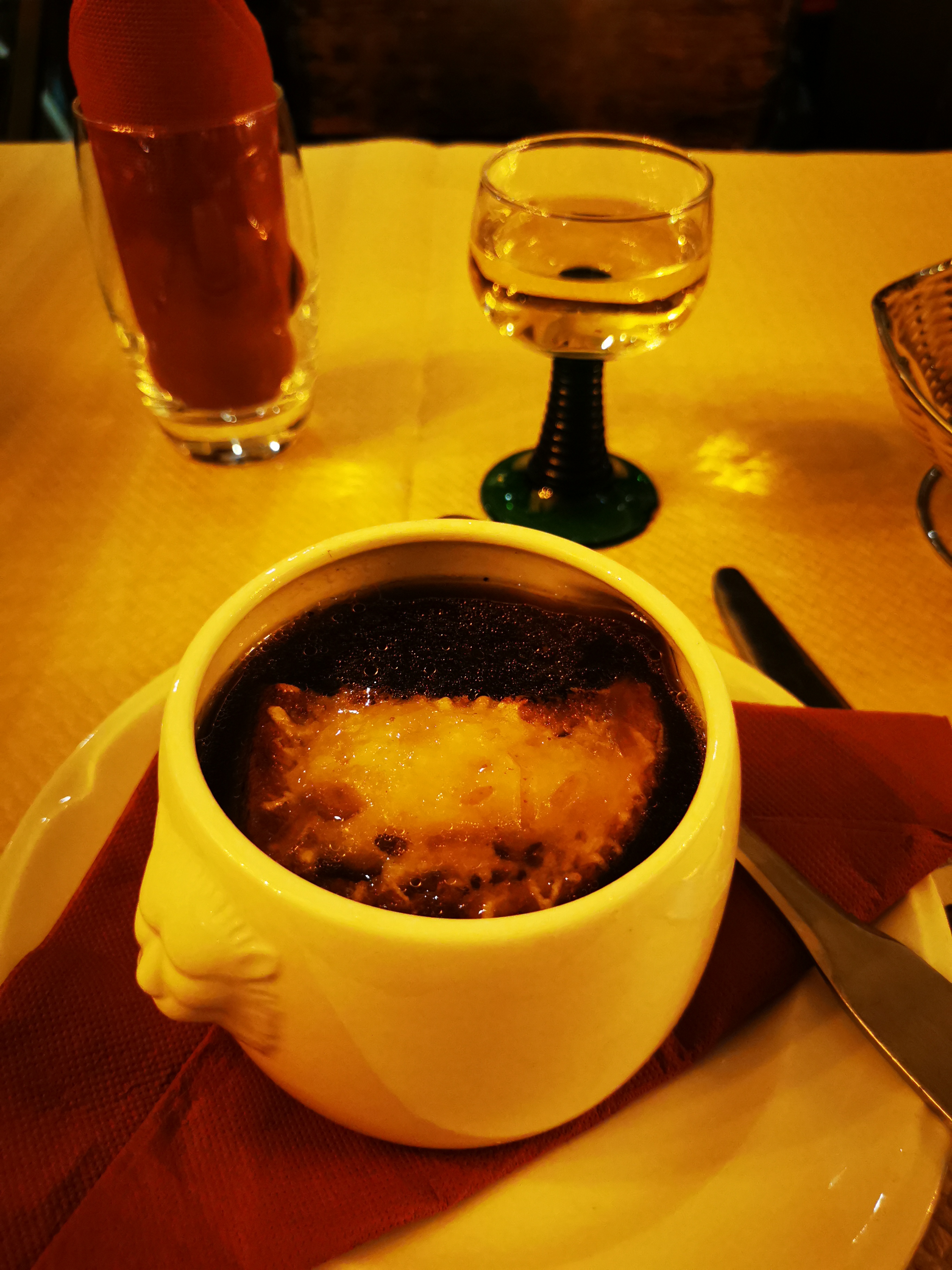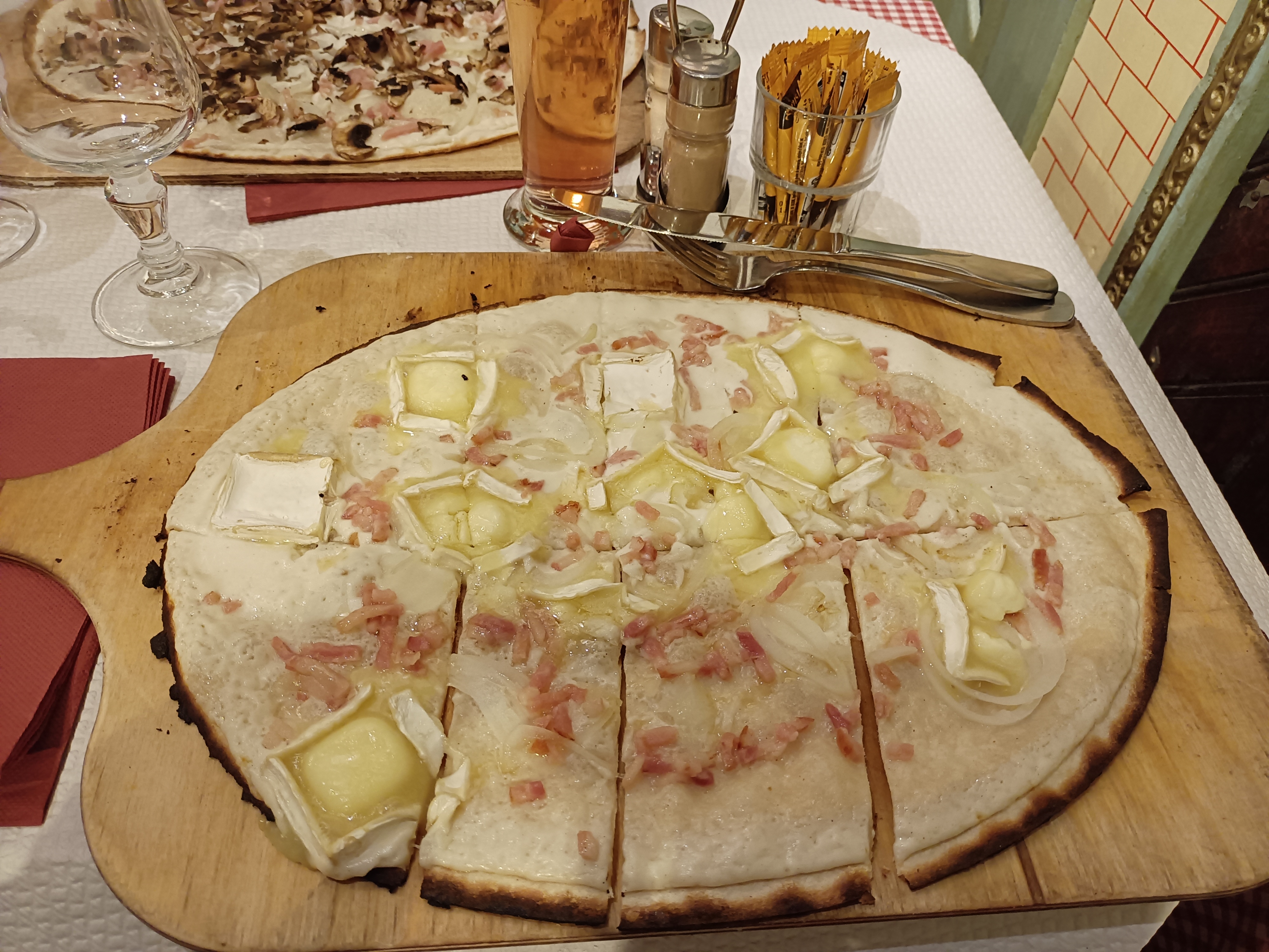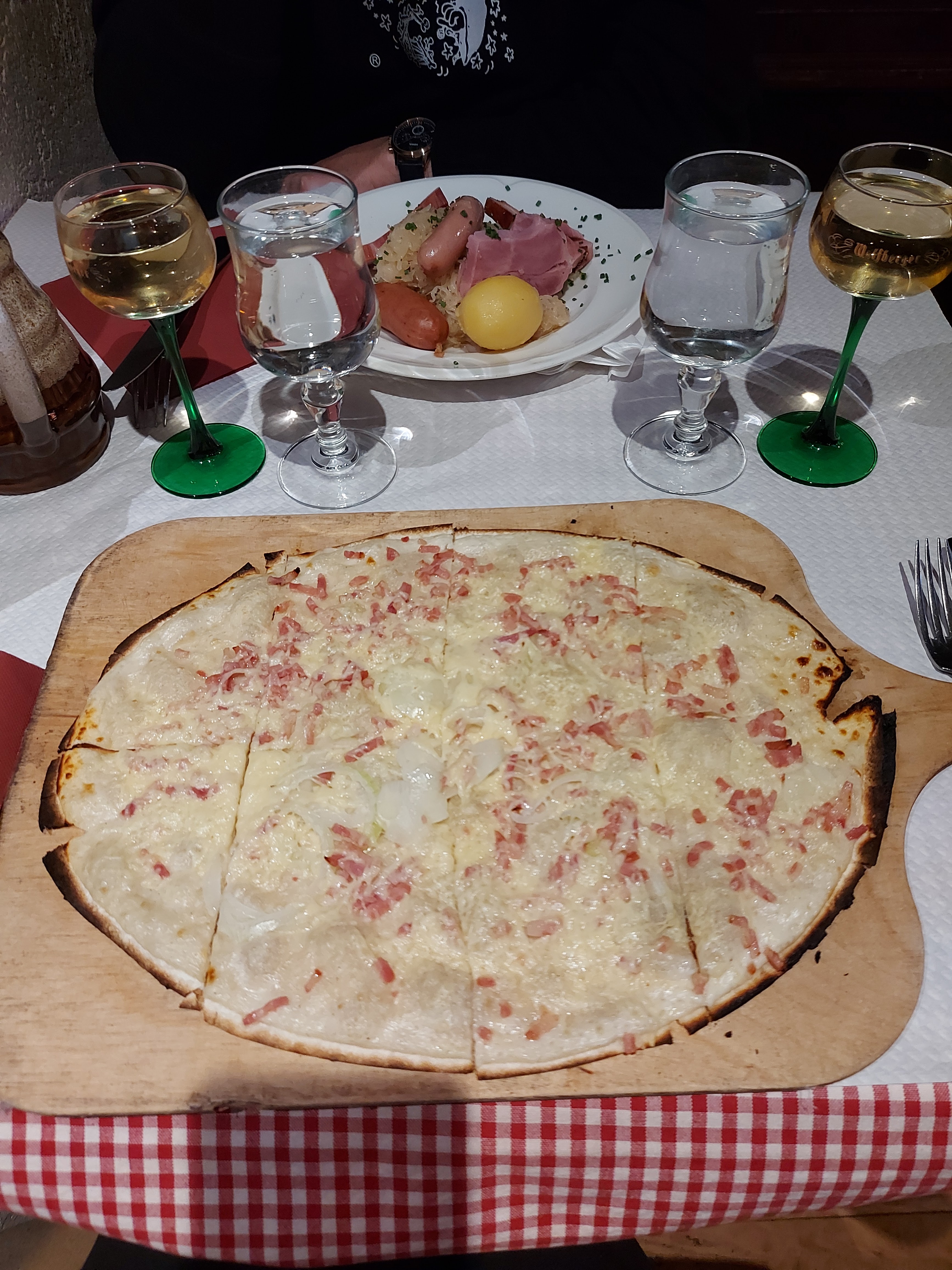 Un petit bistro près de la cathédrale, nous y sommes allés assez tard vers 22h et le service est l’accueil était top. Nous avons pris une tarte flambée au munster très bien garnie en munster juste incroyable! Le cuisinier les prépare à la vue des clients c’était une superbe expérience! On a été servi très rapidement c’était top, même si nous avons trouvé le gratin de Spaetzles moins goûteux.