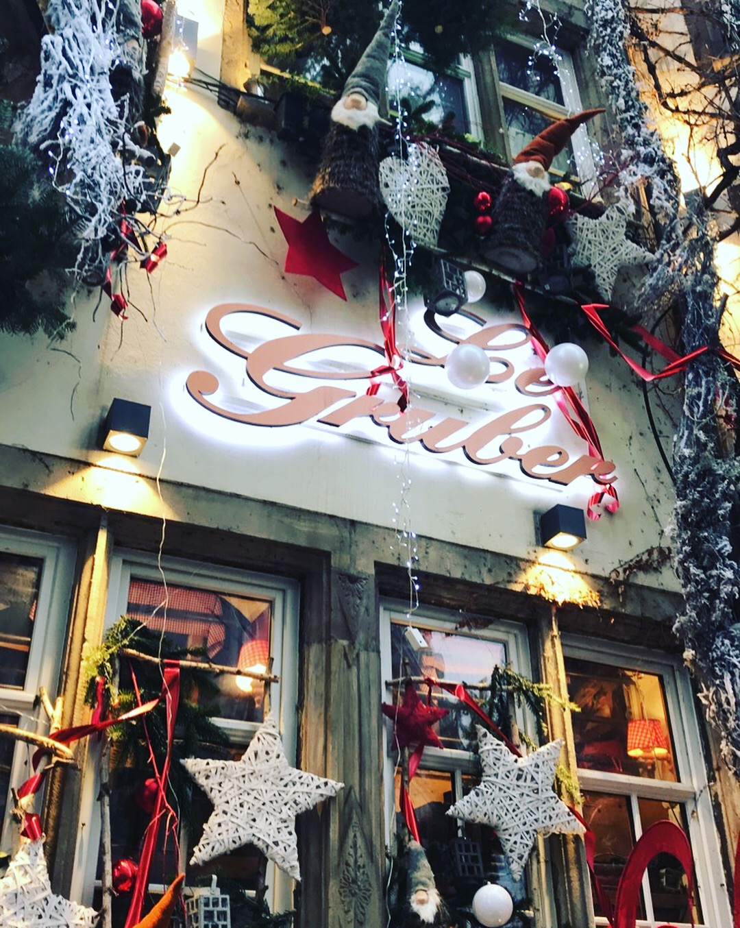 Pour notre premier soir à Strasbourg, nous recherchions à manger local et nous n'avons pas été déçus ! Le Gruber a été à la hauteur du patrimoine culinaire Strasbourgeois : une décoration des plus traditionnelles et chaleureuses, une carte présentant tous les plats alsaciens dont vous pouvez rêver, une cuisine classique et délicieuse, et un bon rapport qualité/prix. N'oublions pas cette adorable serveuse qui nous a accompagné tout au long de notre merveilleux repas et avec qui nous avons eu des discussions très intéressantes. Un 5/5 bien mérité !