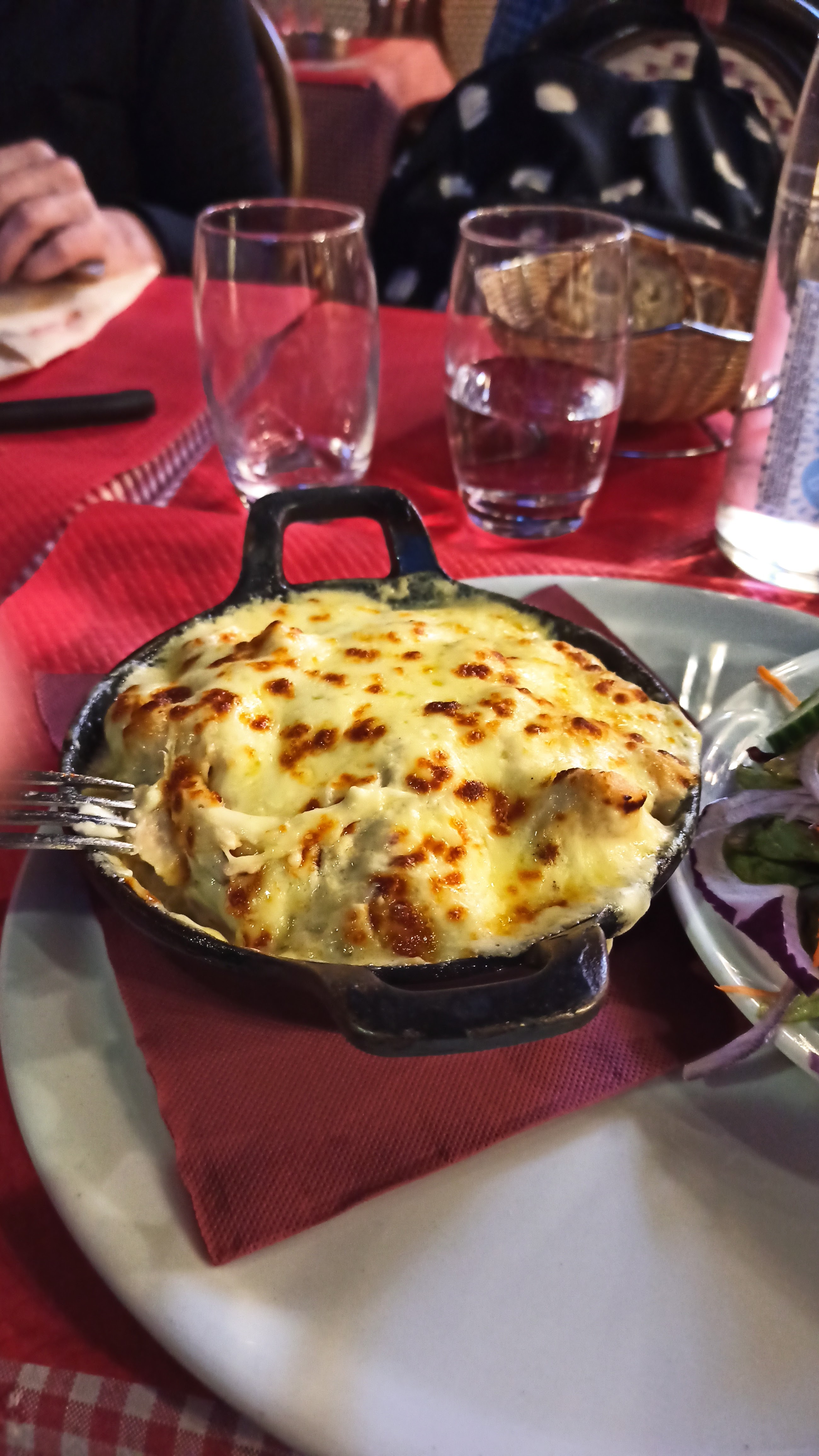 Un plat acheté, un plat offert… un service expéditif… une cuisine ouverte sans interruption… J’aurais du voir venir de loin ce piège à touriste aux assiettes tièdes et fades à 22€. Mes voisins de tables, eux aussi, ont regretté leur gratins et leurs bouchées tiédasses.
