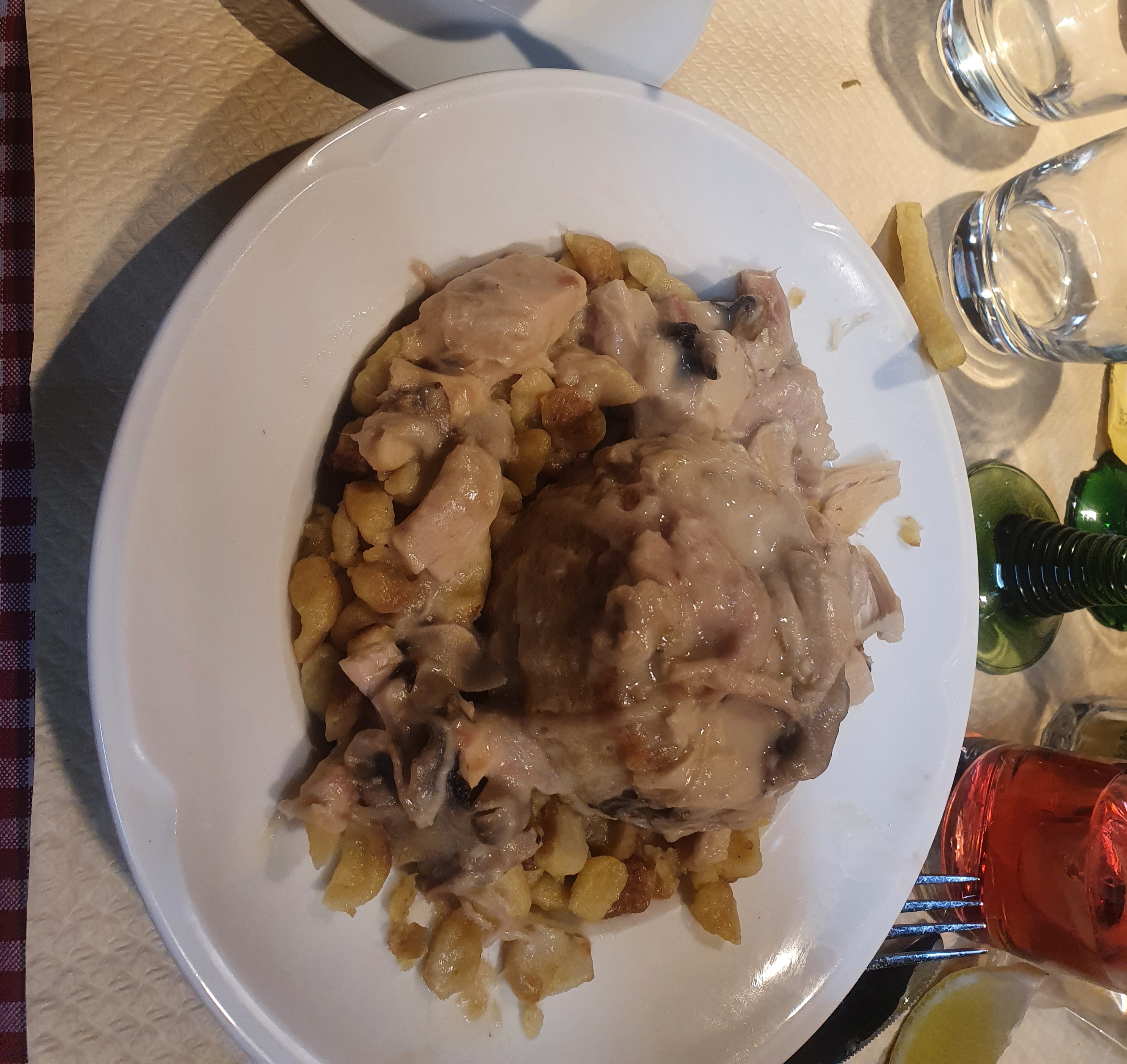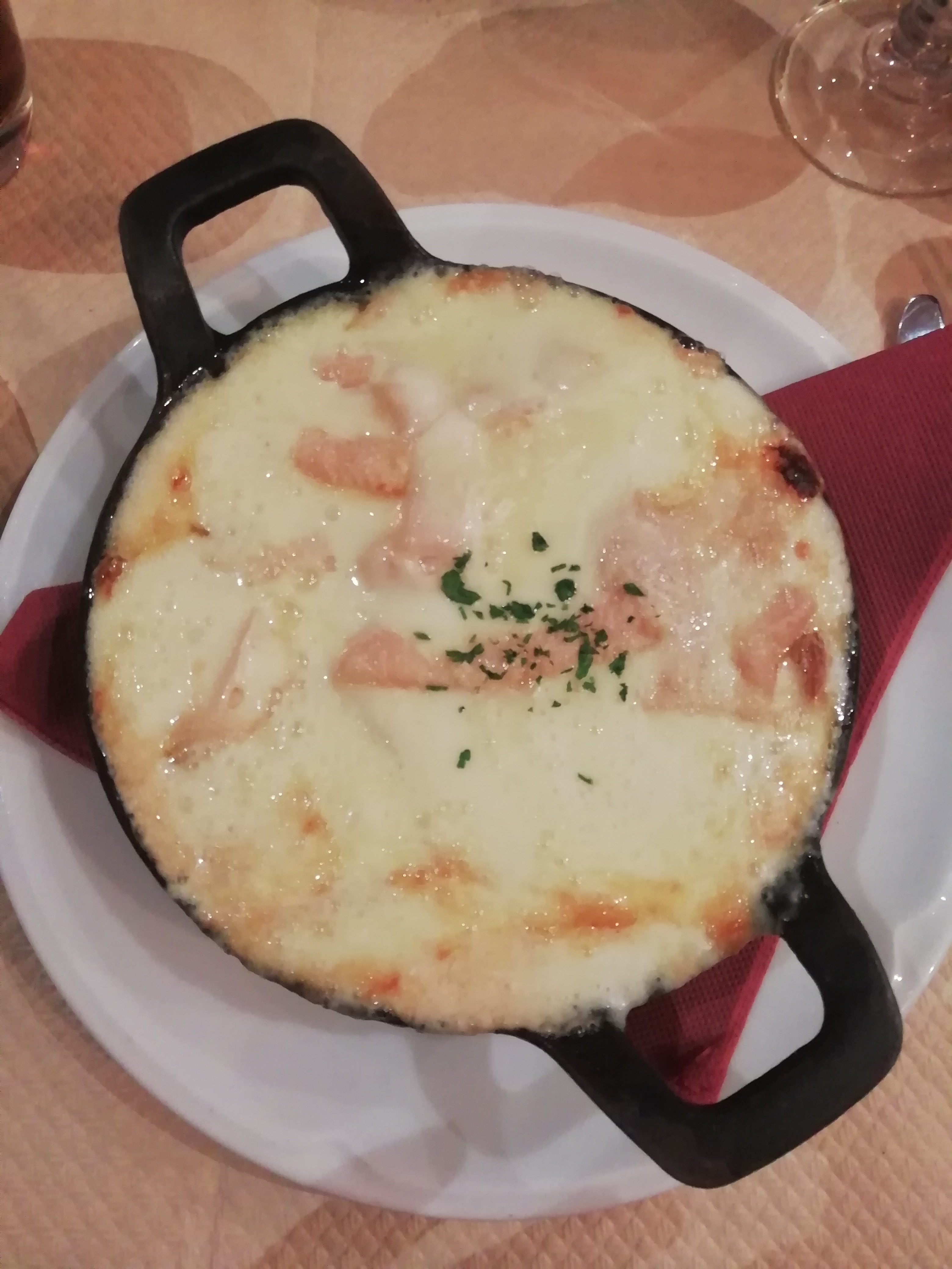 Plats sympa et copieux du coin mais servit dans la salle pizzeria.... 😞... Traces sur les verres, le pain à fait plusieurs services... 😱 vue sur les frigos de la cuisine... alors fermé la porte... peux mieux faire