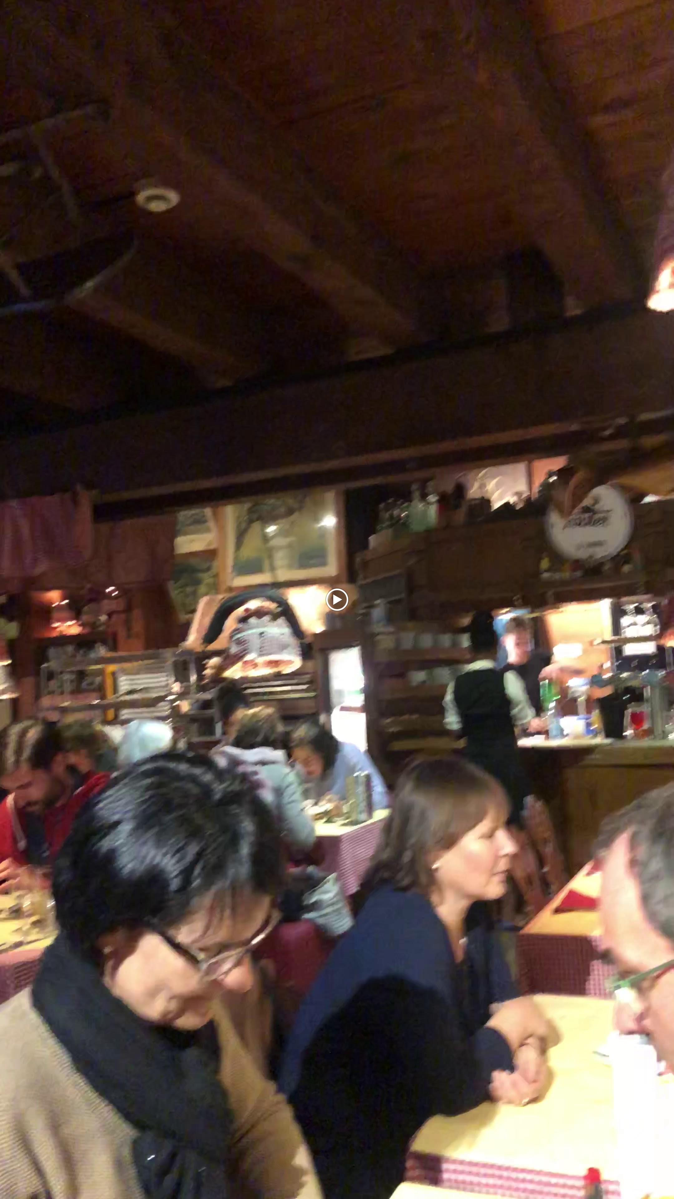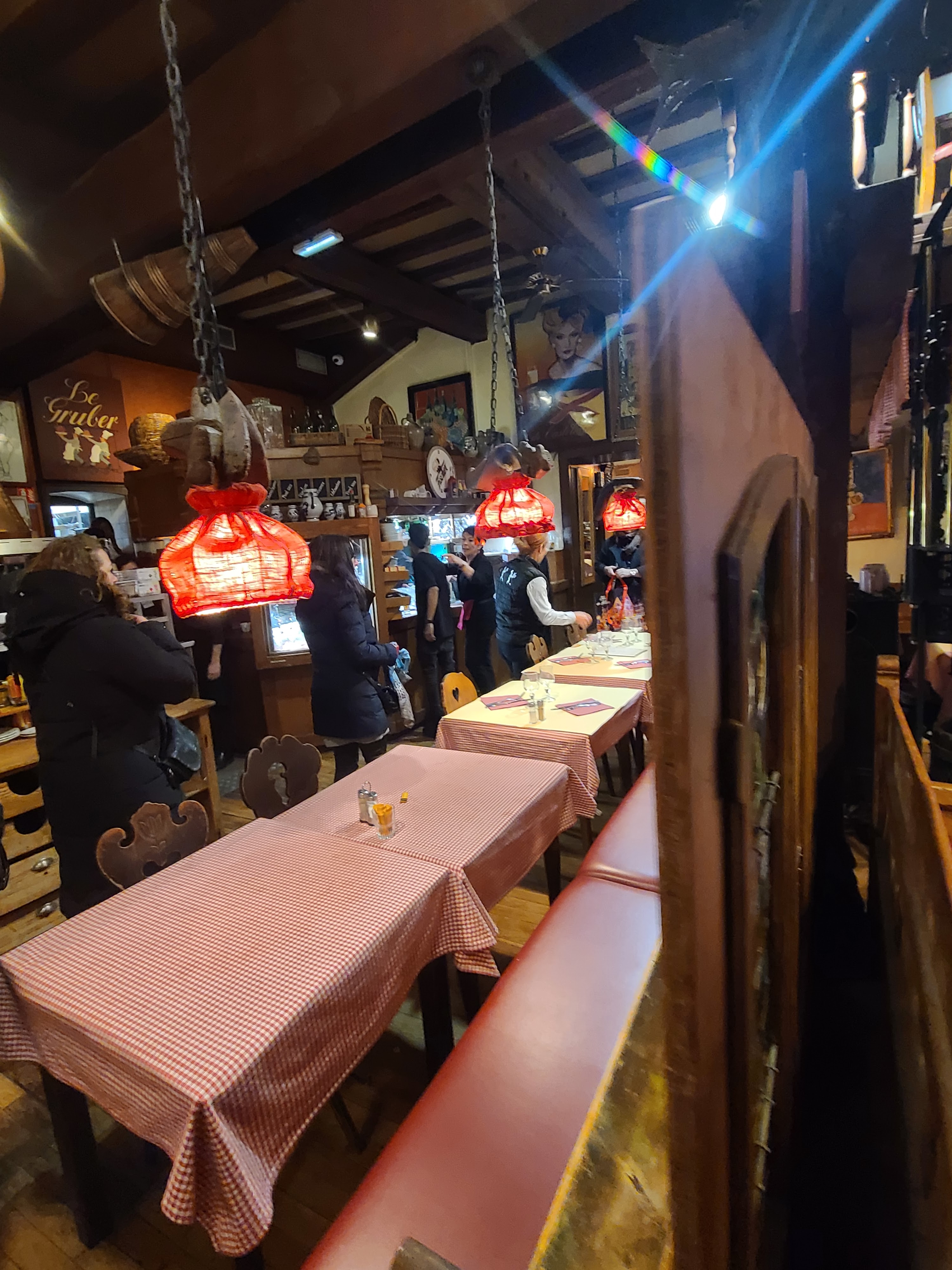 Excellente atmosphère avec un personnel chaleureux. Nous avons eu de la place tout de suite sans réservation. La carte de Noël propose des prix élevés, mais liés à la localisation et à l’affluence de la saison. La nourriture était traditionnelle de la région mais manquait légèrement de fraîcheur (fromage fondu sec, pâte réchauffée).