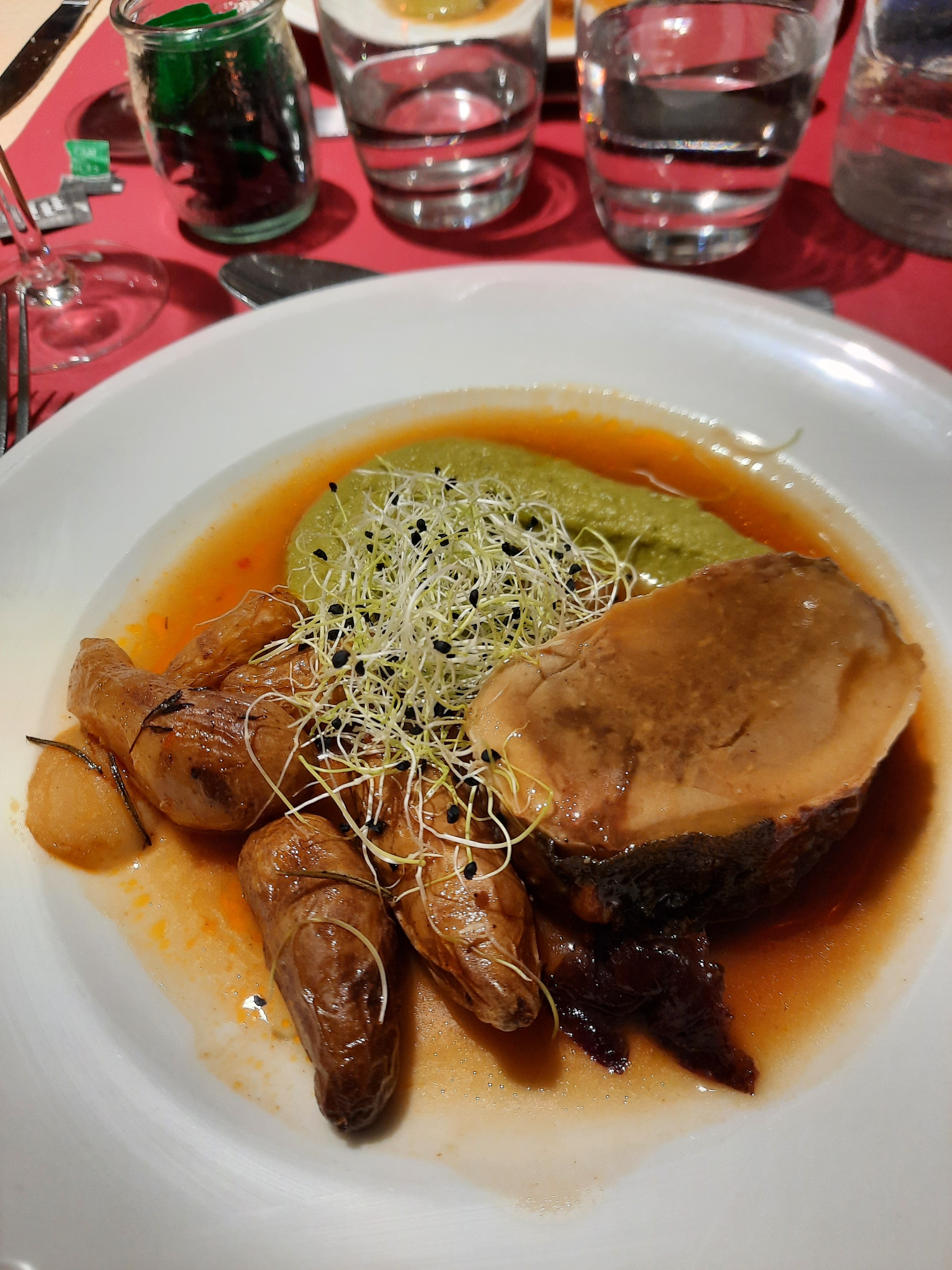 vraiment décevant, le plat était décrit comme étant accompagné de « légumes » et au final il y a juste eu du choux rouge (qui était trop acide et qui n’est même pas un légume de saison), et la truite saumonée était fade en revanche le serveur était sympathique