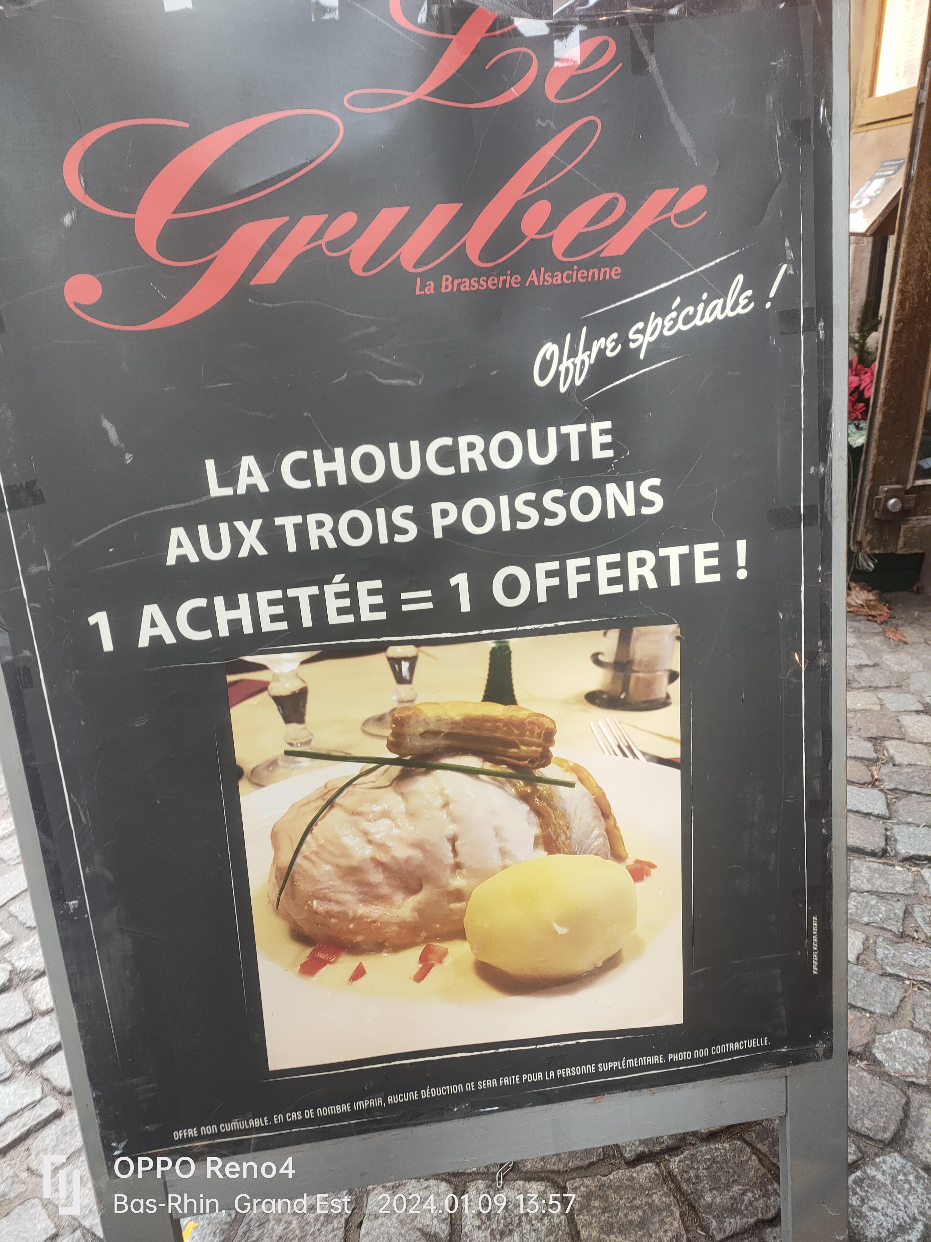 Franchement top venue pour visiter Strasbourg très bon et étonnement pas très chère 50 euro pour 2 avec boissons plats desserts , service au top