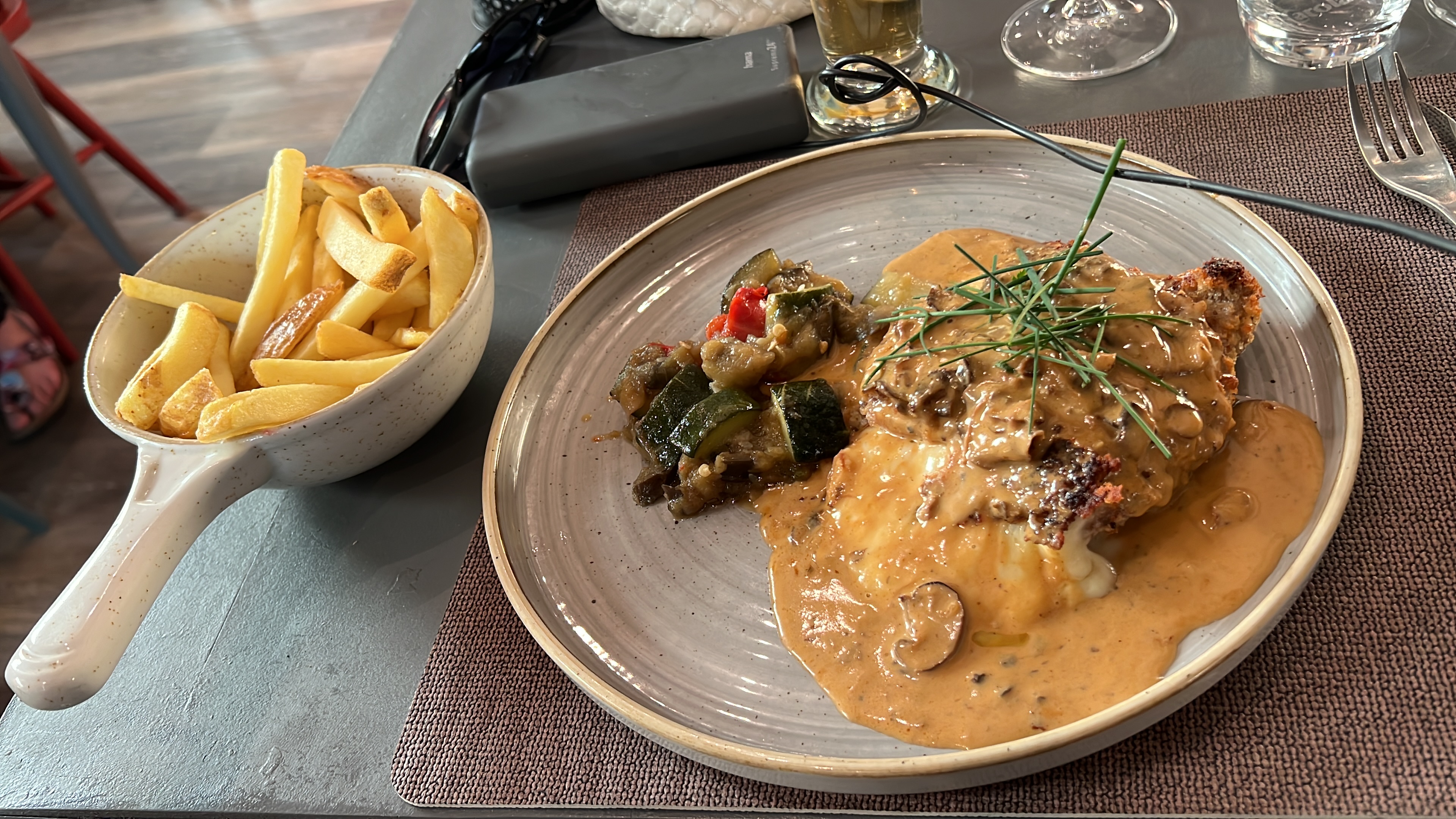 Super accueil service au top belle terrasse et repas excellent bravo au chef Samon sauvage aux tagliatelles une tuerie onglet a notre goût bref je recommande ce restaurant Merci à la serveuse d une très grand gentillesse