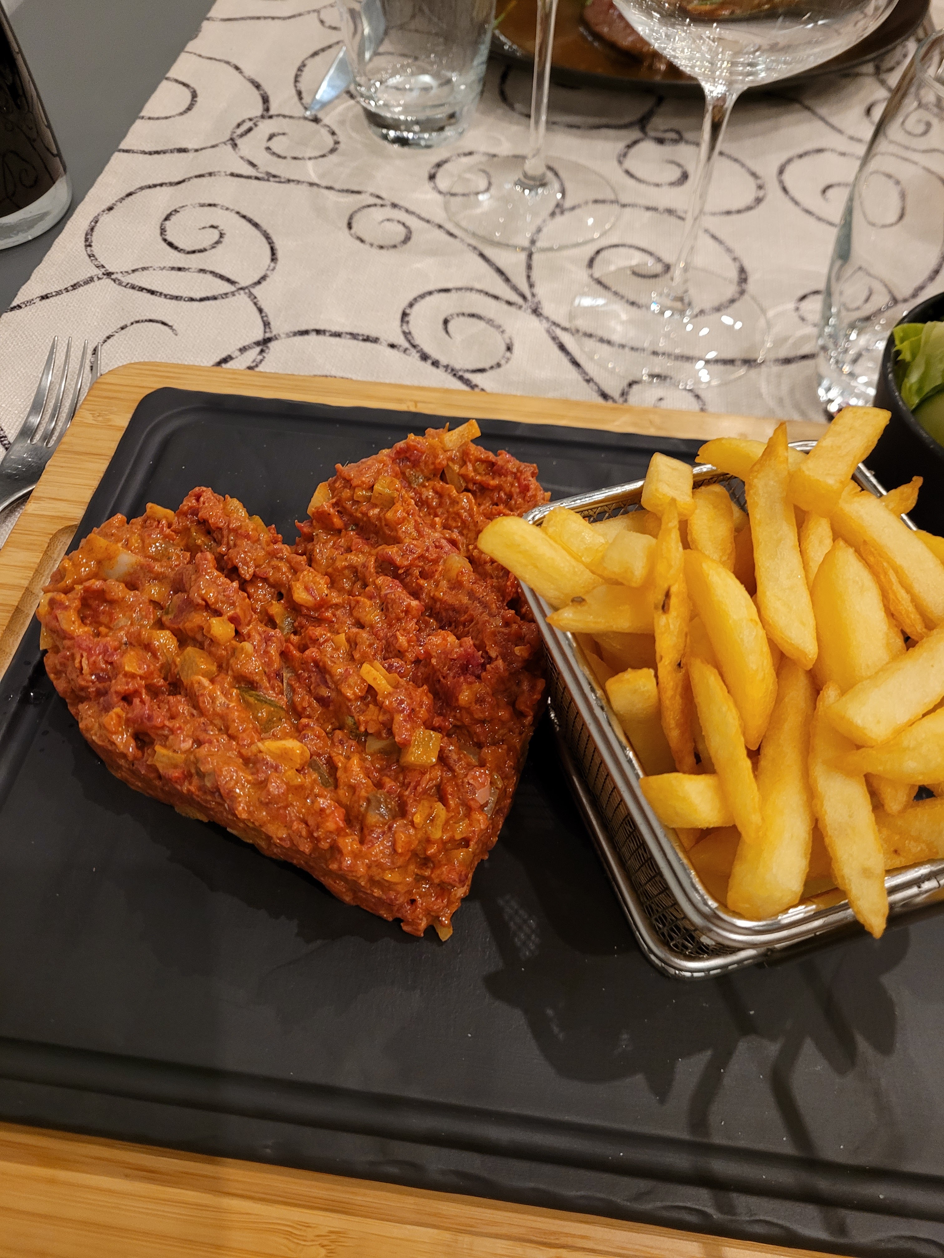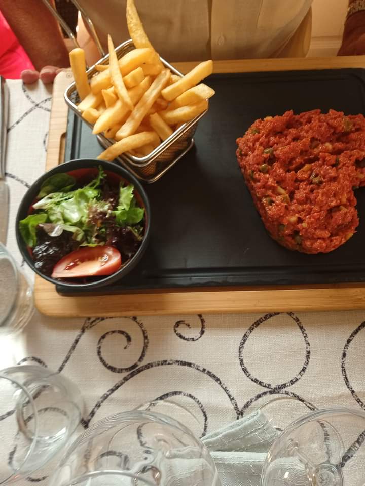 Meilleur tartare que j'ai pus manger. Très bien servi. Service au top Cadre chaleureux Rapport qualité prix imbattable Qualité au top du top Attention à bien reserver. Restaurant victime de son succès. 80% du temps complet. 🌟🌟🌟🌟🌟