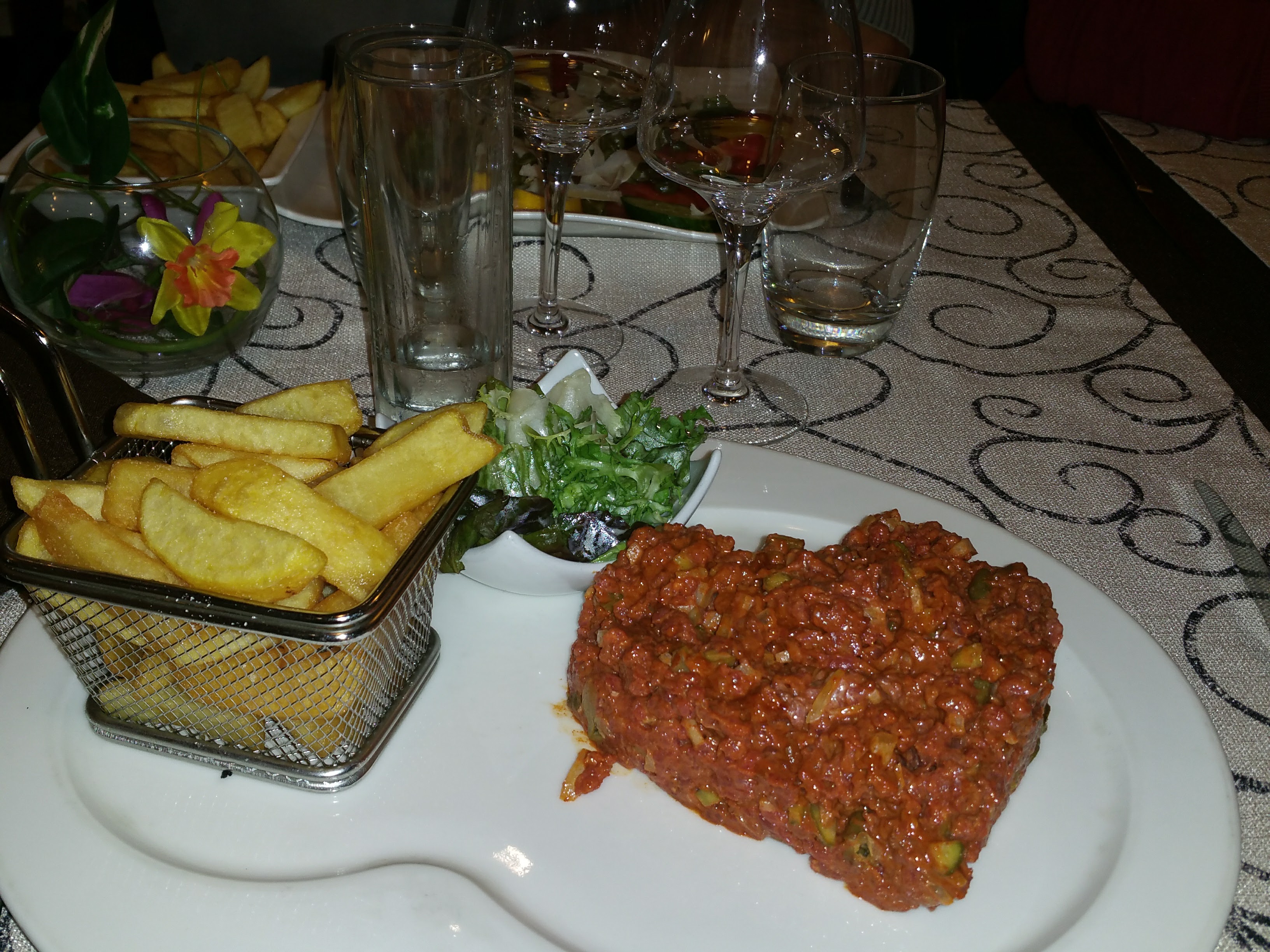 Restaurant très agréable. Très bonne cuisine avec un plat favori pour ma part, le steak tartare (quand on aime) et une très belle carte des vins.