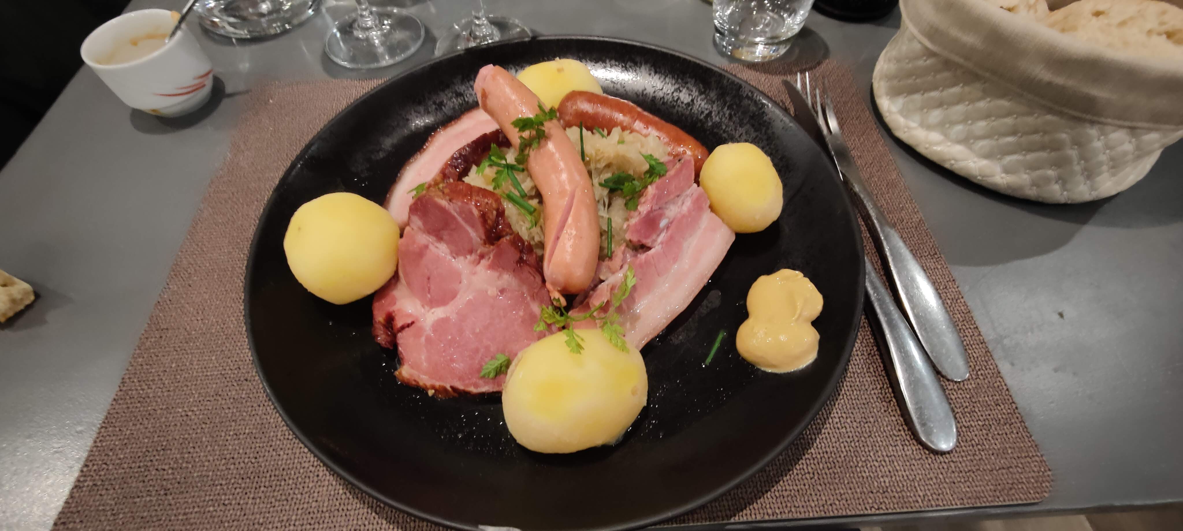 La cuisine est vraiment au top Choucroute et jarret au poivre vert et en entrée salade alsacienne au cervelas de la cuisine de pro Quelques lacunes dans le service mais rien de rédhibitoire