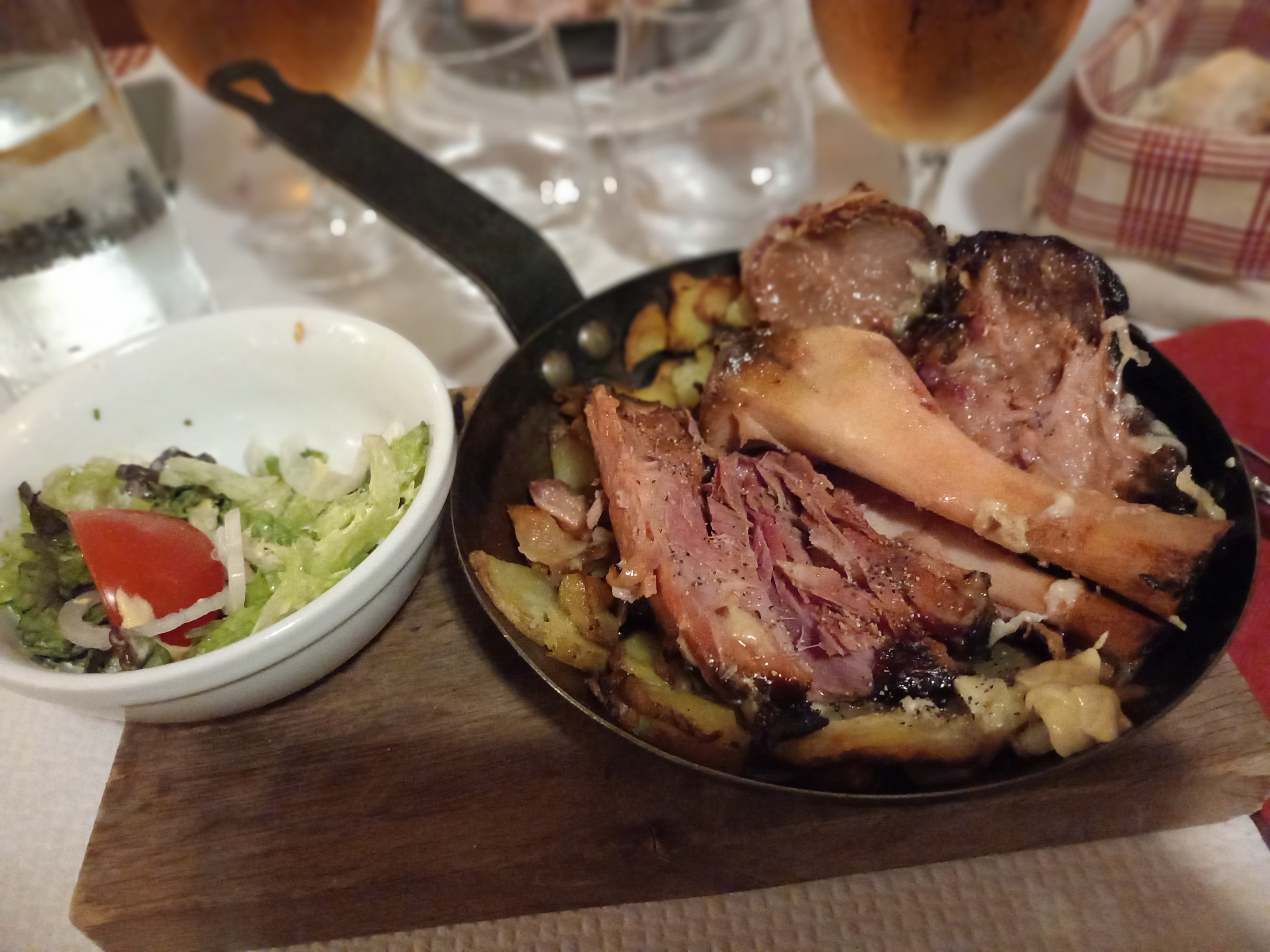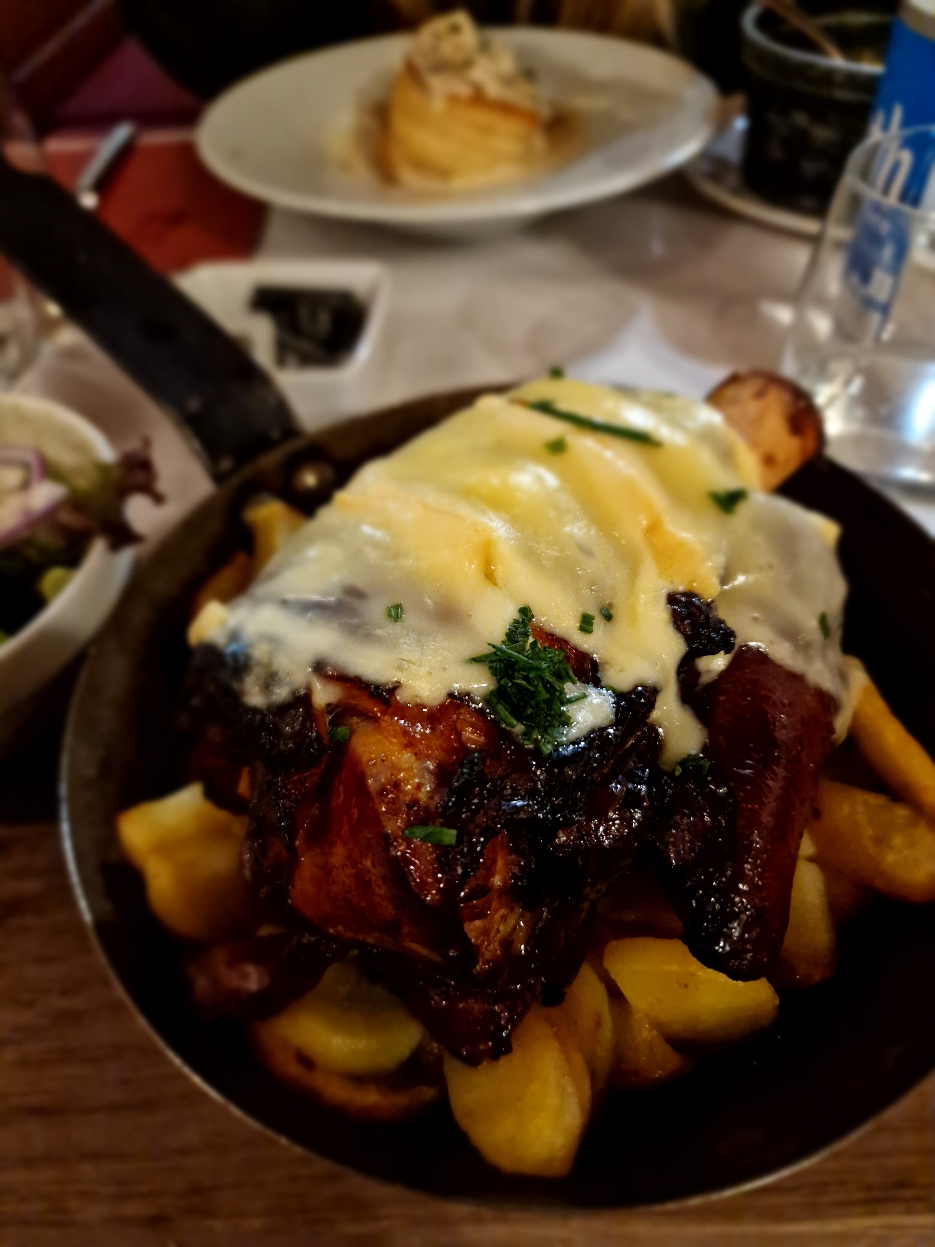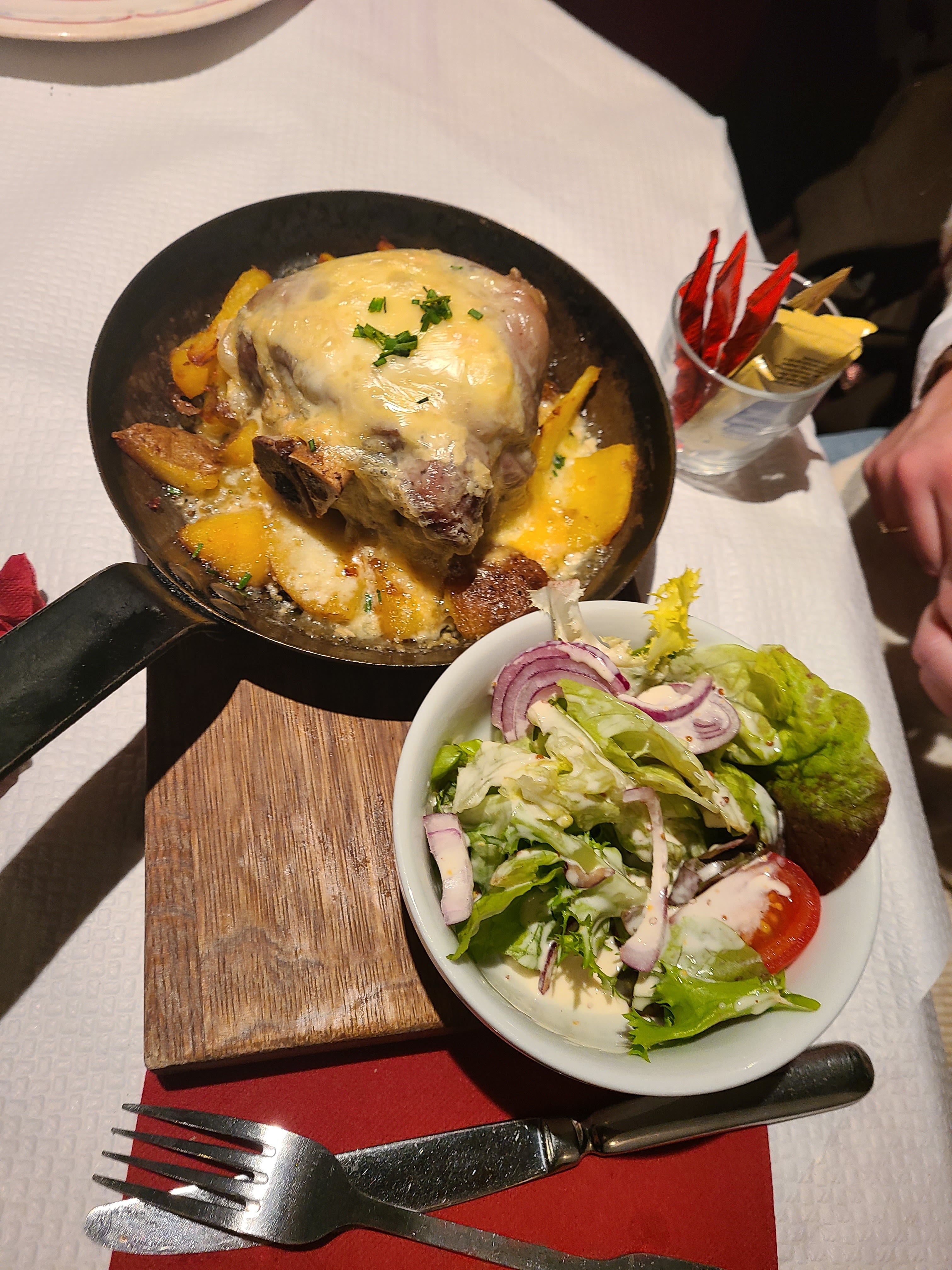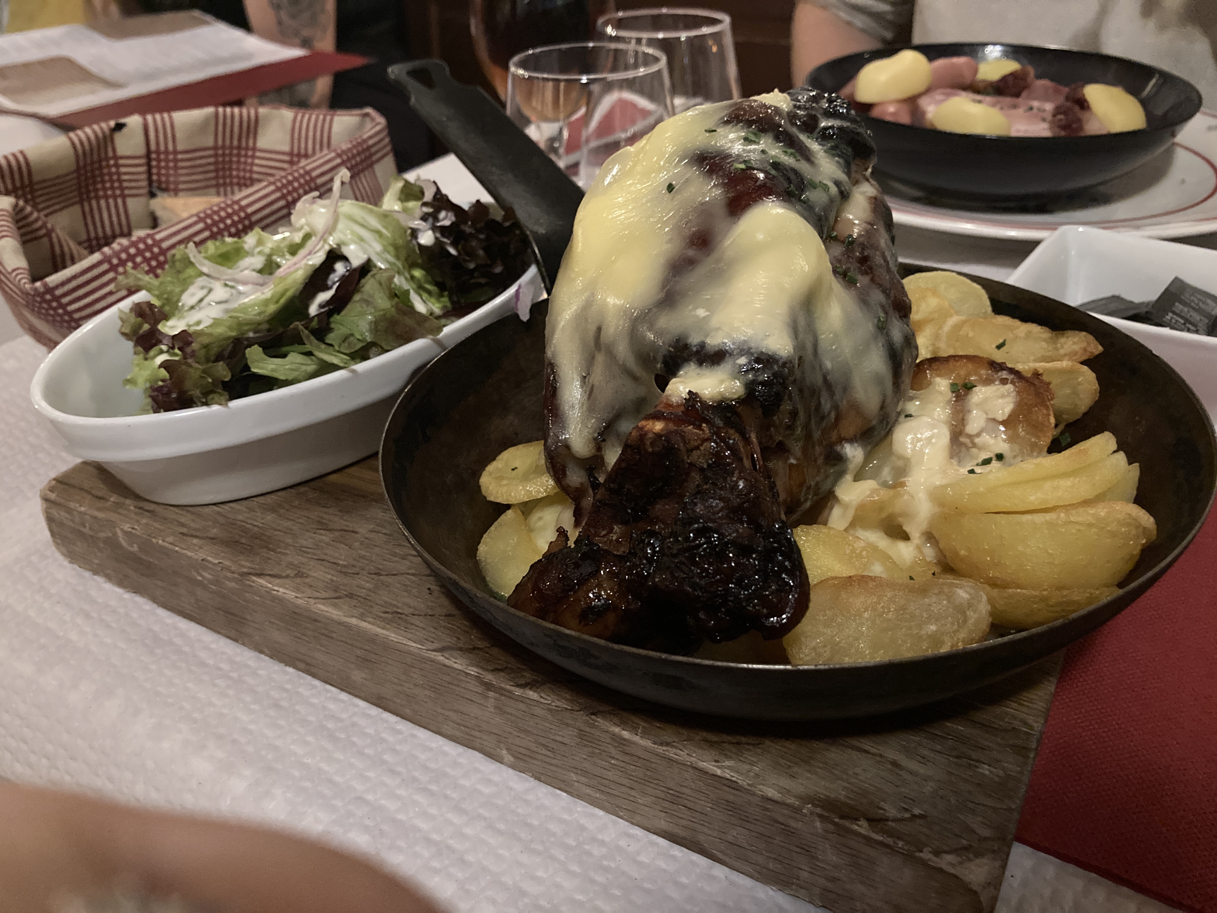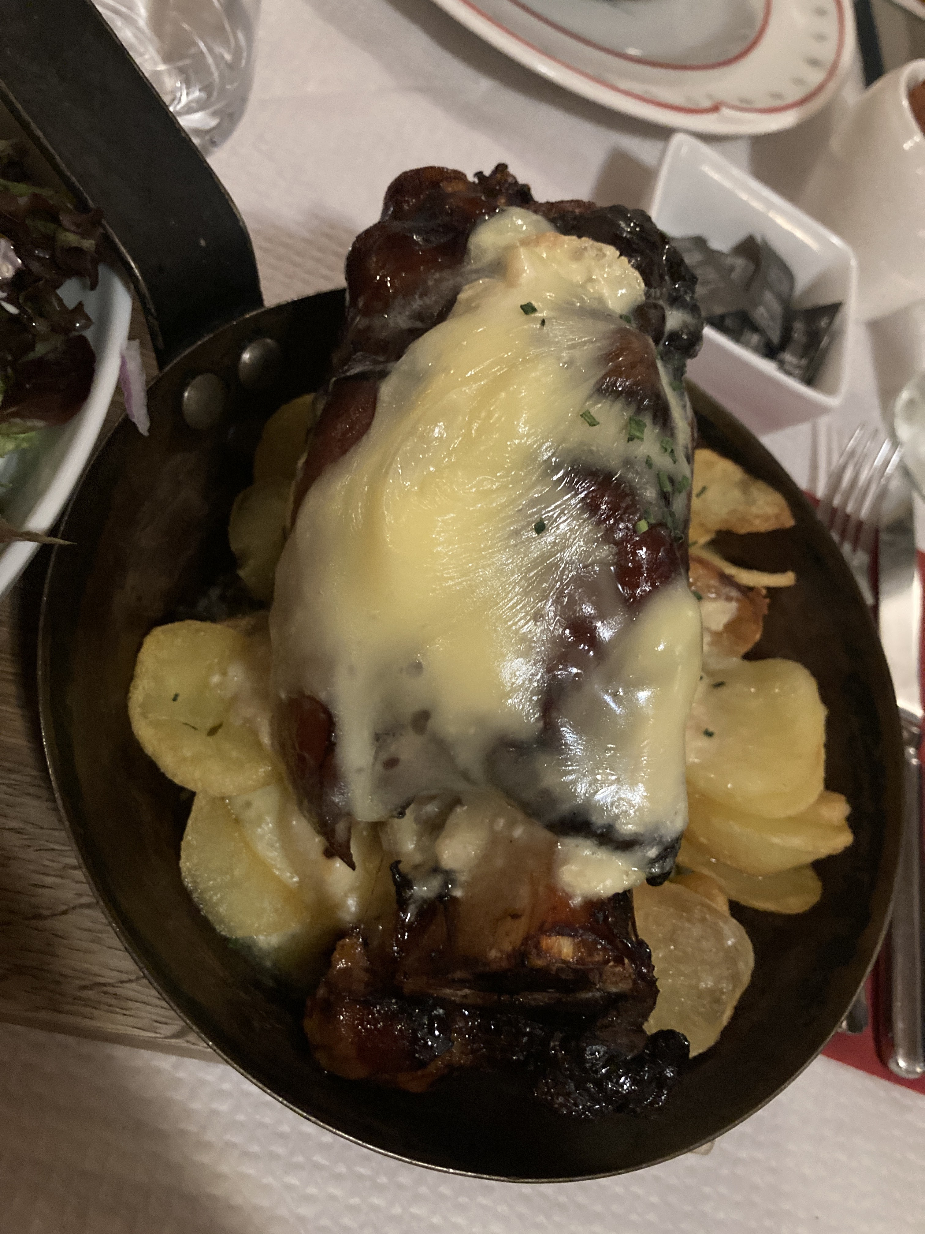 Jambonneau gratiné munster au top - généreux et bien présenté. Service rapide ( 19:00 ) , aimable , efficace , addition raisonnable.