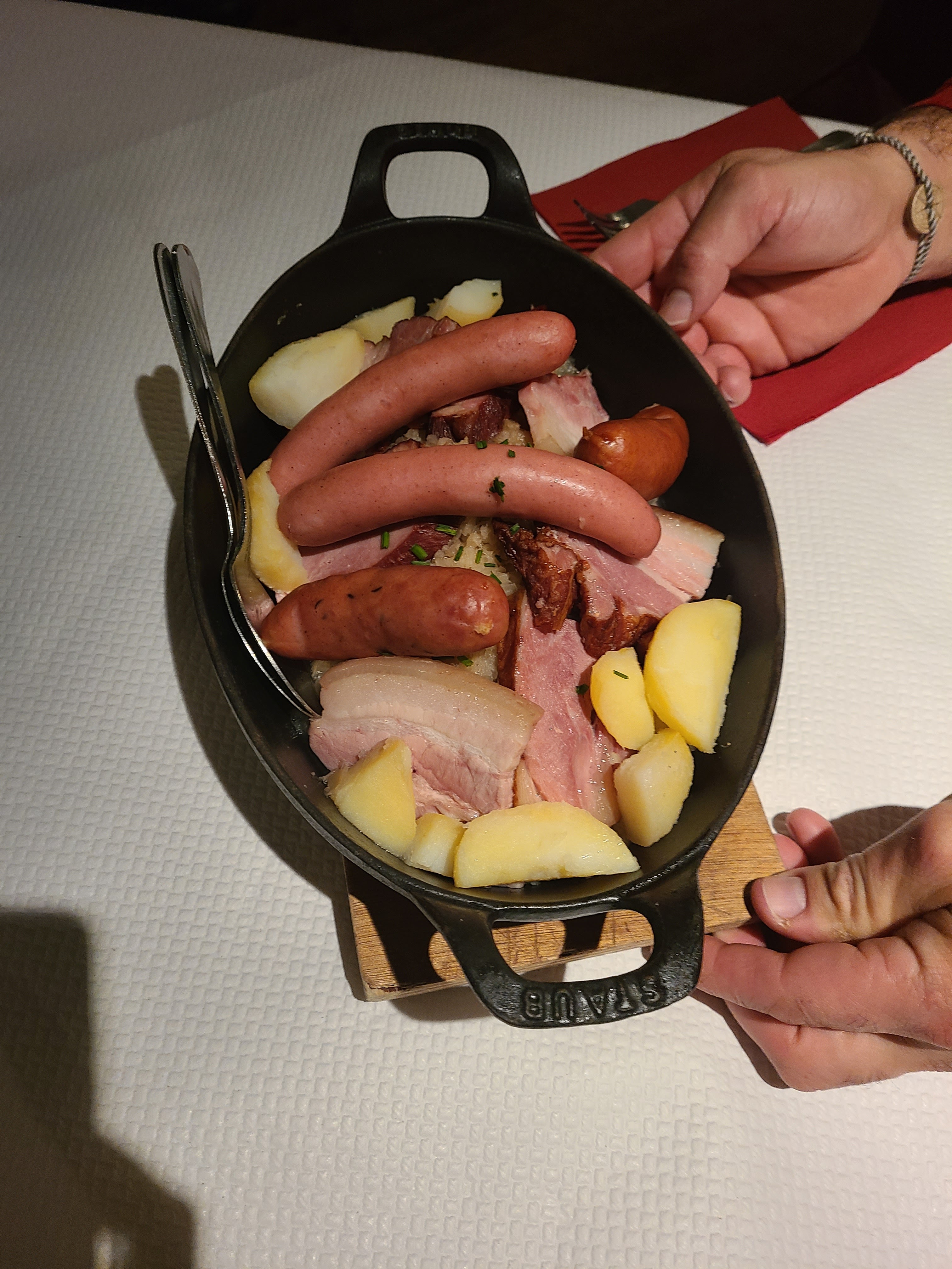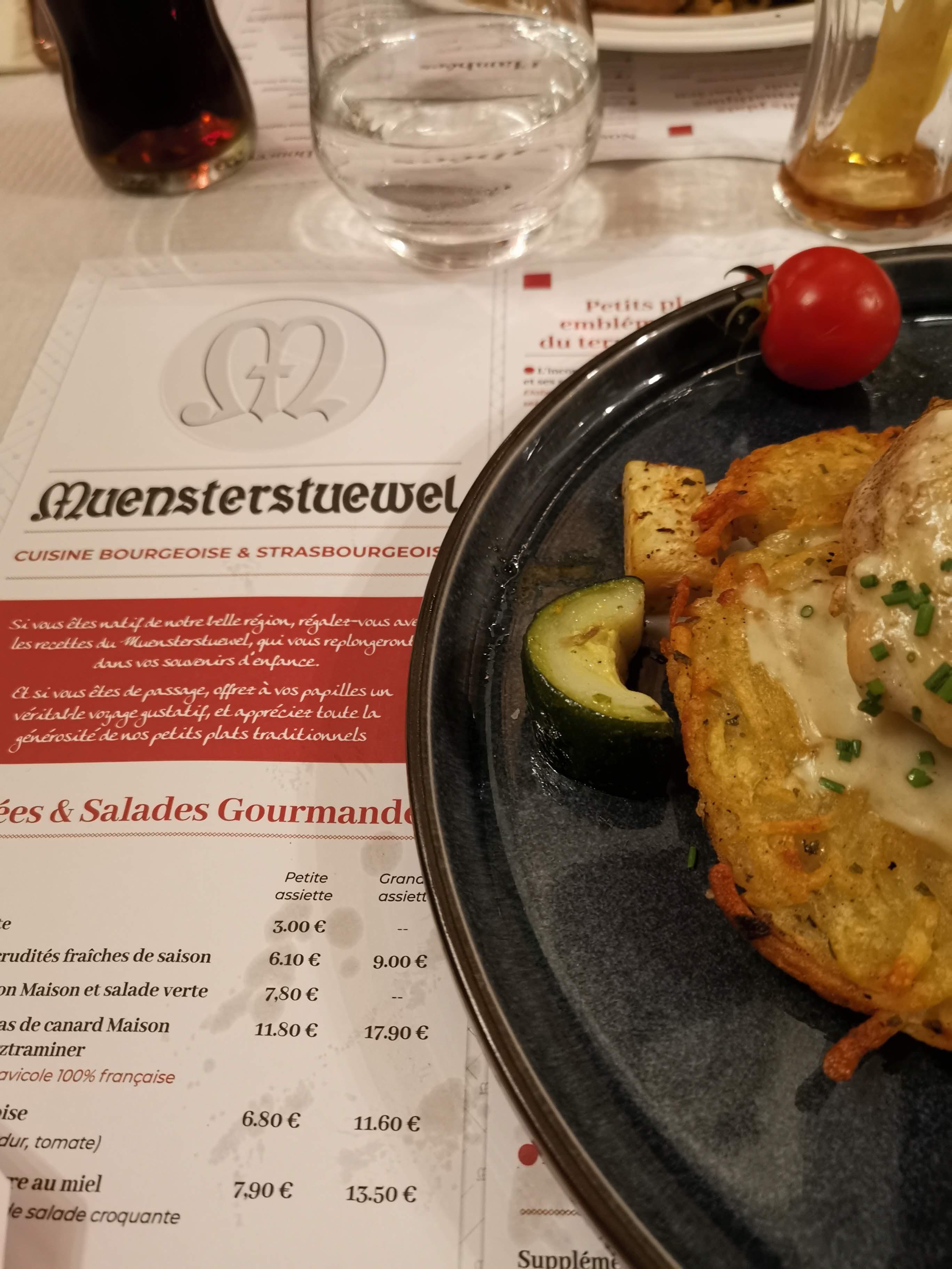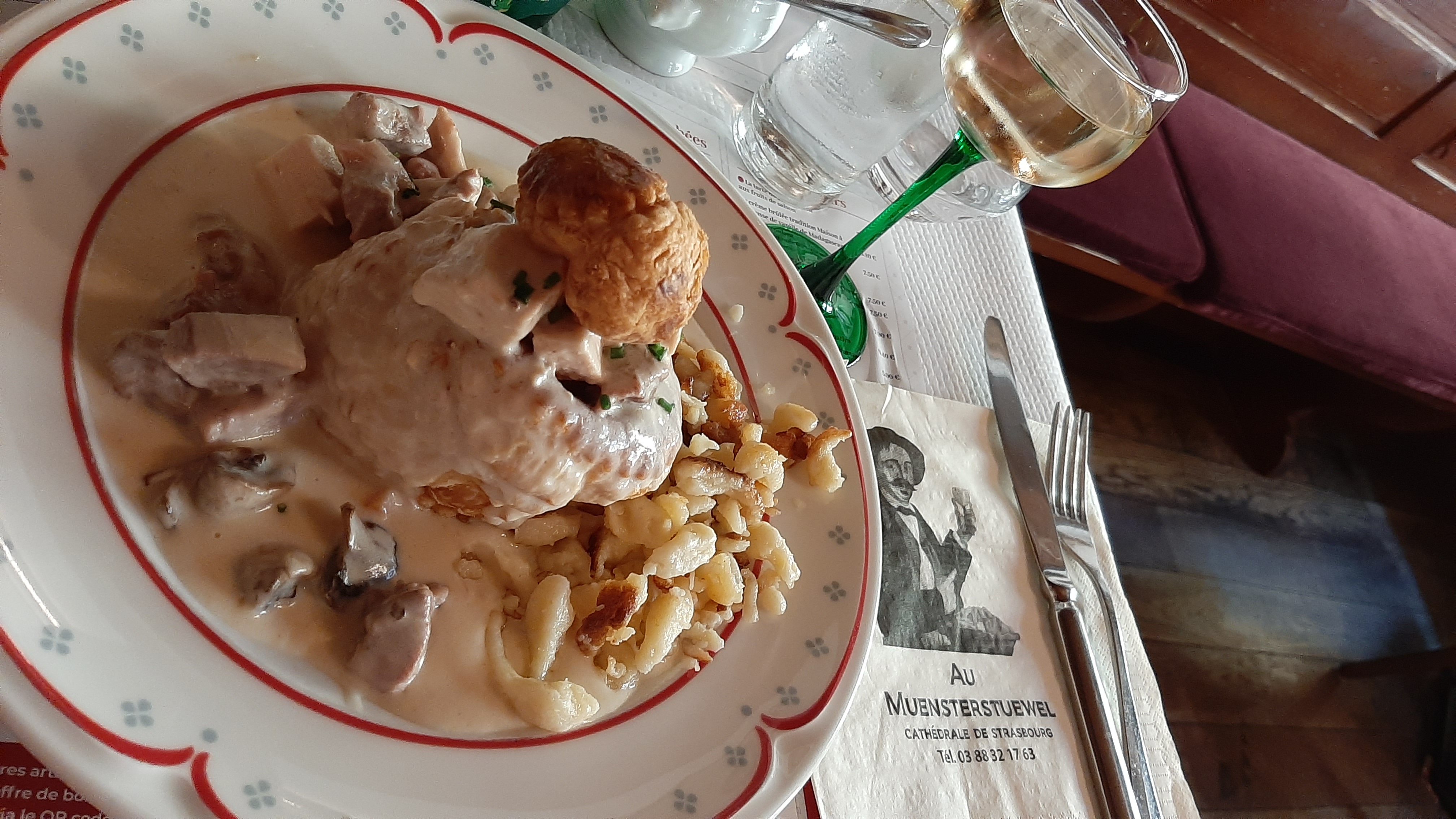 Un régal, spécialités alsaciennes réussies a merveille. Ambiance très conviviale dans la salle. On a réussi à avoir une table pour 7 après avoir marché et cherché longtemps un restaurant autour de la cathédrale. Sans regret au restau Muensterstrewel
