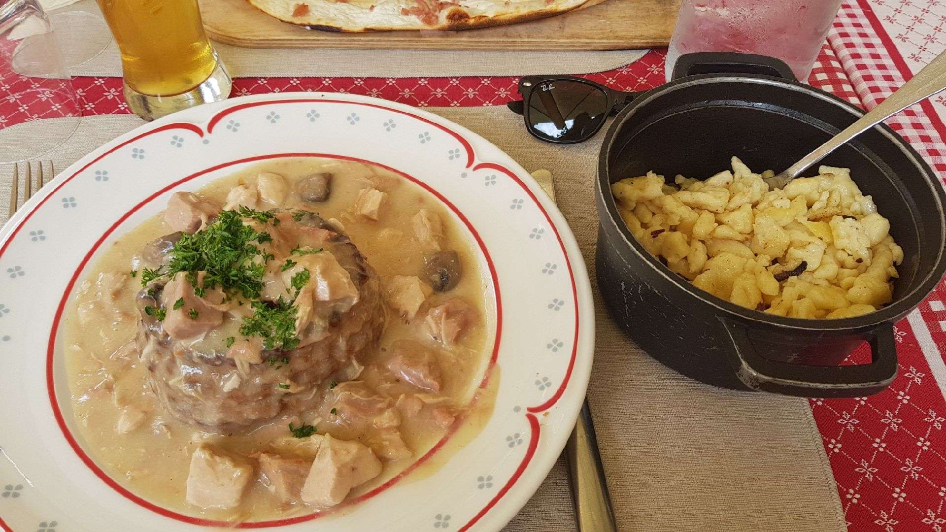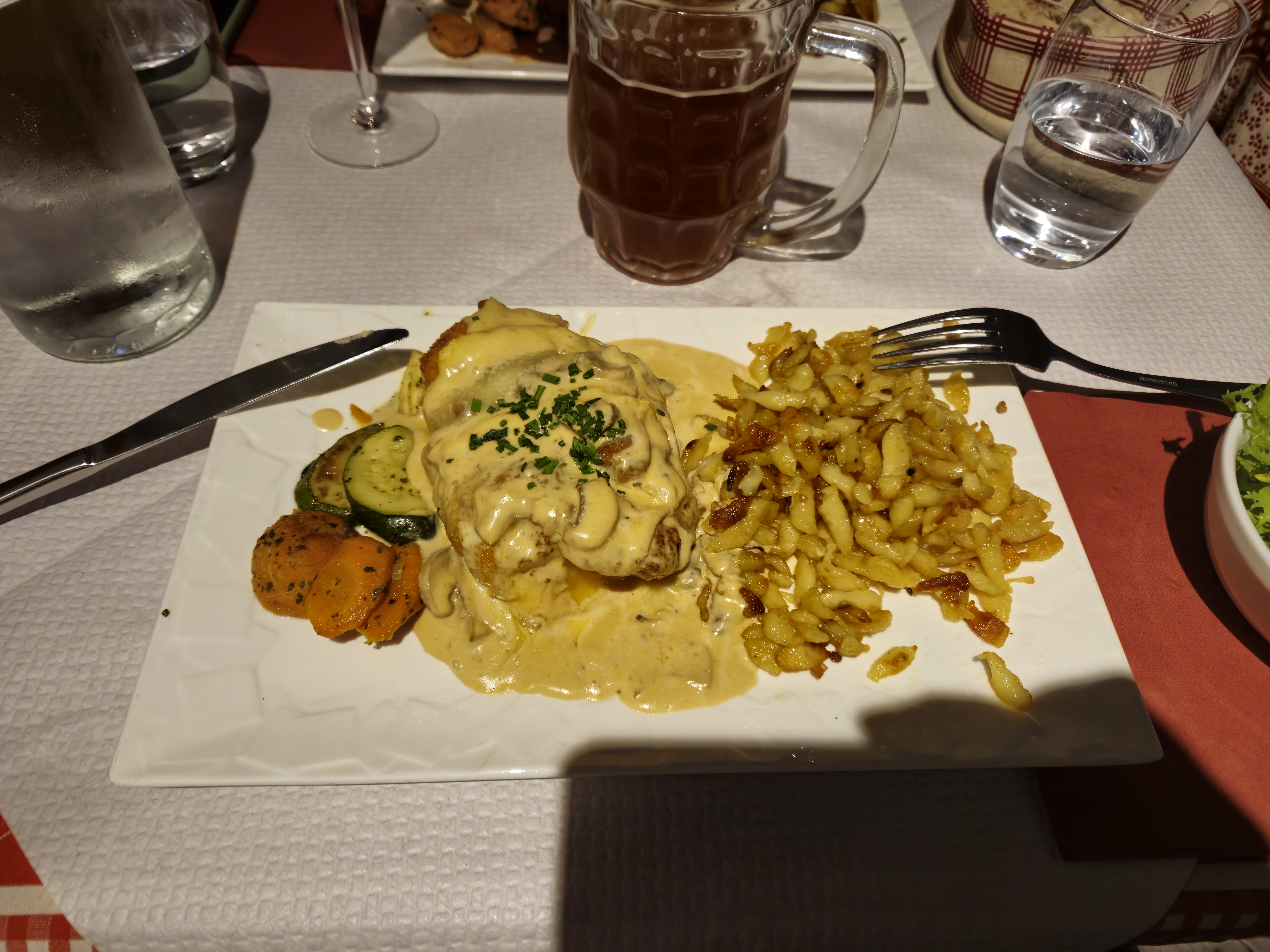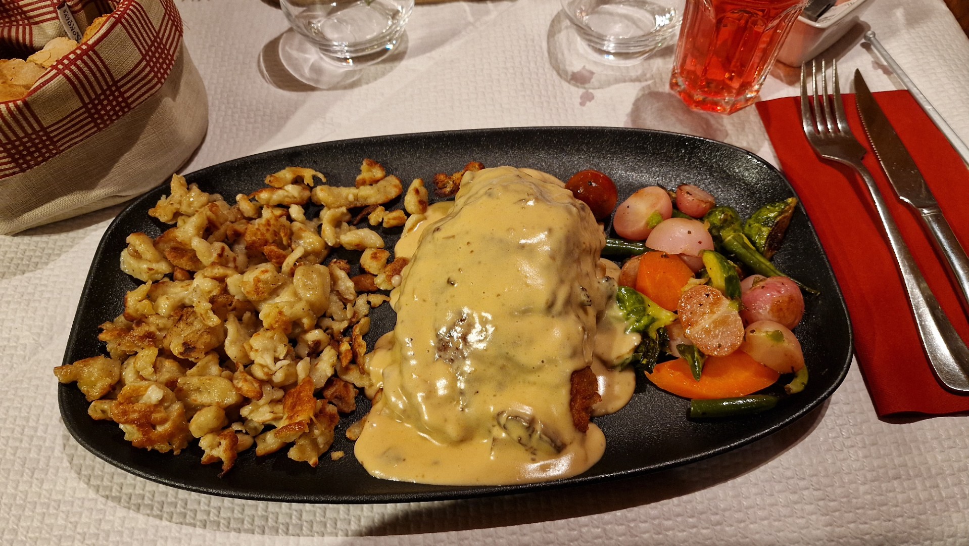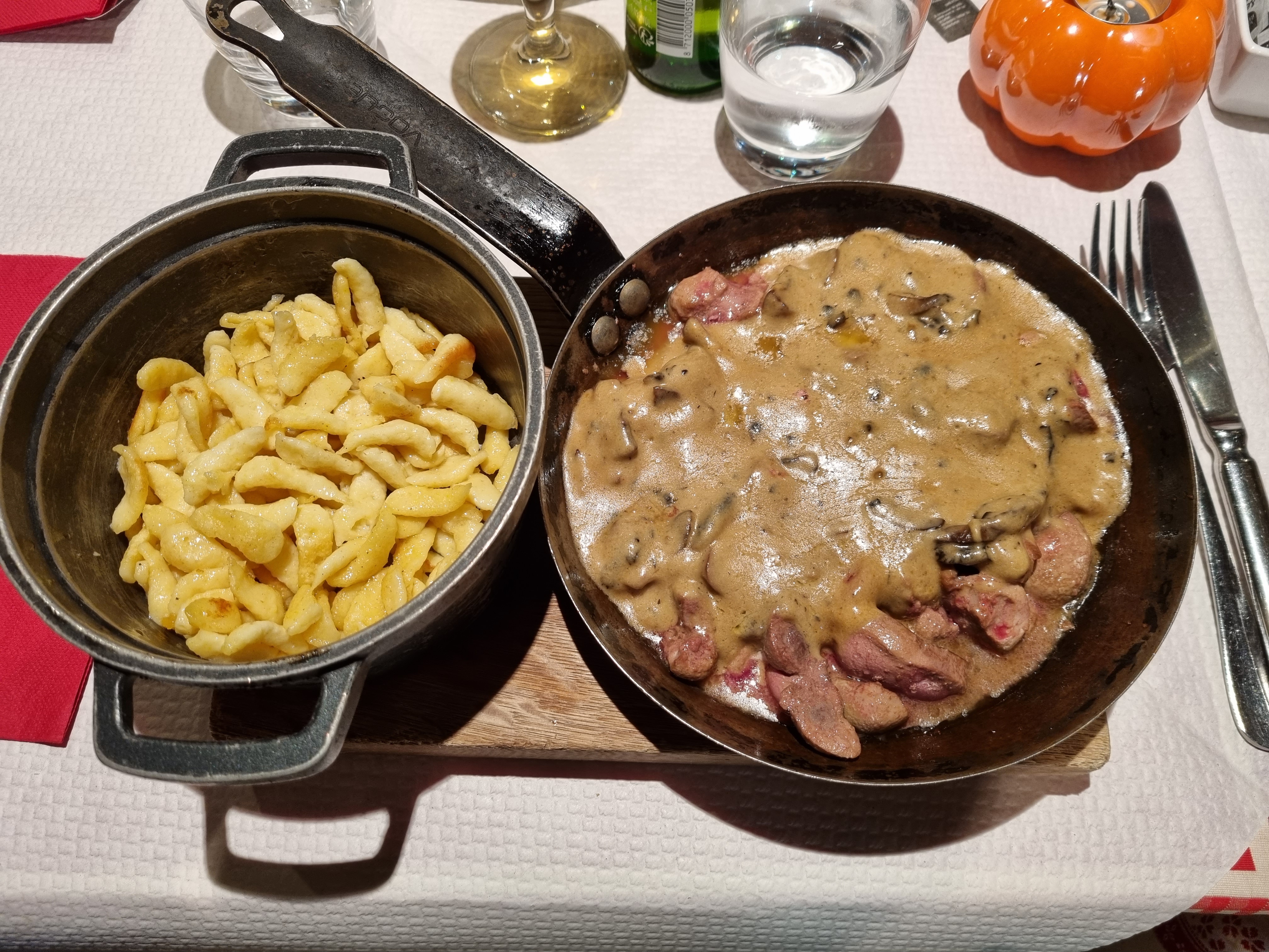 Le Spaetzle était très bien garni et copieux. Nous avons été bien servis et on a même partagé une table avec des inconnus mais ça s'est bien passé ! 🤗