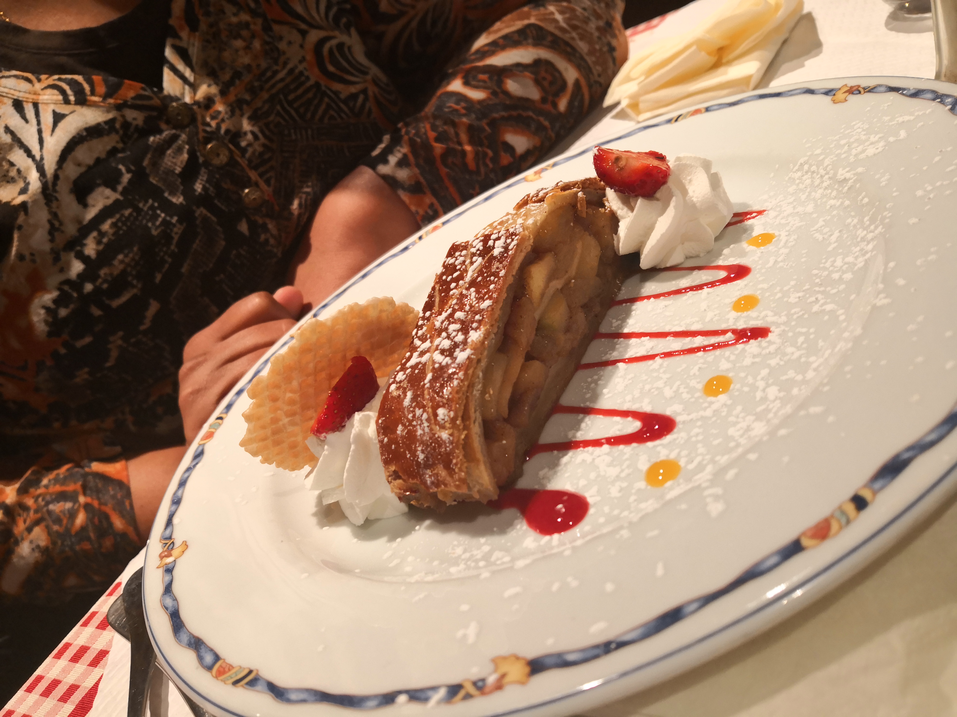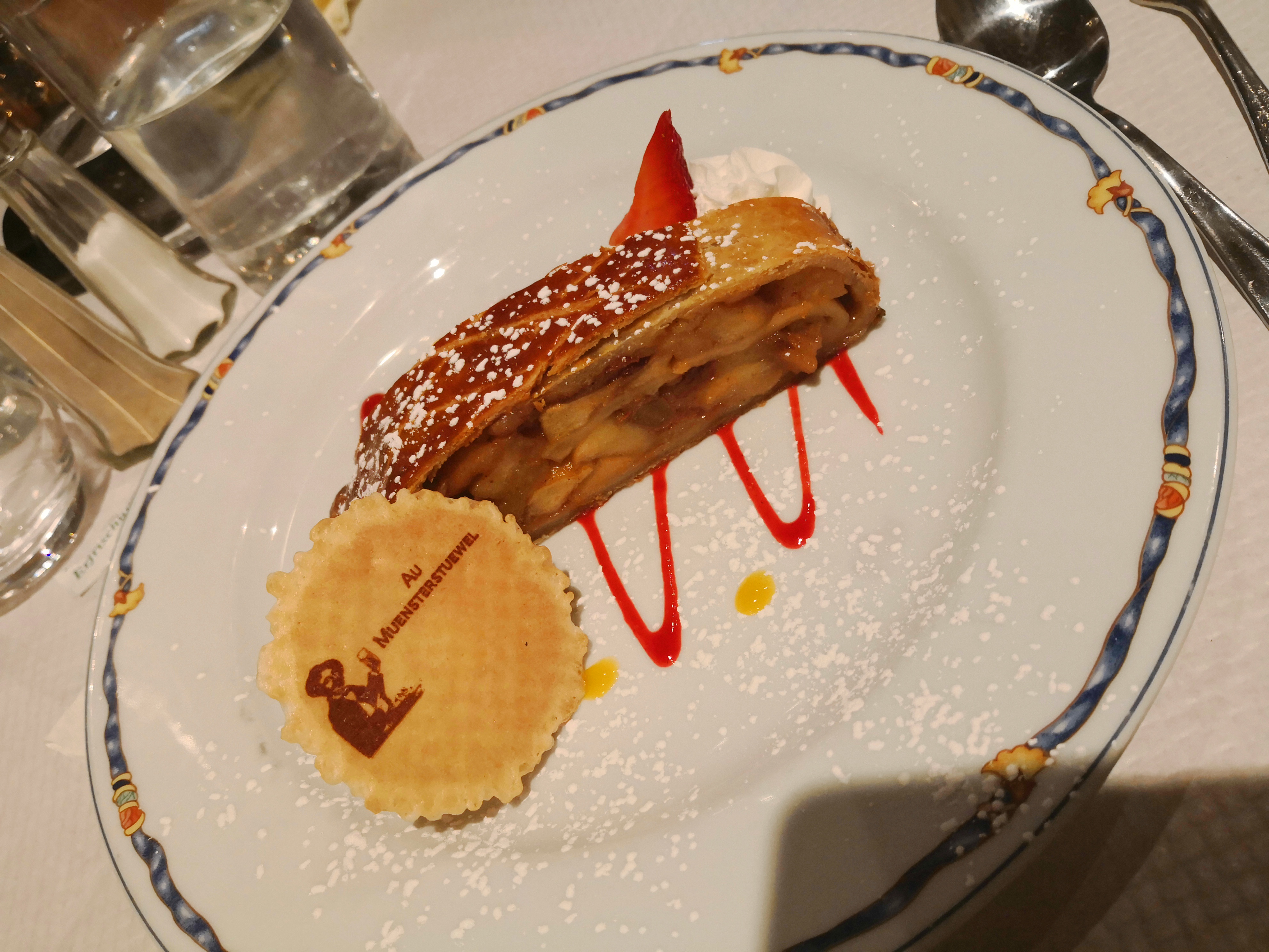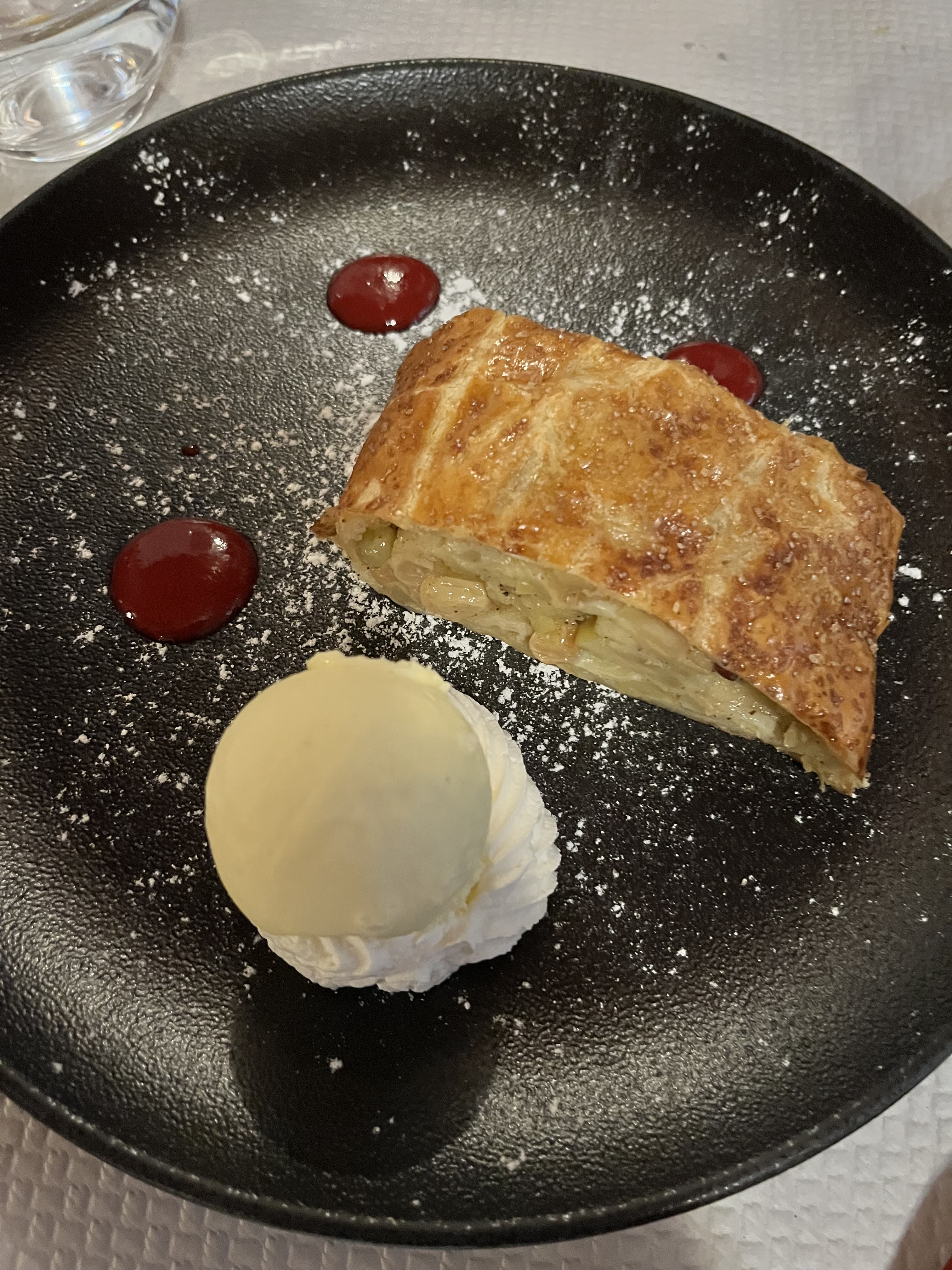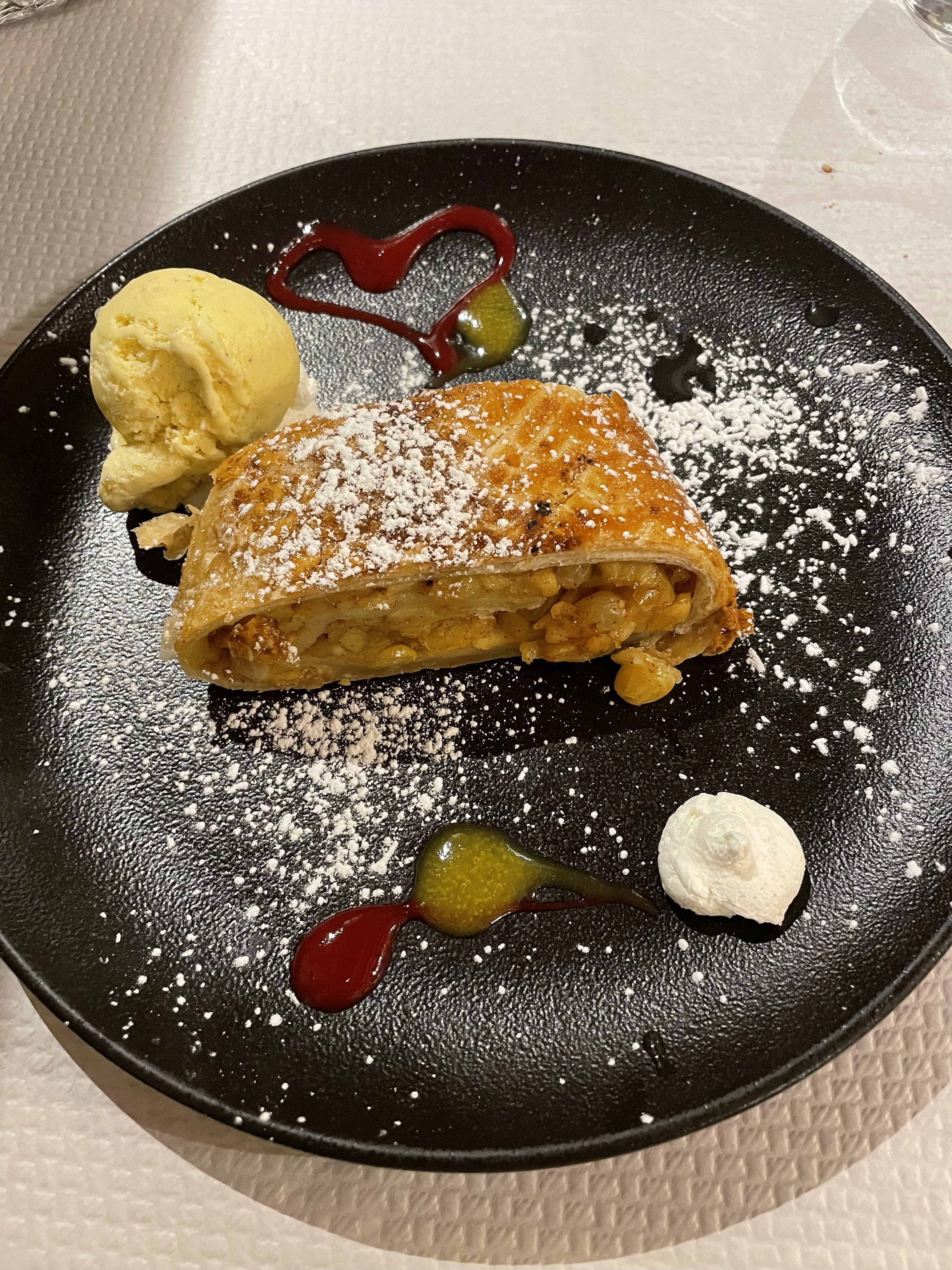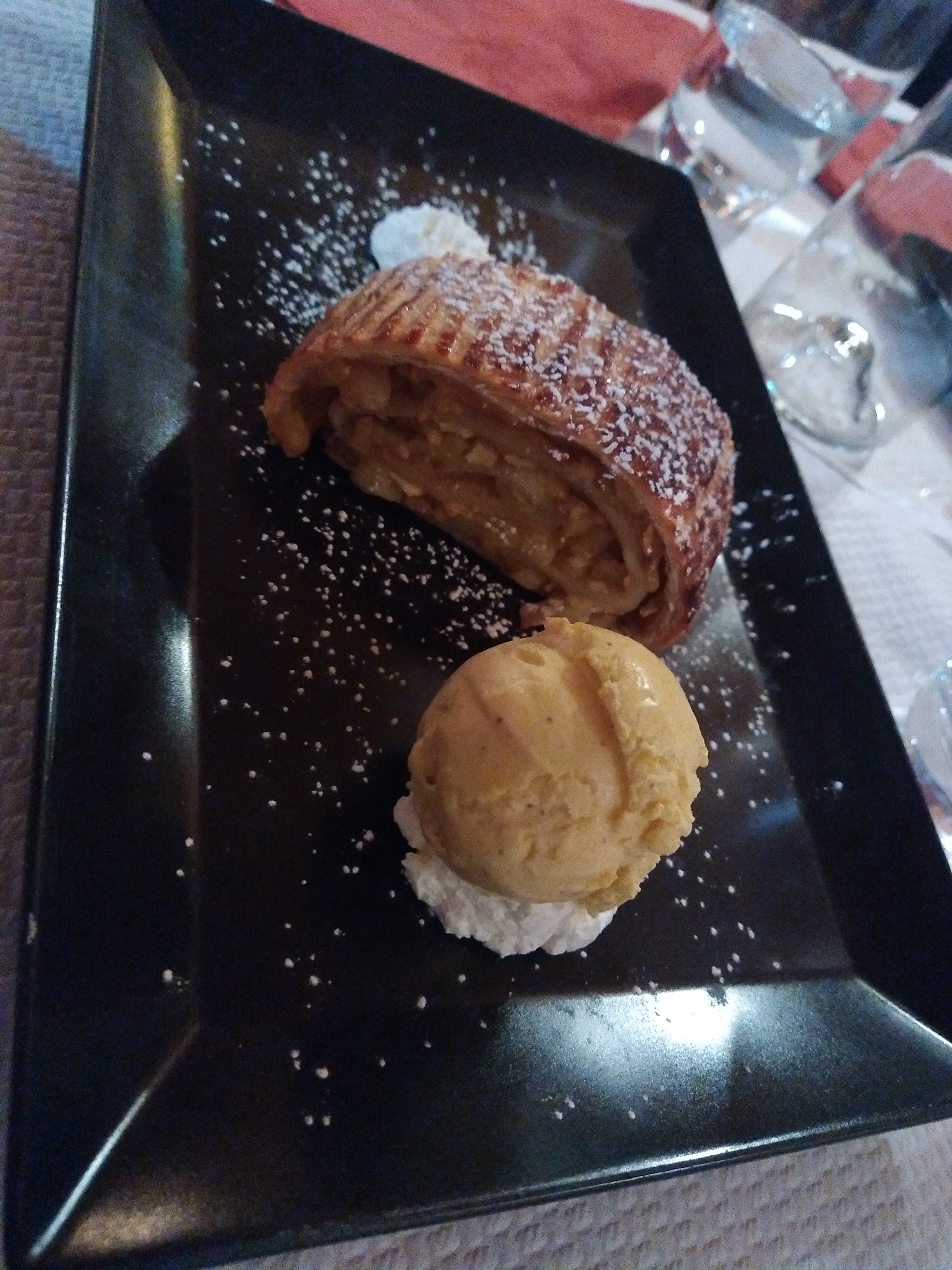 Cadre très authentique. La tarte flambée au saumon était bonne mais aurait pu être un peu plus relevée en terme de goût. Le strudel aux pommes était excellent.