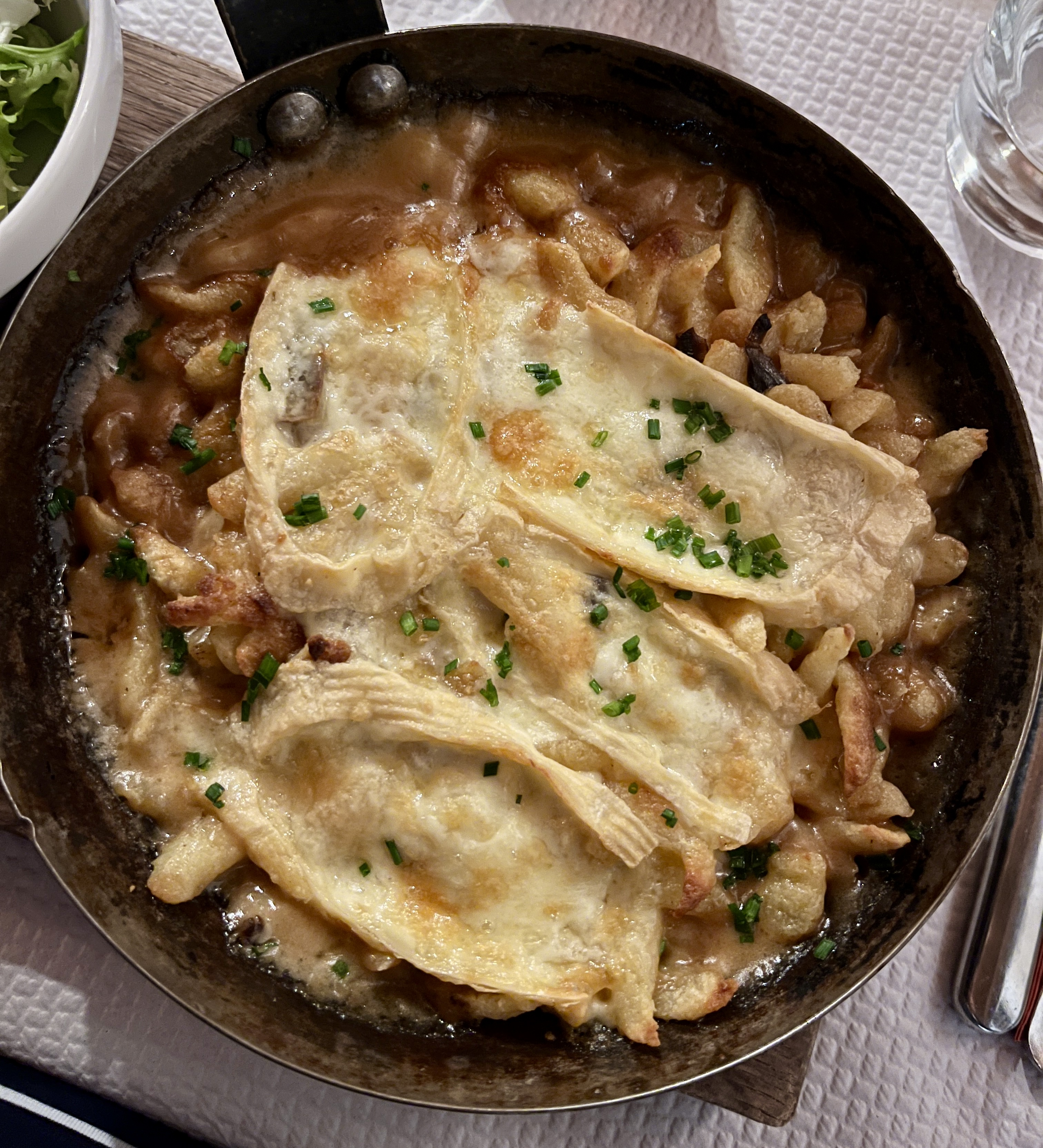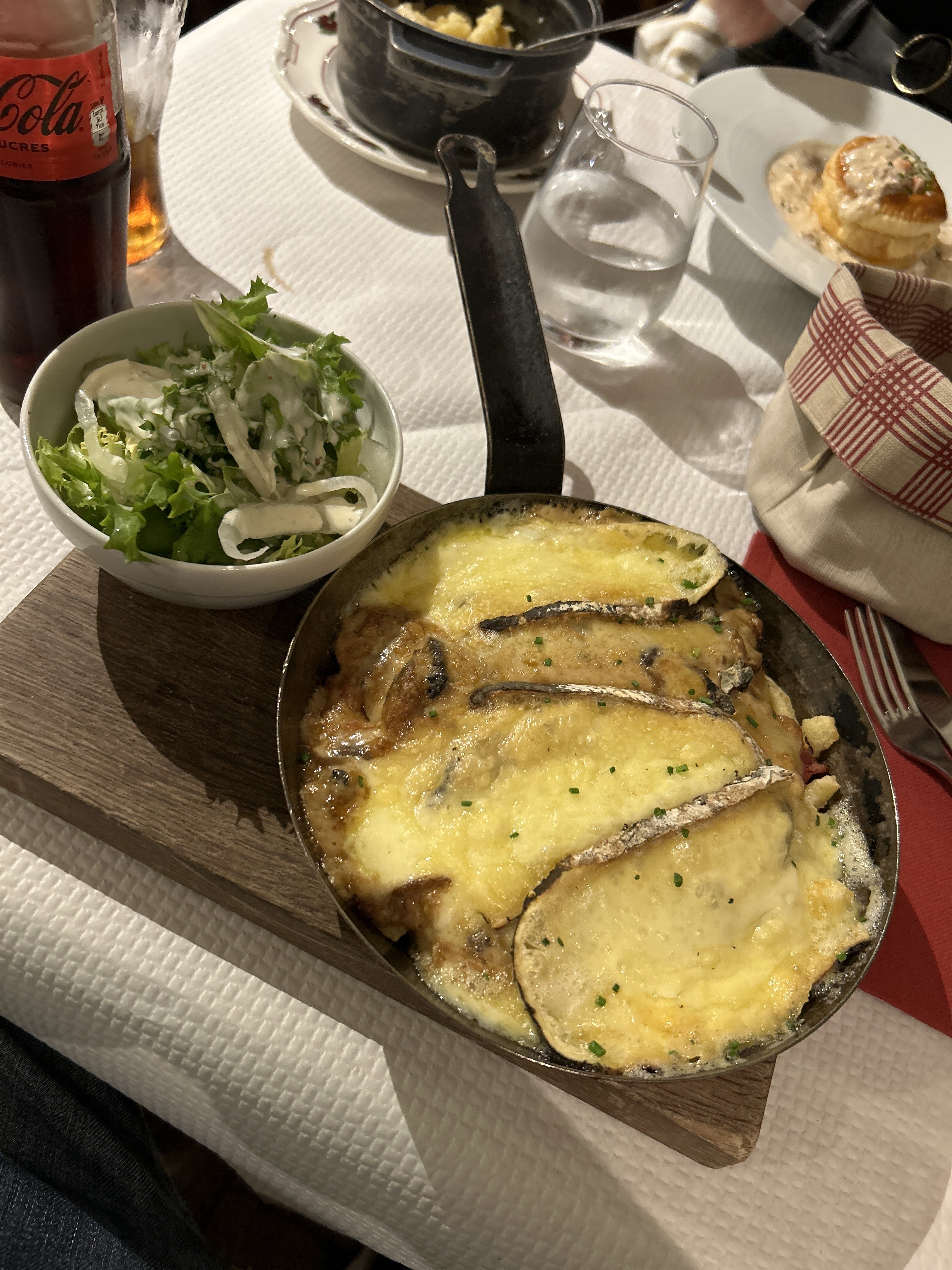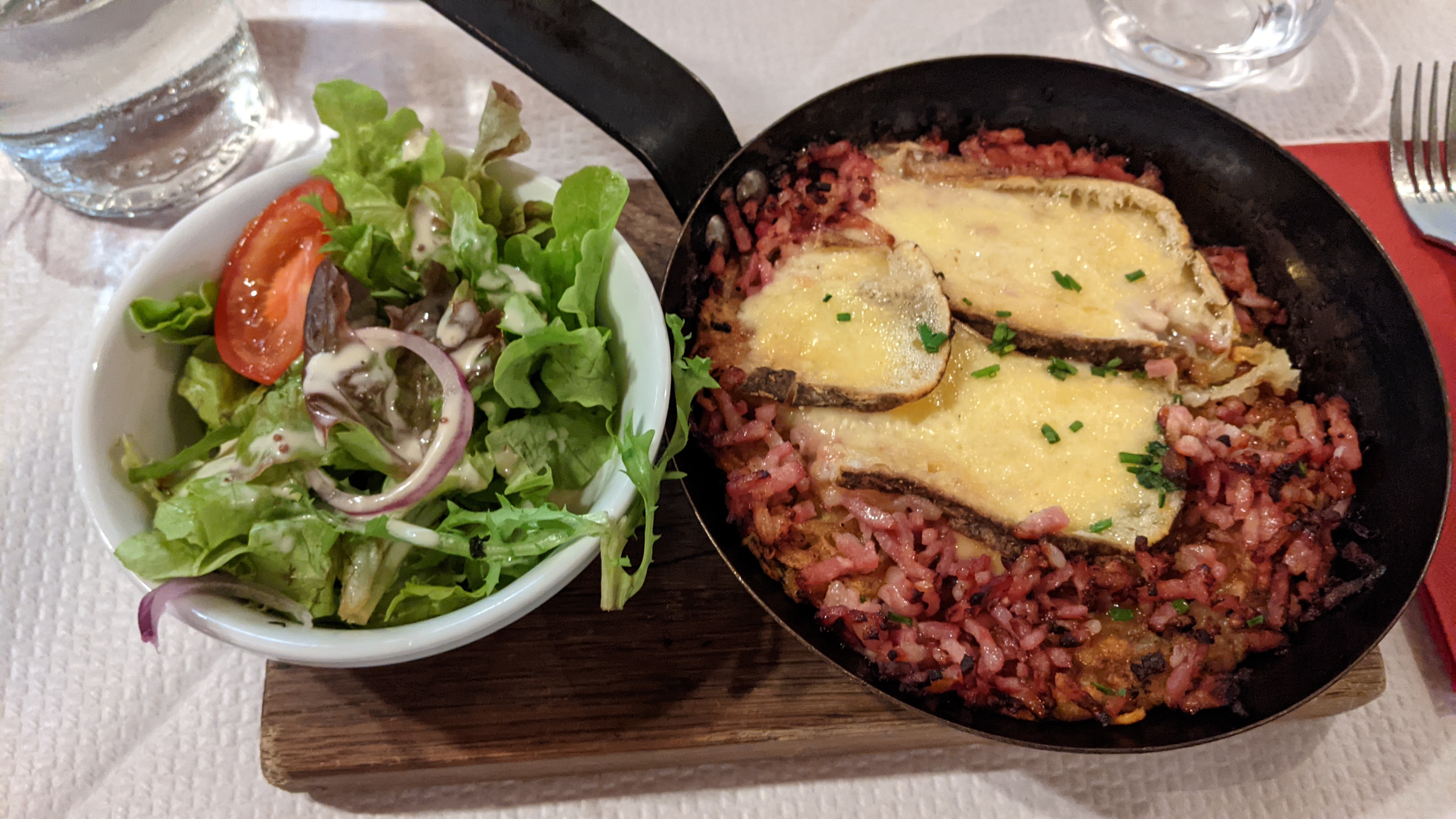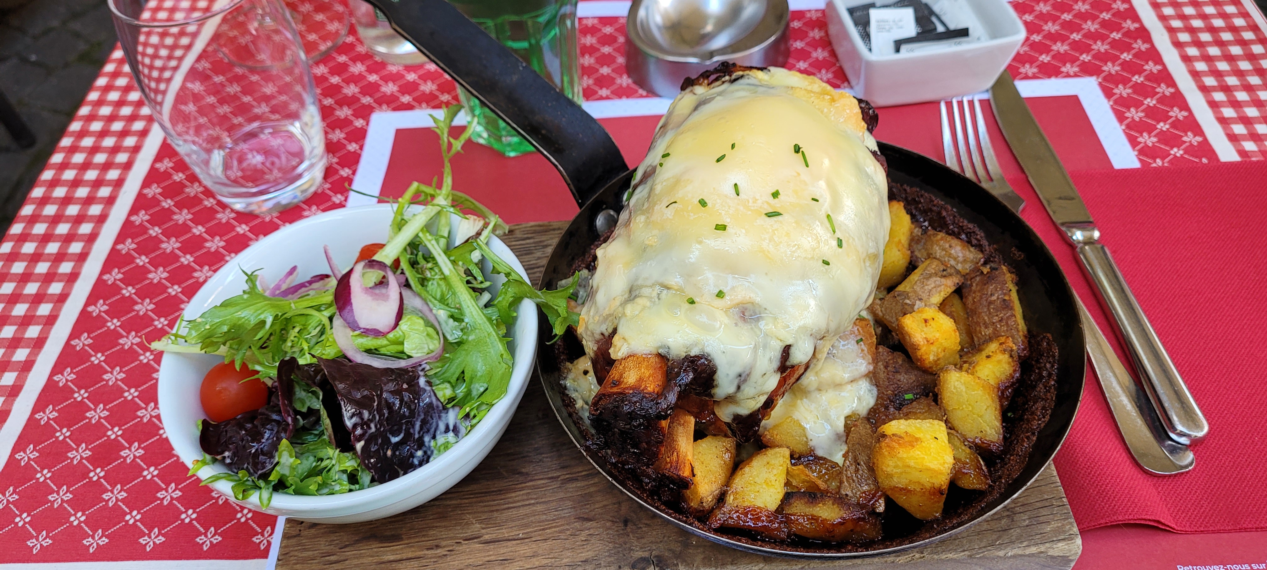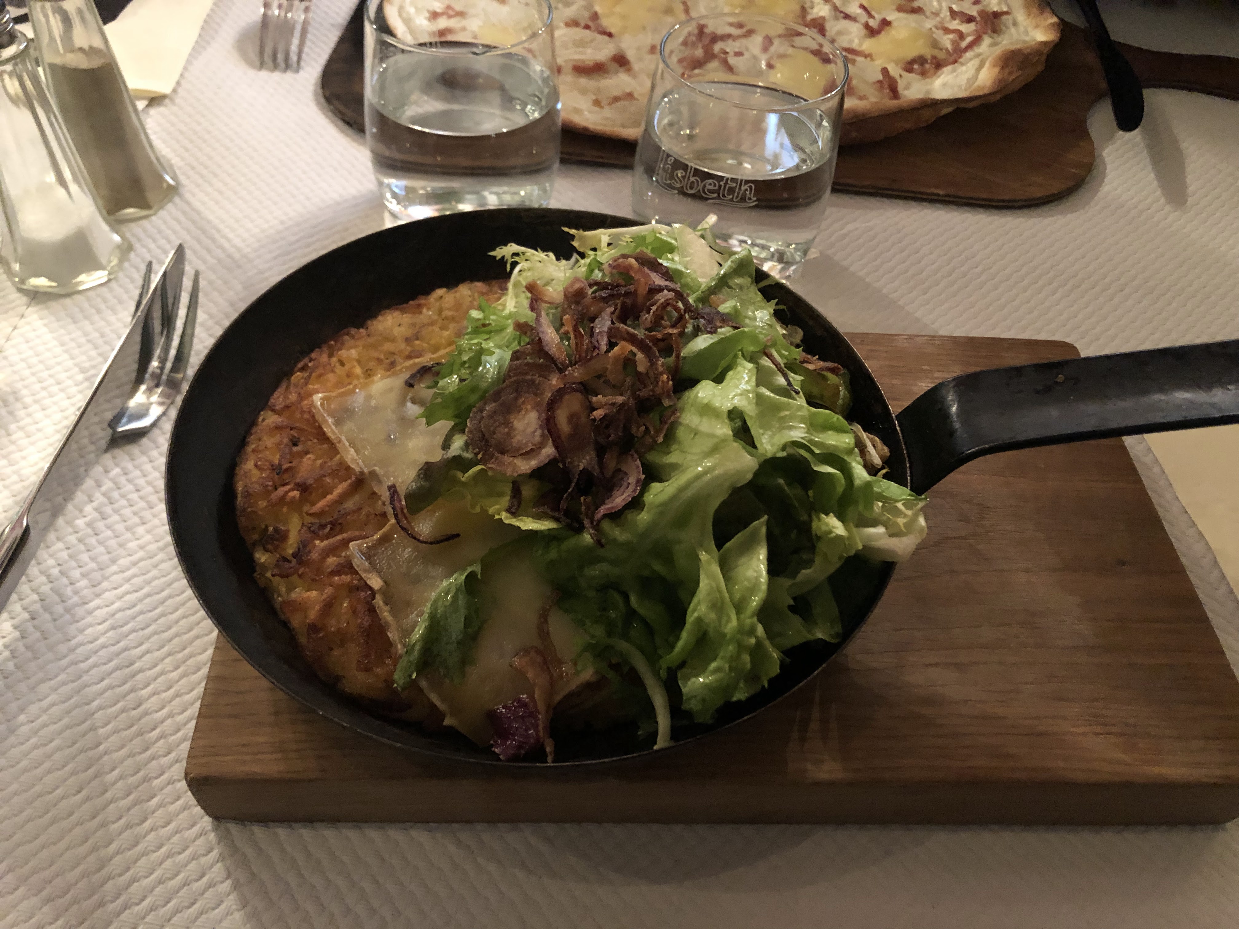 Une très bonne adresse pour découvrir les spécialités régionales à des prix raisonnables. En entrée tarte flambée végétarienne puis bouchée à la reine et poêlon de spaetzle aux champignons et à la tomme. Tout celà servi par un personnel très agréable. De plus les animaux sont acceptés, que demander de plus à part y retourner ?