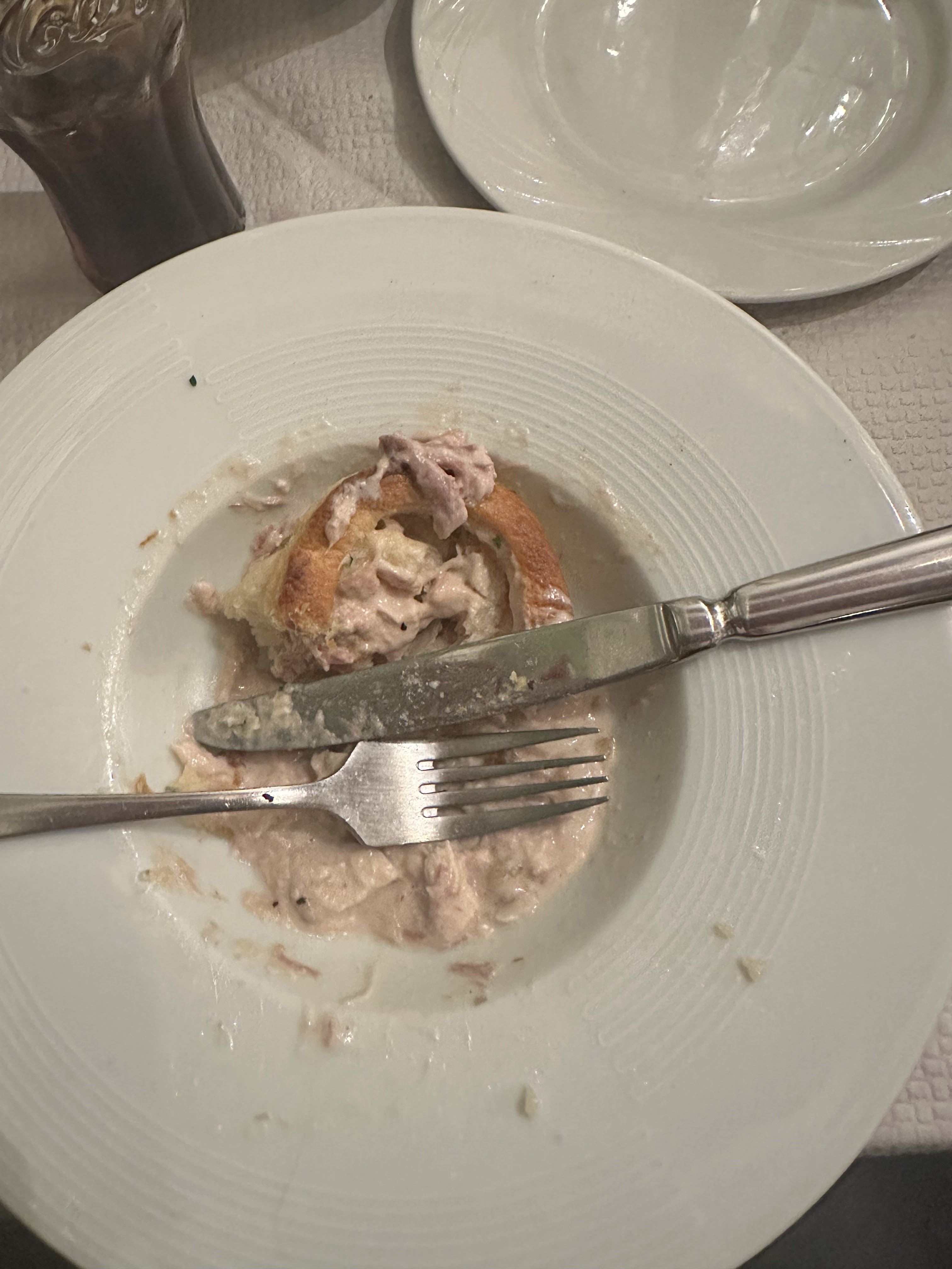 Une bonne adresse en apparence, cependant quelques points à noter qui ont quand même son importance sur le ressenti global. Arrivé à 20h, les apéritifs )même si nous avons du demander à ce que le seau du vin soit changé afin qu’il puisse être frais) et les entrées sont arrivés rapidement et était bon après cela le temps d’attente a été des plus long (un peu plus de 45min) le plat de mon conjoint et quand même arrivé juste chaud quant à moi un cordon bleu que je n’ai pas renvoyé une fois mais bien deux fois car tout simplement la volaille était encore rose ! (La photo est le résultat de la viande après le premier renvoie en cuisine) Cela veut dire que lors du premier renvoie la nouvelle cuisson n’a pas même pas été vérifié, bizarrement cela ne m’étonne pas lorsque un serveur qui fait mine que tout est normal et l’un des cuisinier se balader avec sa casquette personnelle.. Je tiens tout de même à remercier la cheffe de salle qui a été d’une bienveillance et d’un professionnel hors paire, elle a remonté le niveau !