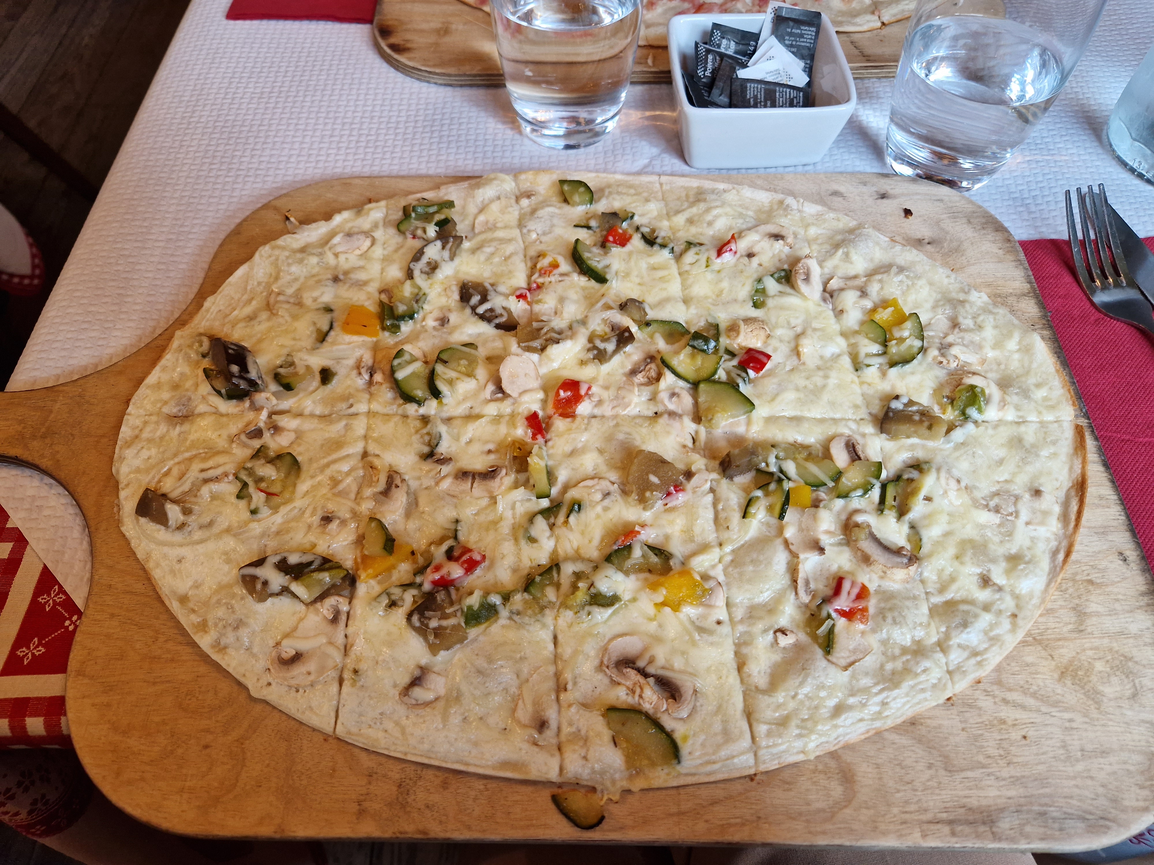 Déjeuner sympa dans ce restaurant, le service a été rapide et agréable Les flammenkuches sont délicieuses, il y en a une version végétarienne assez bonne, la pâte est fine, le tout reste léger Pour un samedi midi, l'endroit n'était pas rempli donc on a eu des places directement, au choix en intérieur ou en terrasse Les prix sont très raisonnables ! Je recommande cette adresse