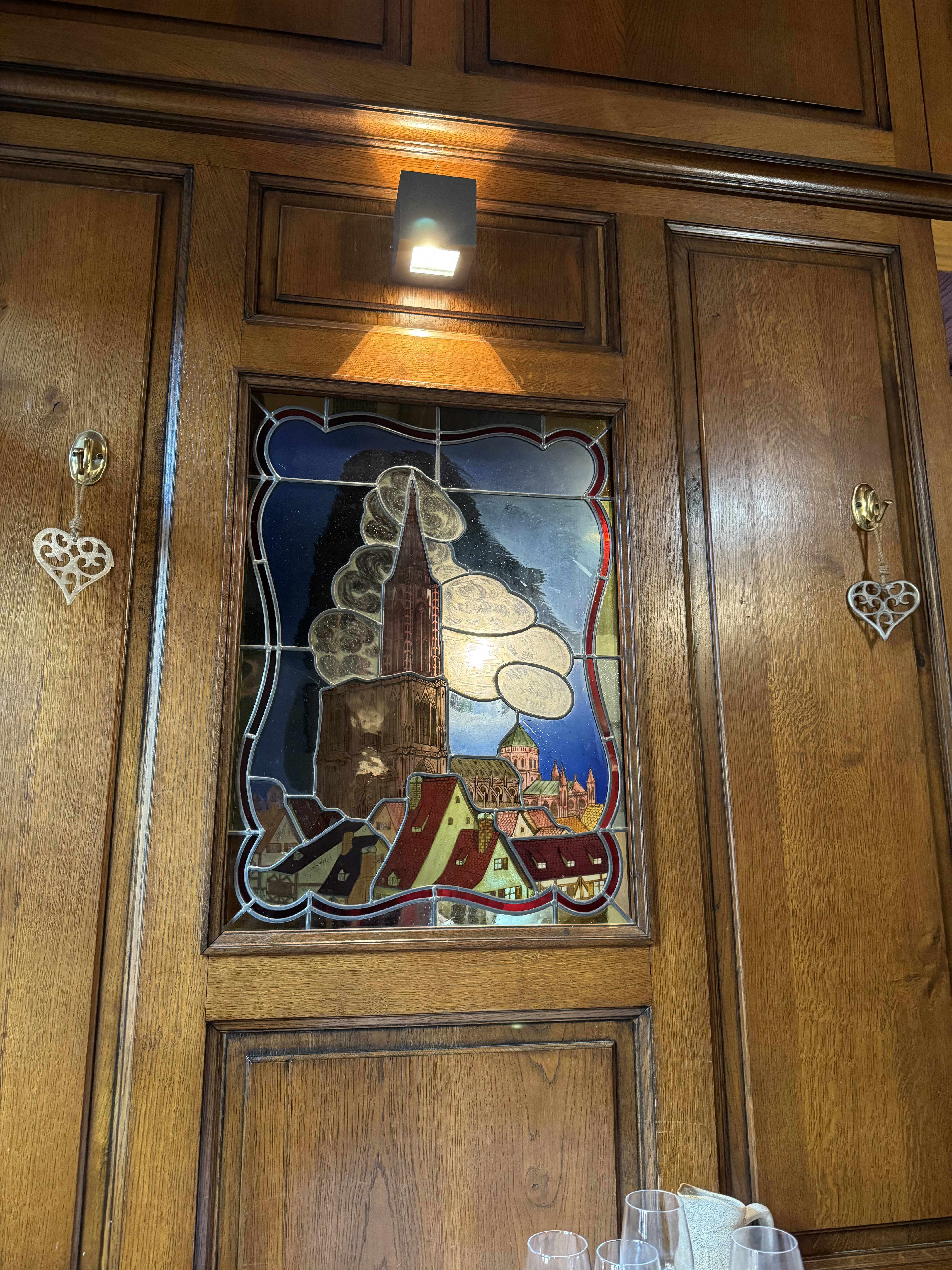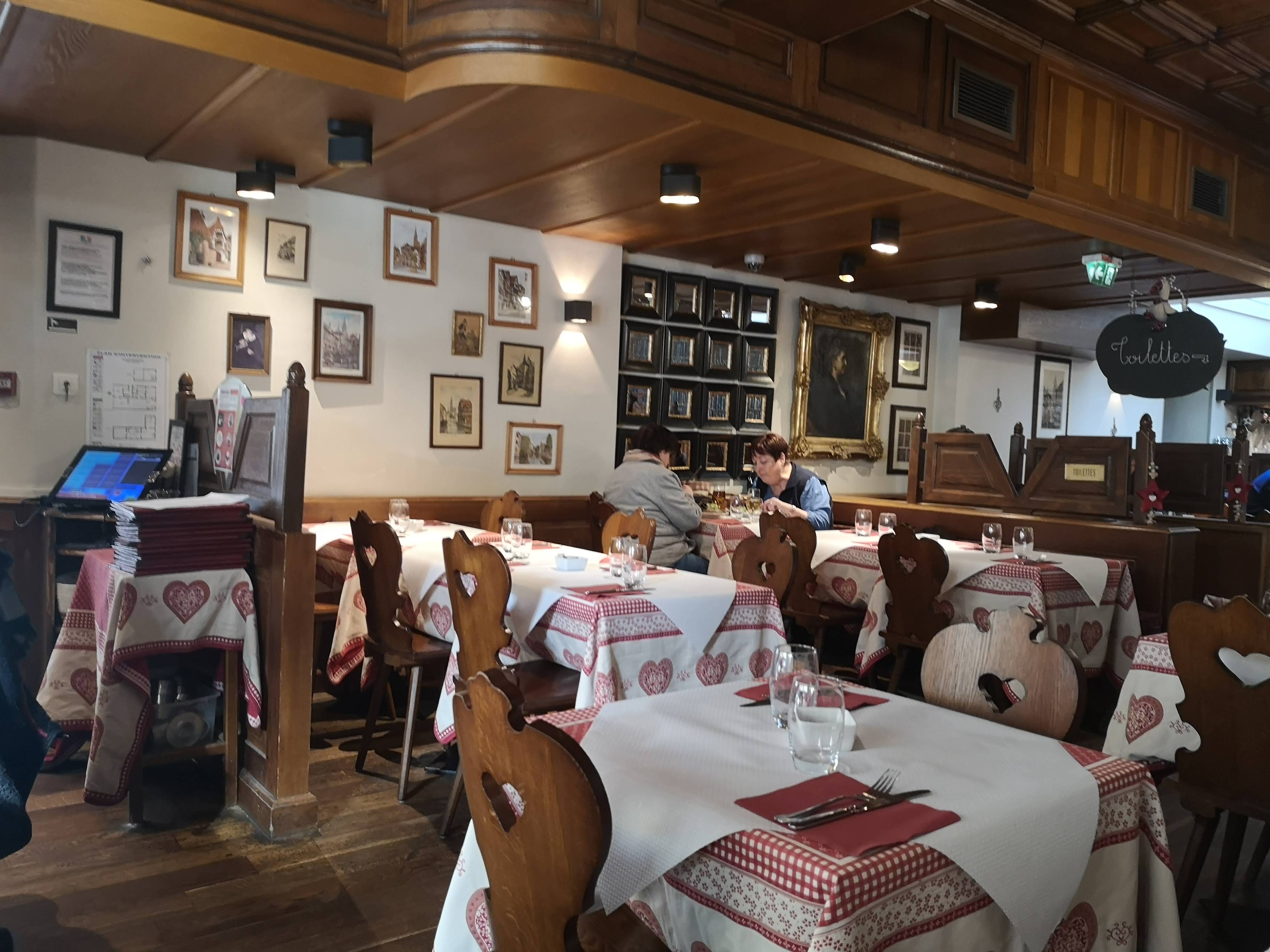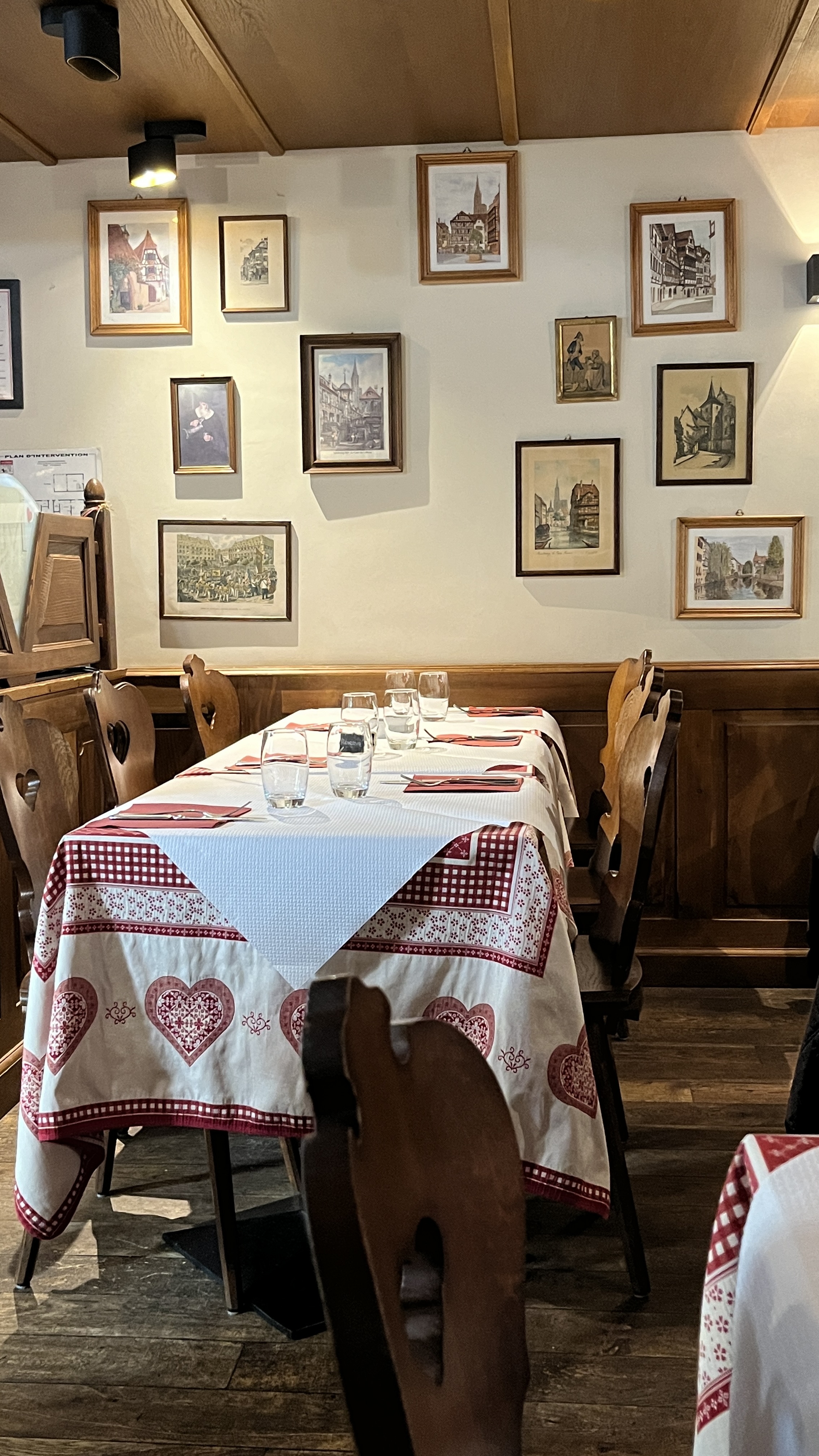 Restaurant Alsacien à proximité de la Cathédrale. Décors en bois d'époque et nappe Kelsch rouge qui donne une ambiance Alsacienne classique confortable. Service agréable et rapide.