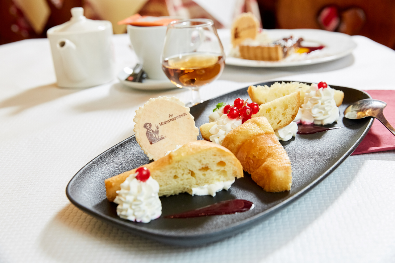 Très bon accueil un personnel agréable et très gentil Entrée très très bonne ...salade pot au feu excellente...le foie gras succulent. Petit bémol sur la bouchée à la reine que l'on attendait plus crémeuse...mais spatzle maison très bon...sur le café gourmand, le baba aurait mérité d'être un peu plus imbibé.