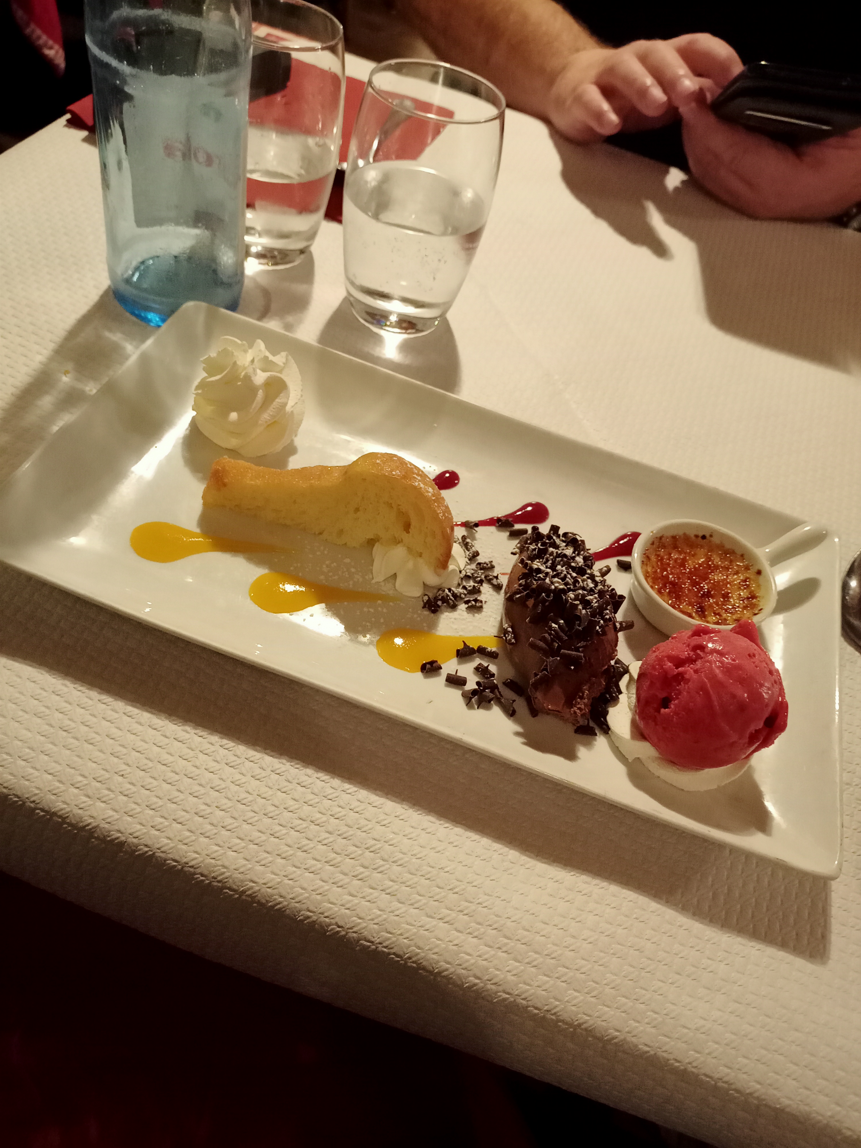 Déçu par la choucroute, le chou peu goûteux, plat pour 4 personnes non individuelles et manquait de chaleur, nous voulions vraiment goûter le plat régional . Décevant . Nous avons pris le dessert ailleurs.