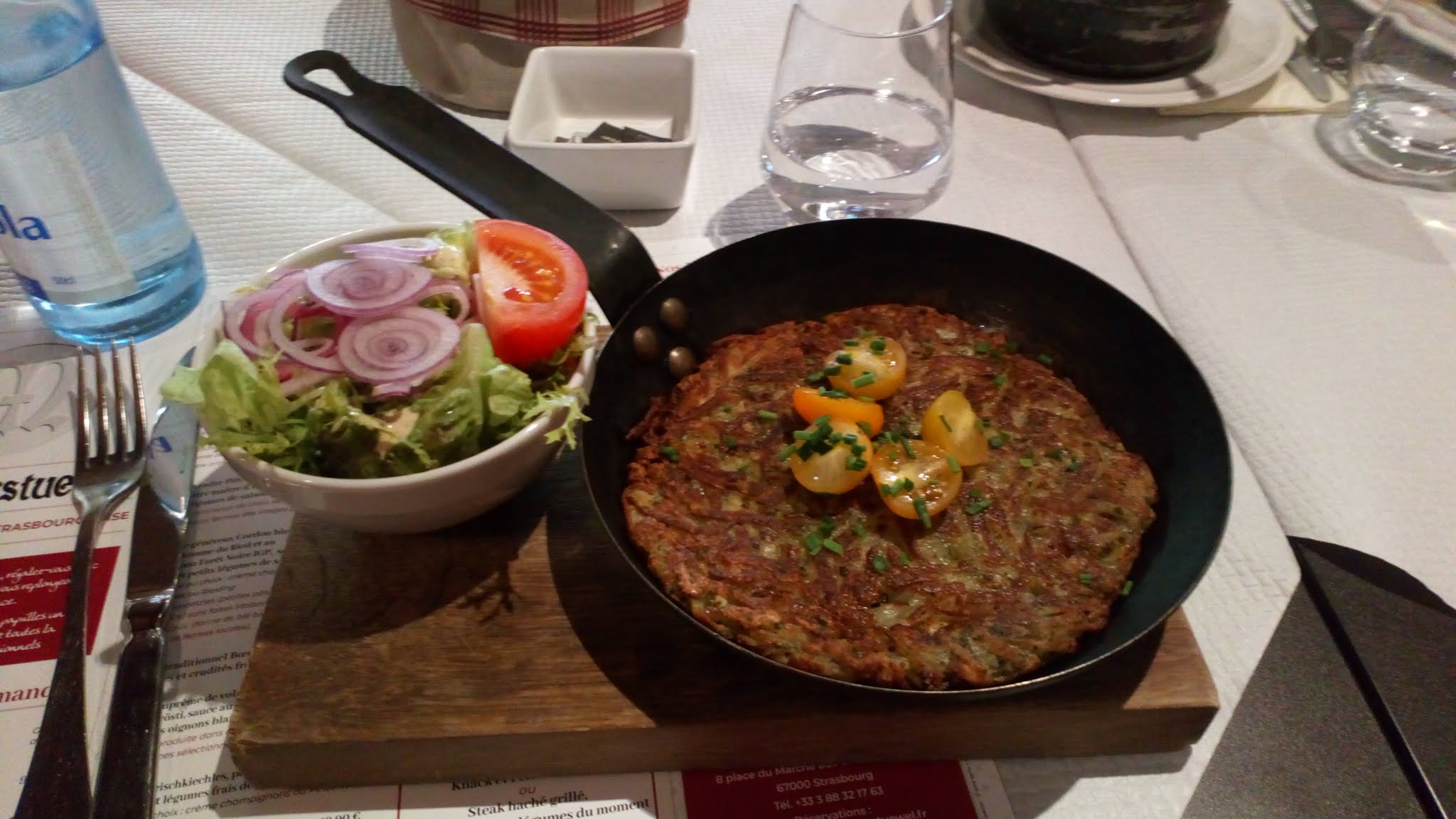 Un très bon restaurant alsacien situé à deux pas de la cathédrale. Le service était très agréable et la tarte flambée excellente ! Des options végétariennes sont proposées clairement sur la carte, une belle initiative qui mérite d'être saluée.