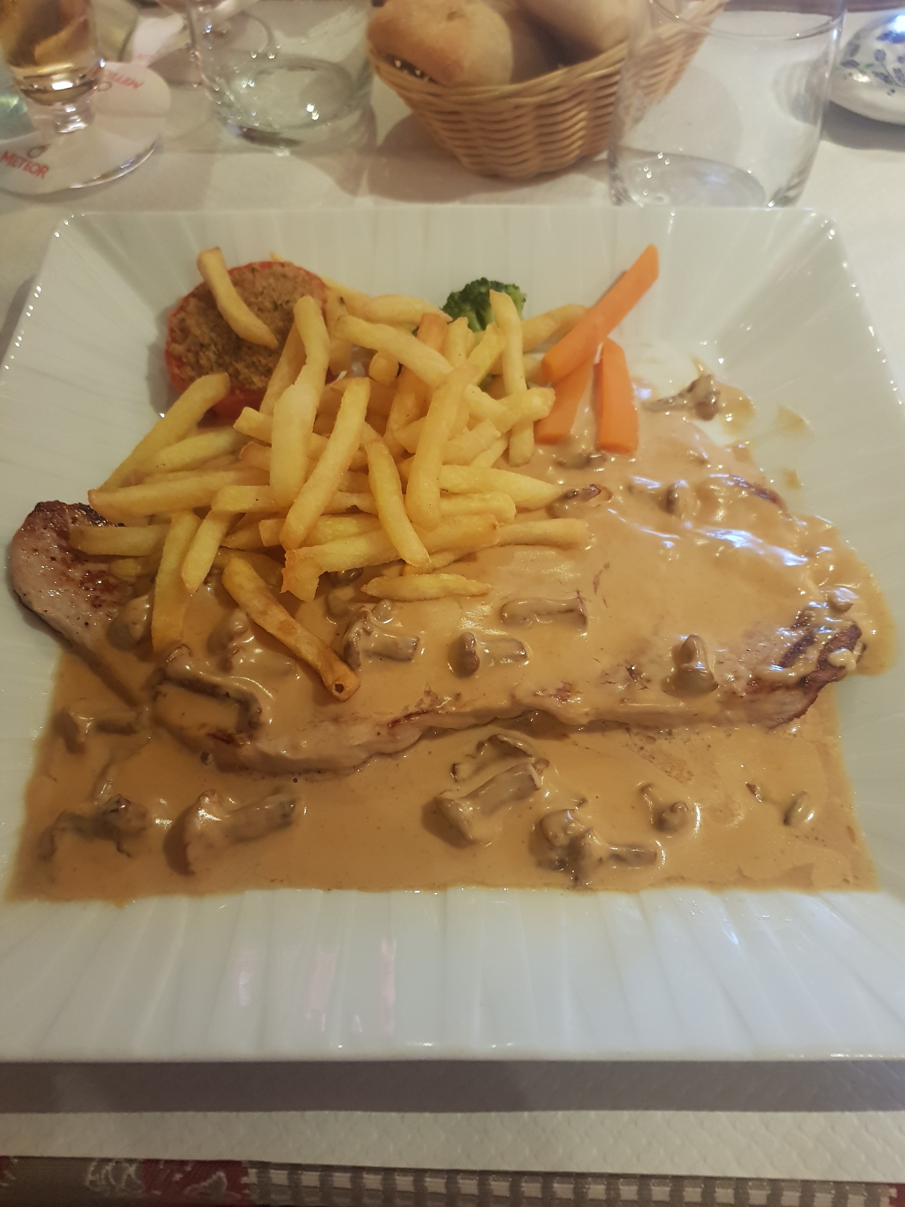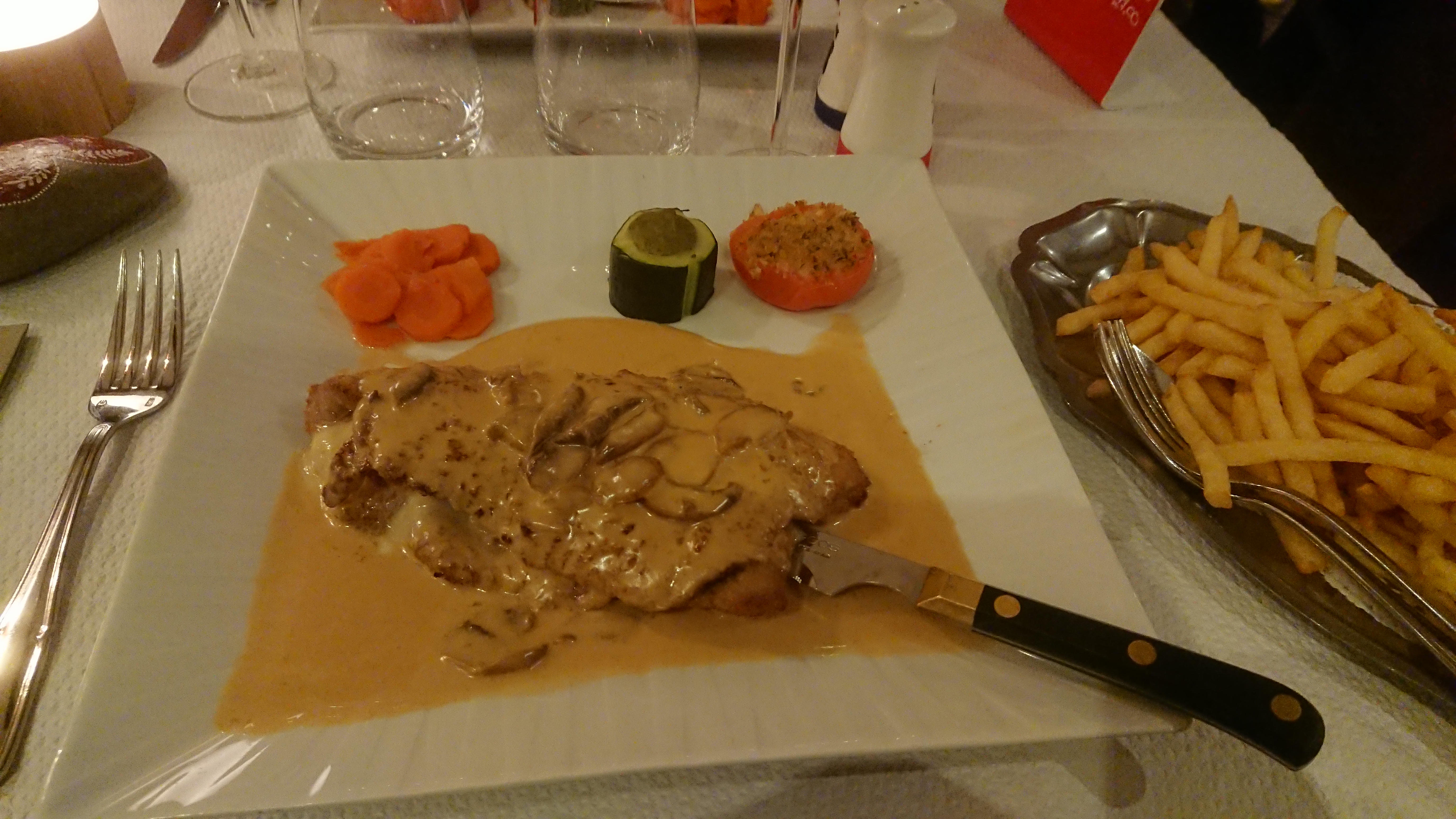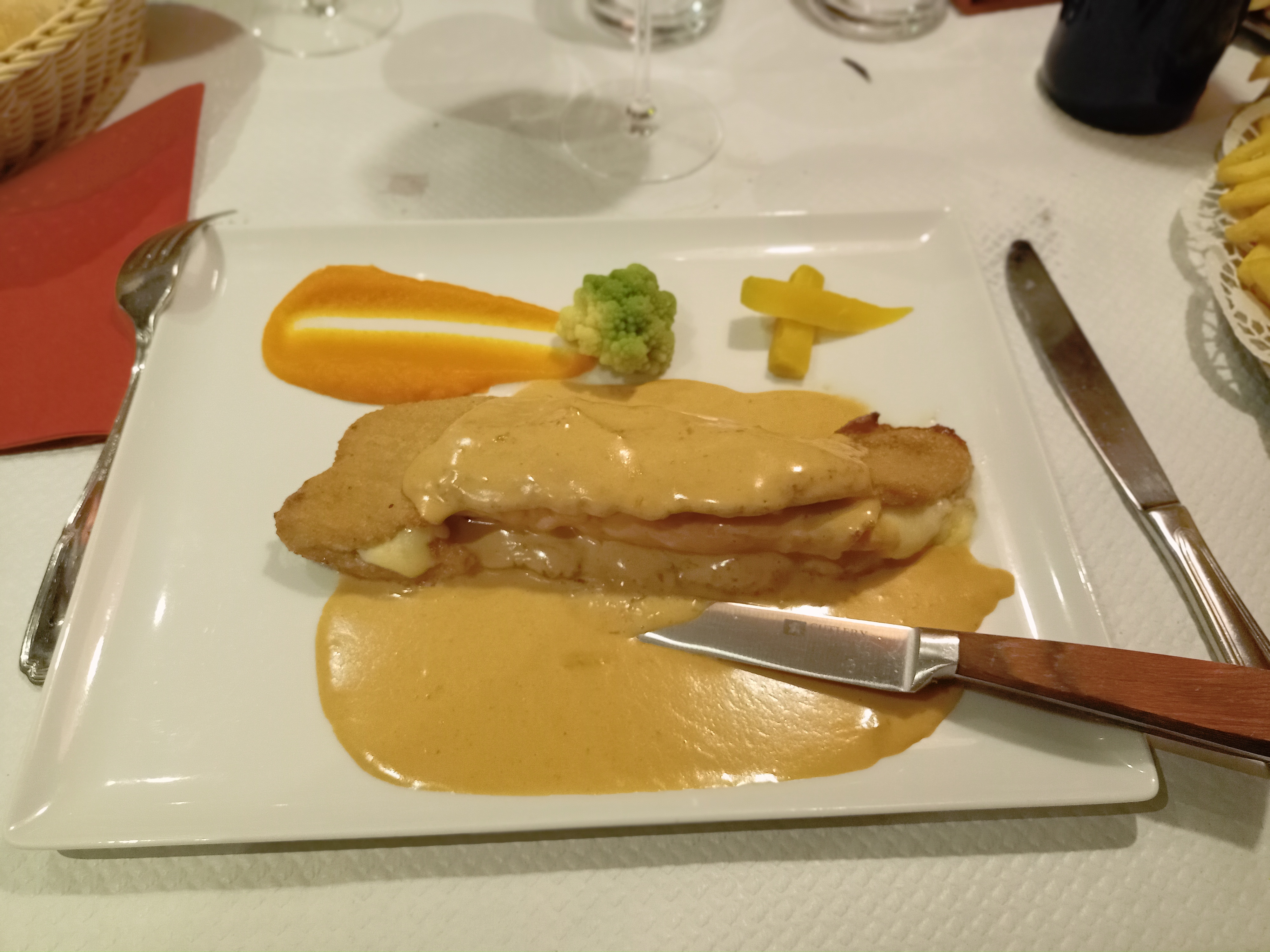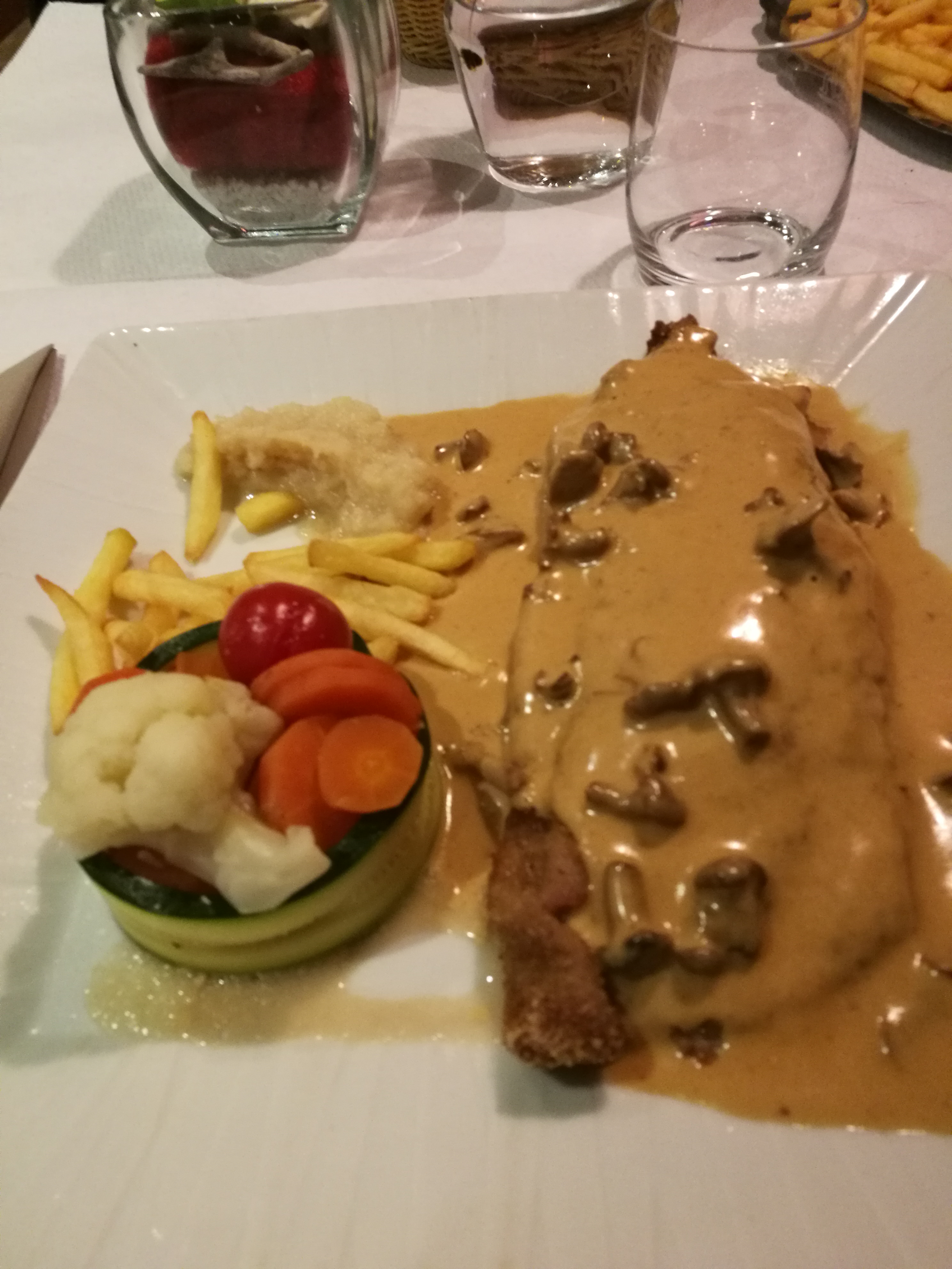 Rien à redire sur ce restaurant jusqu'à ce soir, accueil pas terrible,j ai demandé à la serveuse si ils avaient des moules, sa réponse limite insolente pour ça il faut aller en Bretagne En suggestion il y avait gambas et noix de saint Jacques, on trouve sa en alsace ???🤔. Bref a défaut des moules on va prendre ma femme et moi comme d habitude un bon cordon bleu au girolles. Et bien non!!! Ils on diminué la quantité mais surtout la qualité.la viande pleine de nerfs.c est dommage,c était jusqu'à présent les meilleurs que j avait mangé