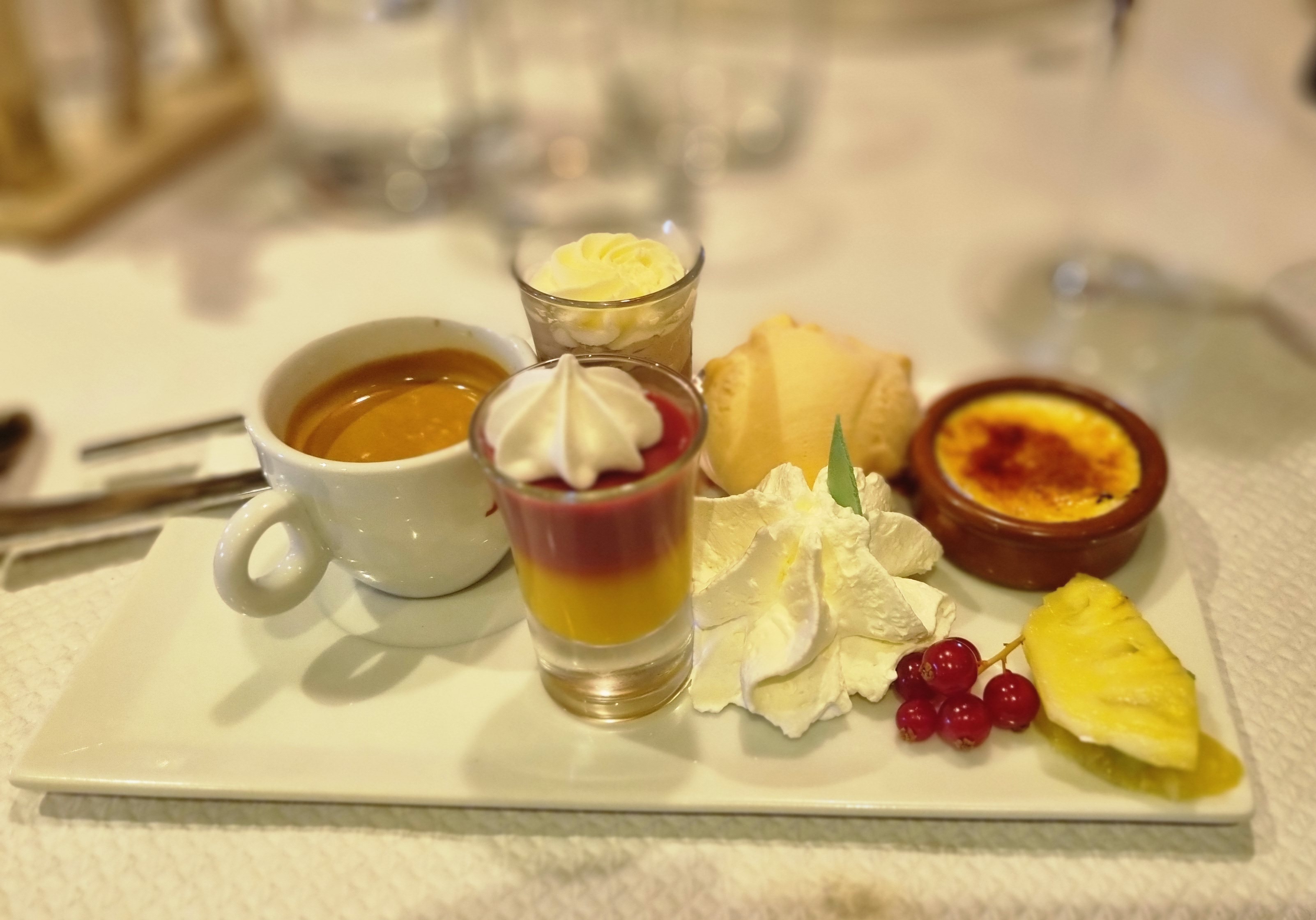 resto bon. Seul bémol les chaises ne sont pas très confortable et le café gourmand sert de passe misère avec son mille-feuilles industrielle et ça glace à la menthe qu'il n'arrive pas à vendre