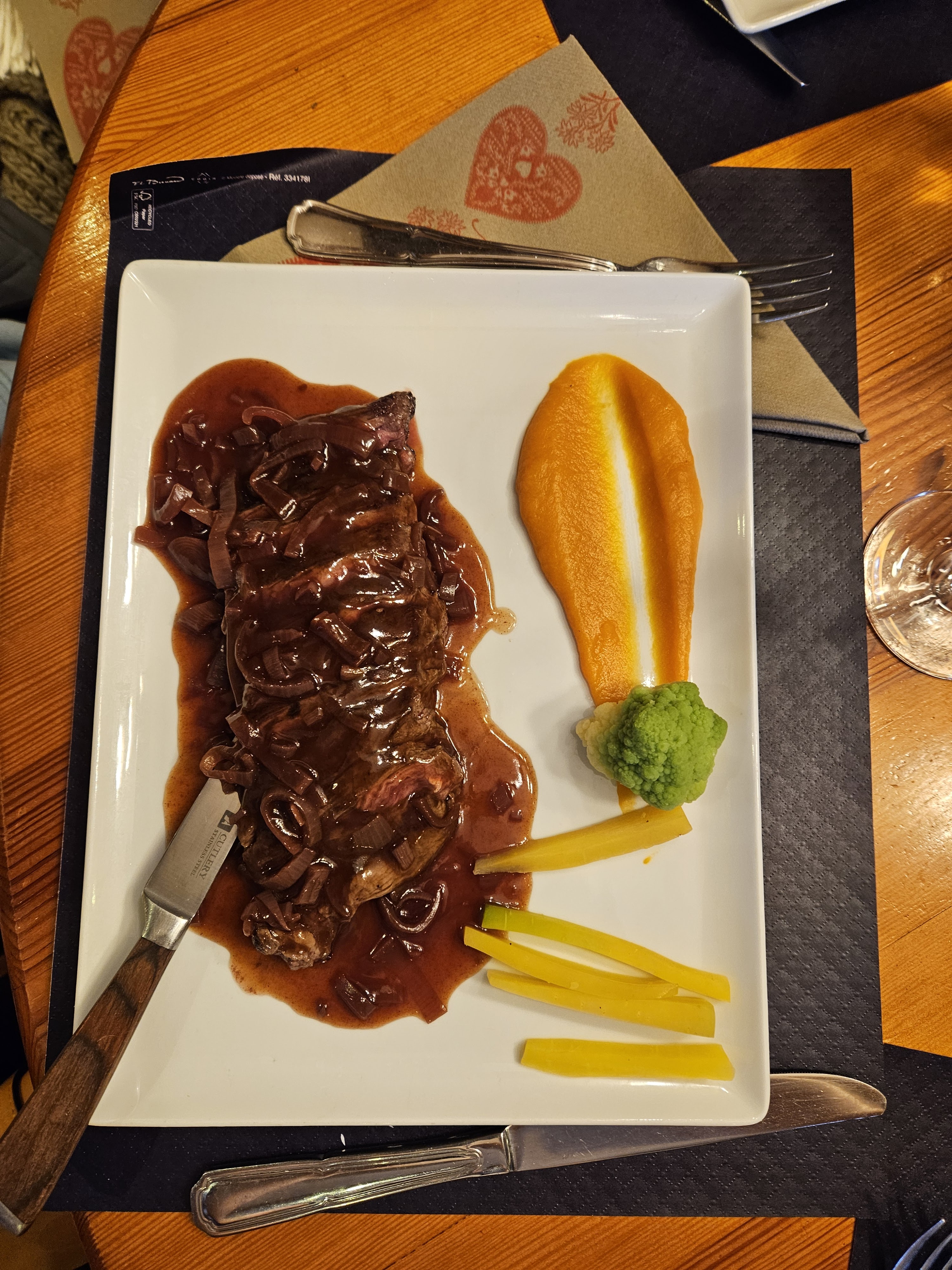 Restaurant aussi beau de l'extérieur comme de l'intérieur. Je conseil une viande accompagnée d'une sauce aux girolles. Le seul point négatif est l'addition qui me semble un peu élevé.