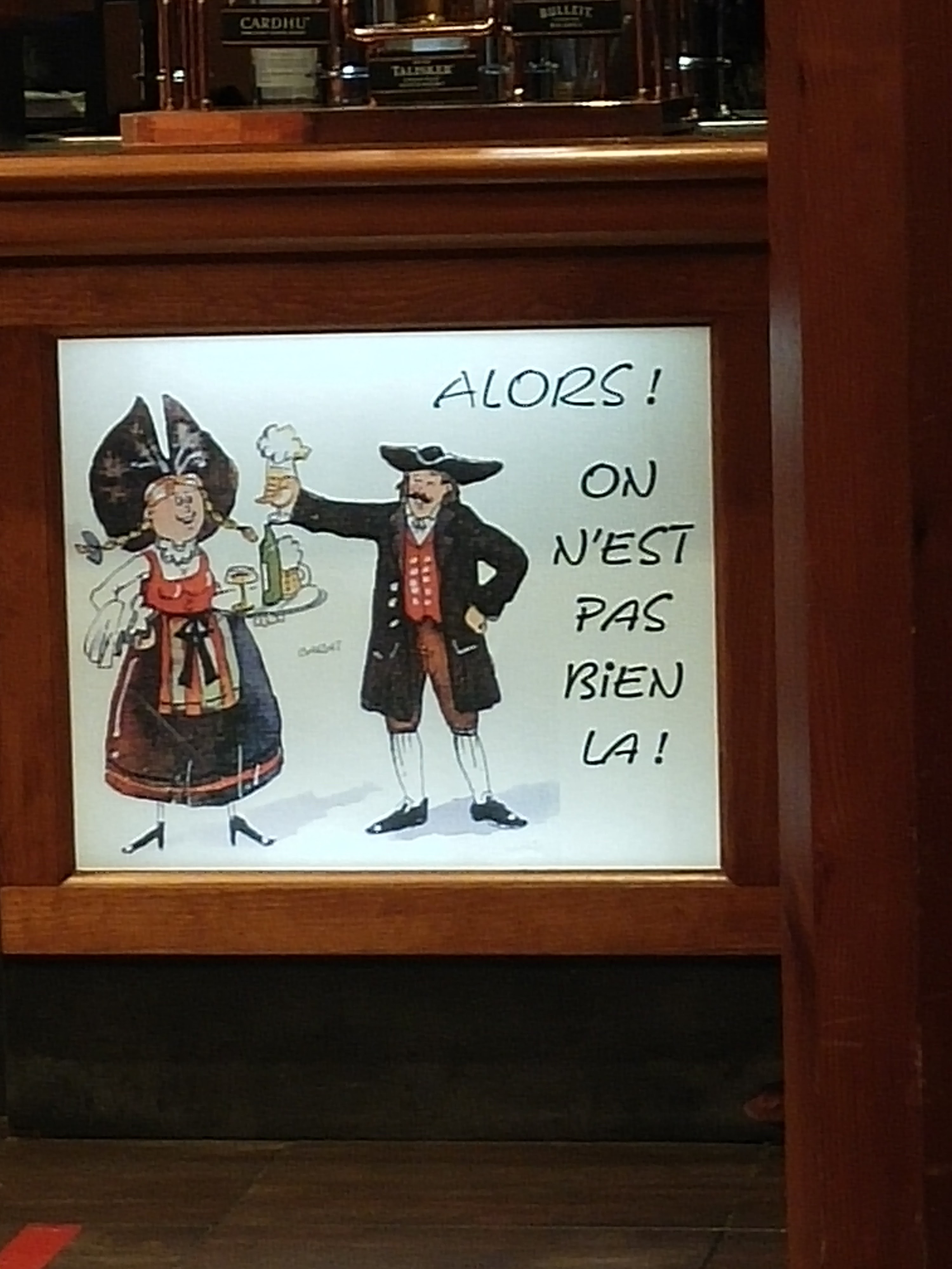 Sympa mais très surpris que l on ne puisse avoir quelques biscuits apéritifs (type mini bretzels) avec nos apéritifs..... la serveuse nous réponds que nous pouvons commander une tarte flambee. Bien sûr...