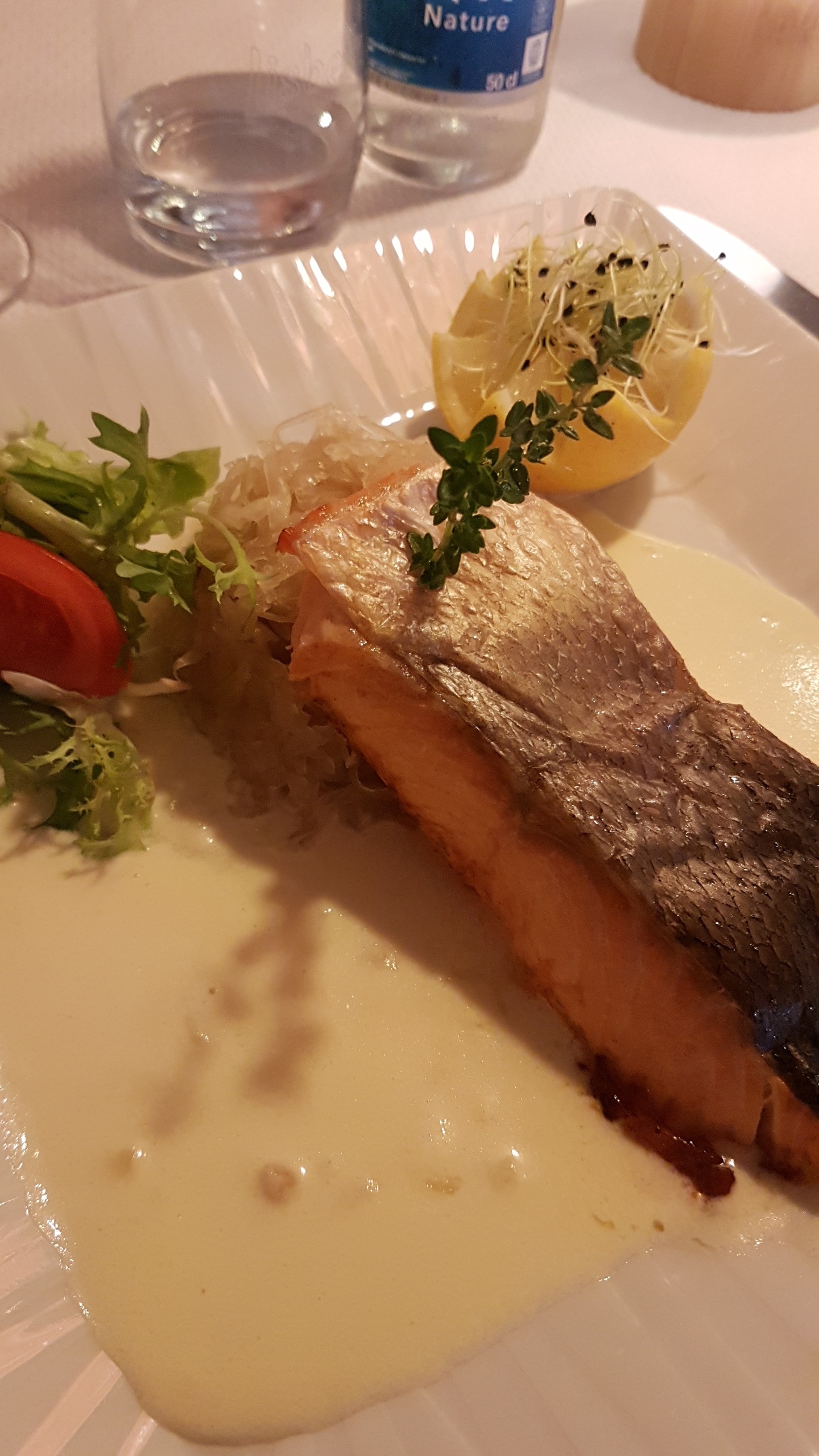Le cadre, la nourriture c'est top. Par contre l'attitude des serveurs est pas très cool. Nous sommes venus un midi à 12, pas de carafe d'eau de disponible il a fallu se battre pour avoir deux carafes d'eau pendant tout le repas. Je trouve cela dommage qu'un restaurateur force à la consommation.