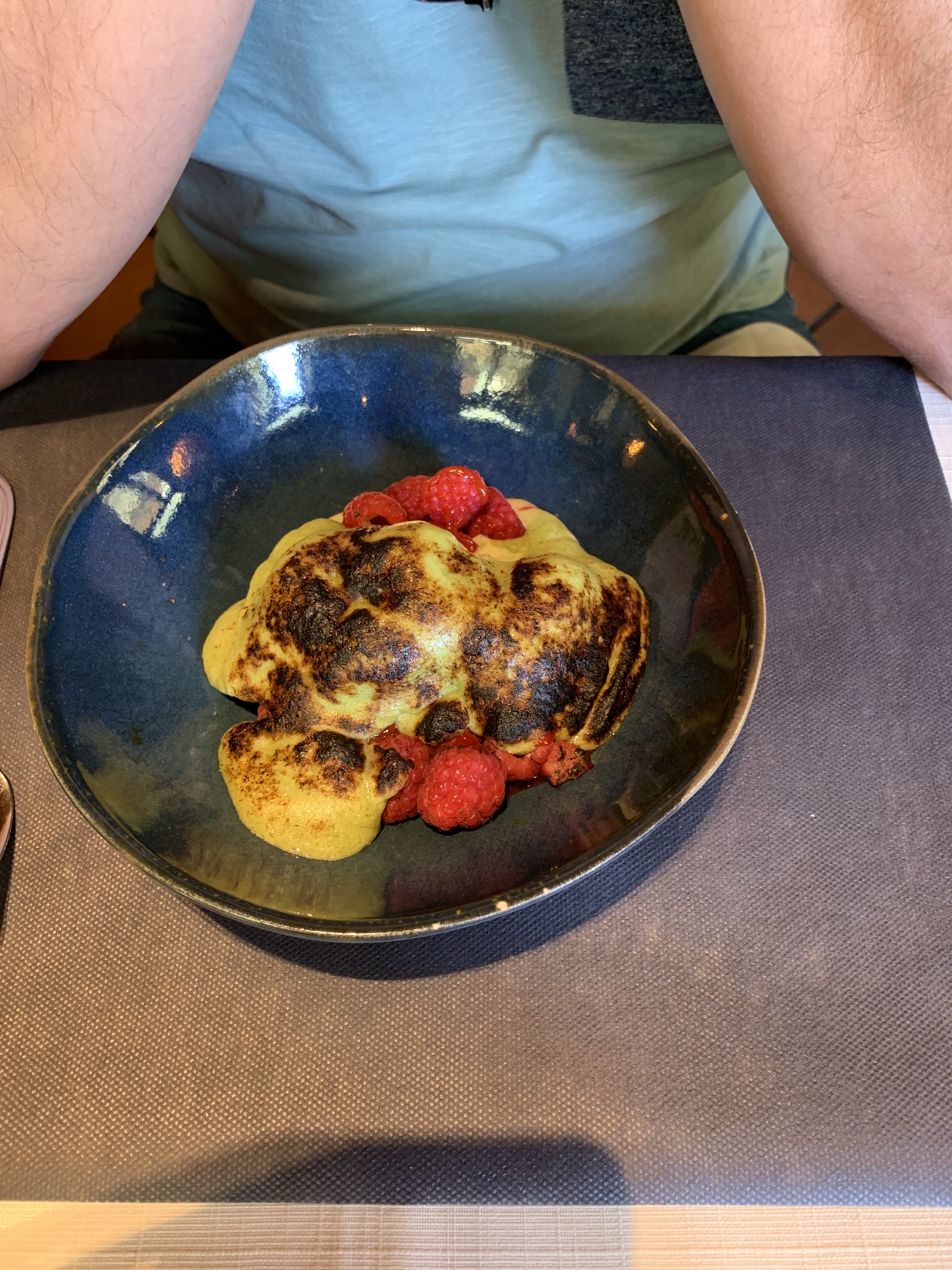 Un plat traditionnel, Presskopf, modernisé, raffiné et accompagné d’une glace aux poireaux…Délicieux ! Un repas au top de l’entrée au dessert 👍😋