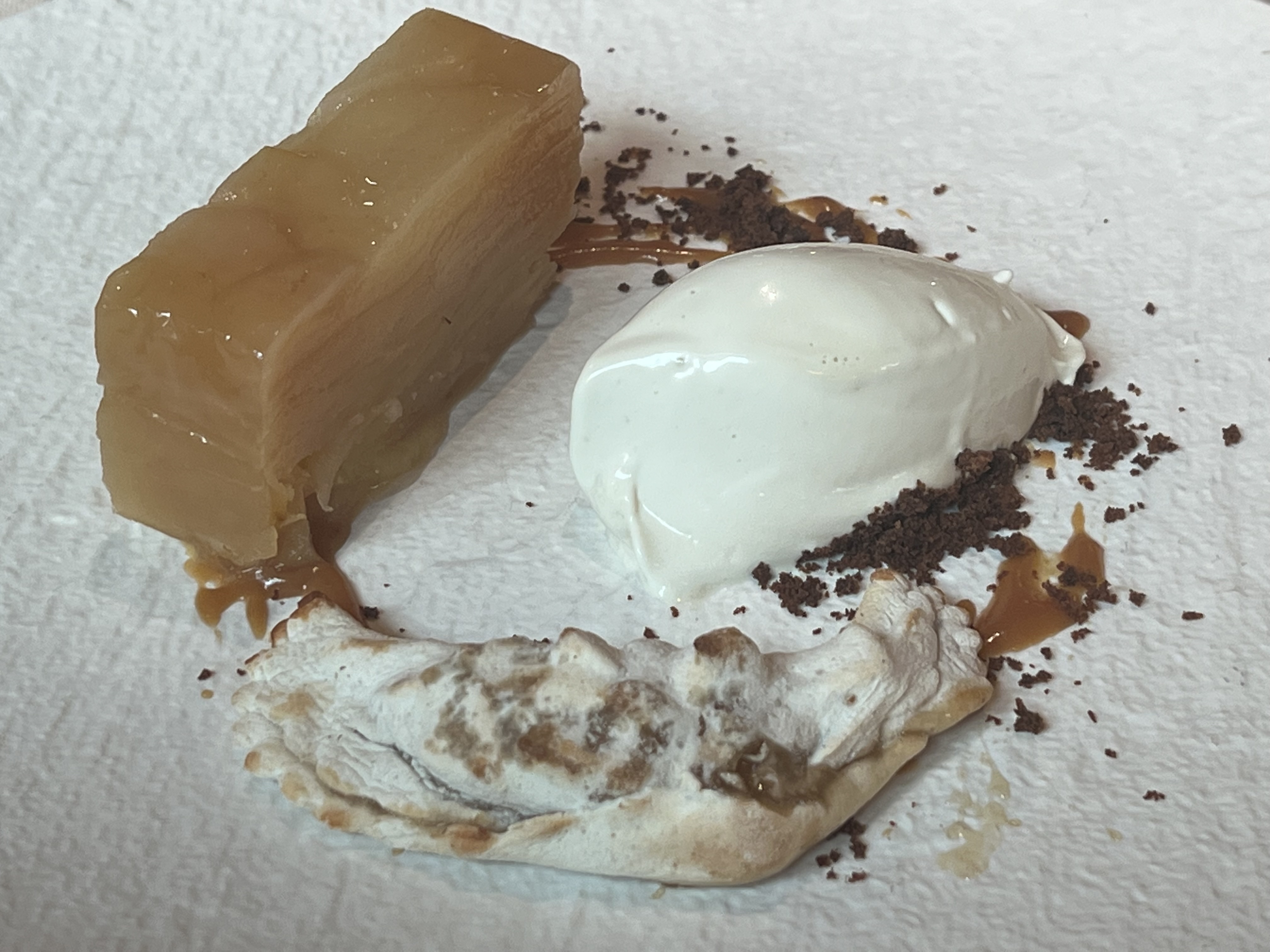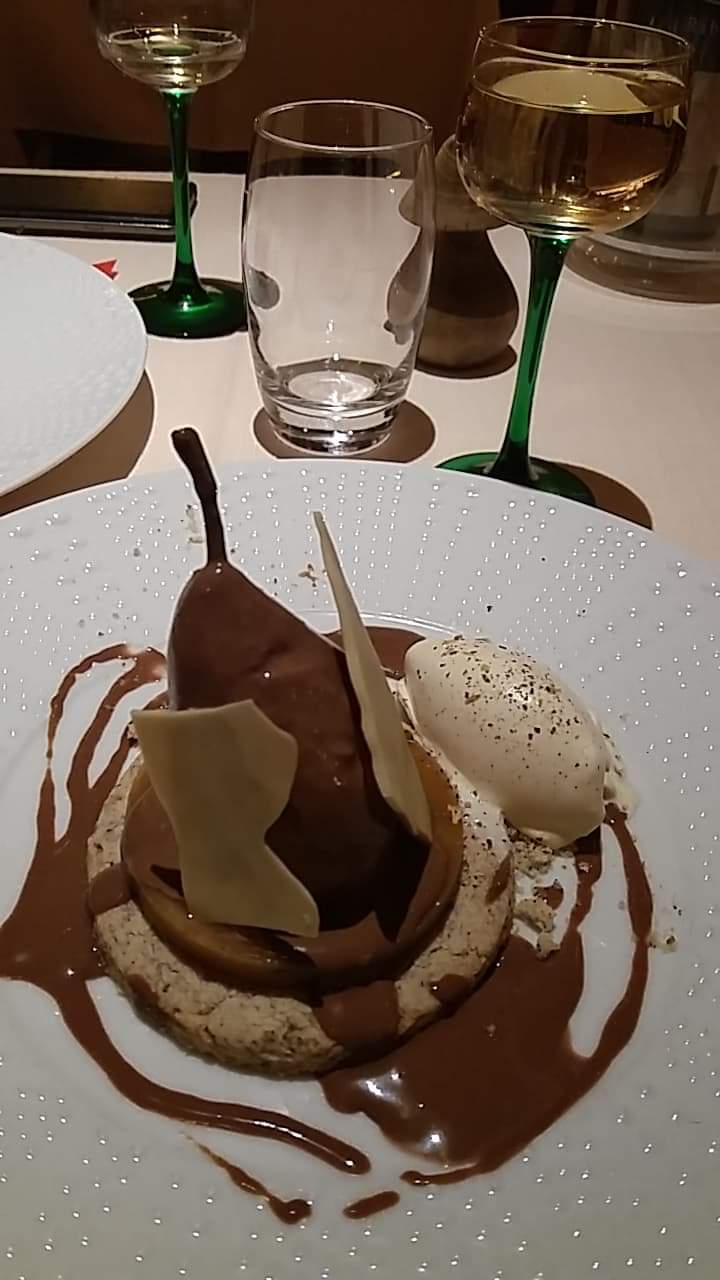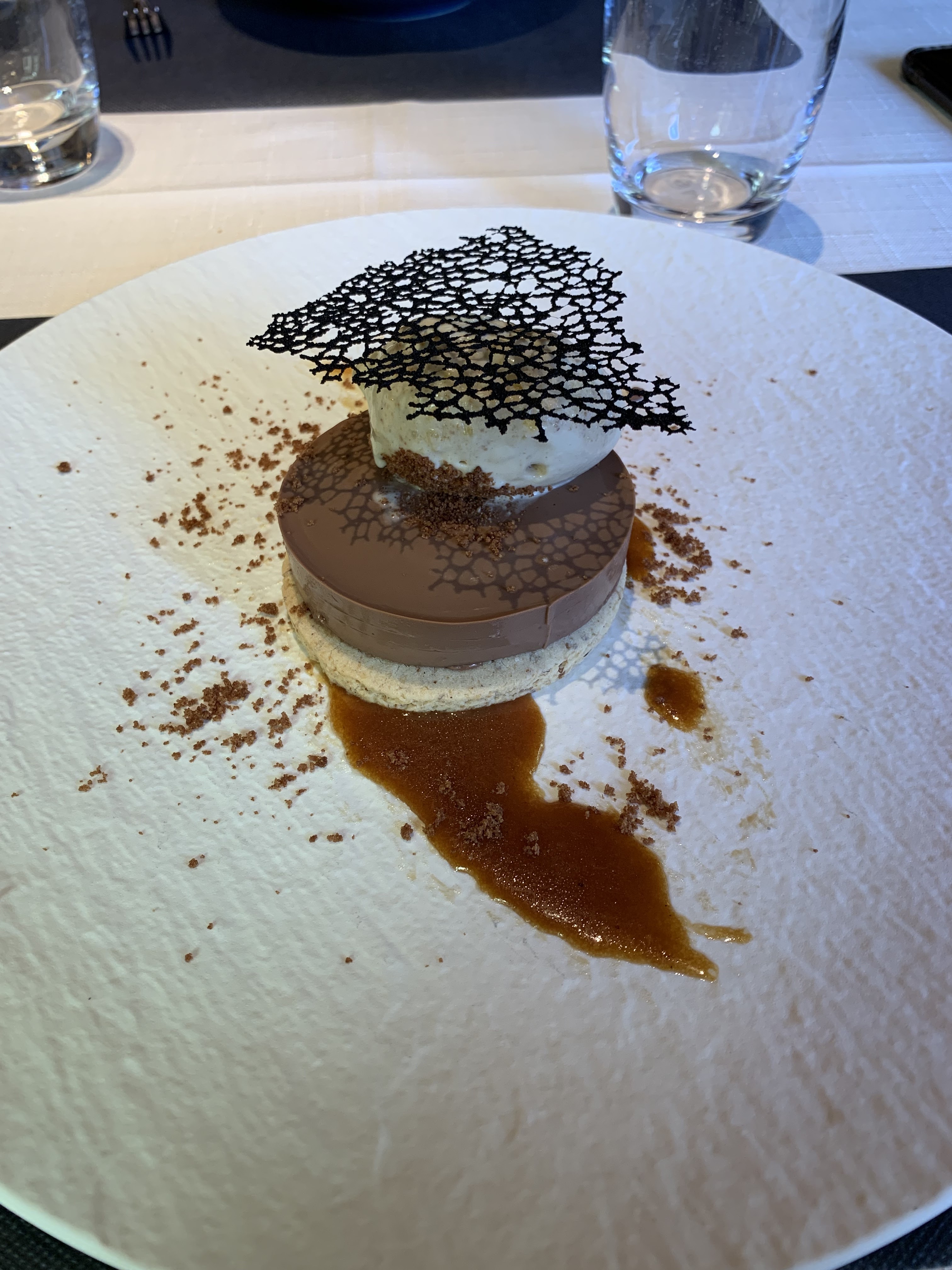 Excellent 👌 Un preskoff sublime avec son granité de radis piquant Et un paleron braisé avec un jus sublime Et j’ai switché sur un dessert à la carte : dessert chocolat sur biscuit noisette avec glace cacahuète Sublime 😋 Et mon mari a réussi à manger la mousseline de petits pois . Un exploit ! 😂👌👏