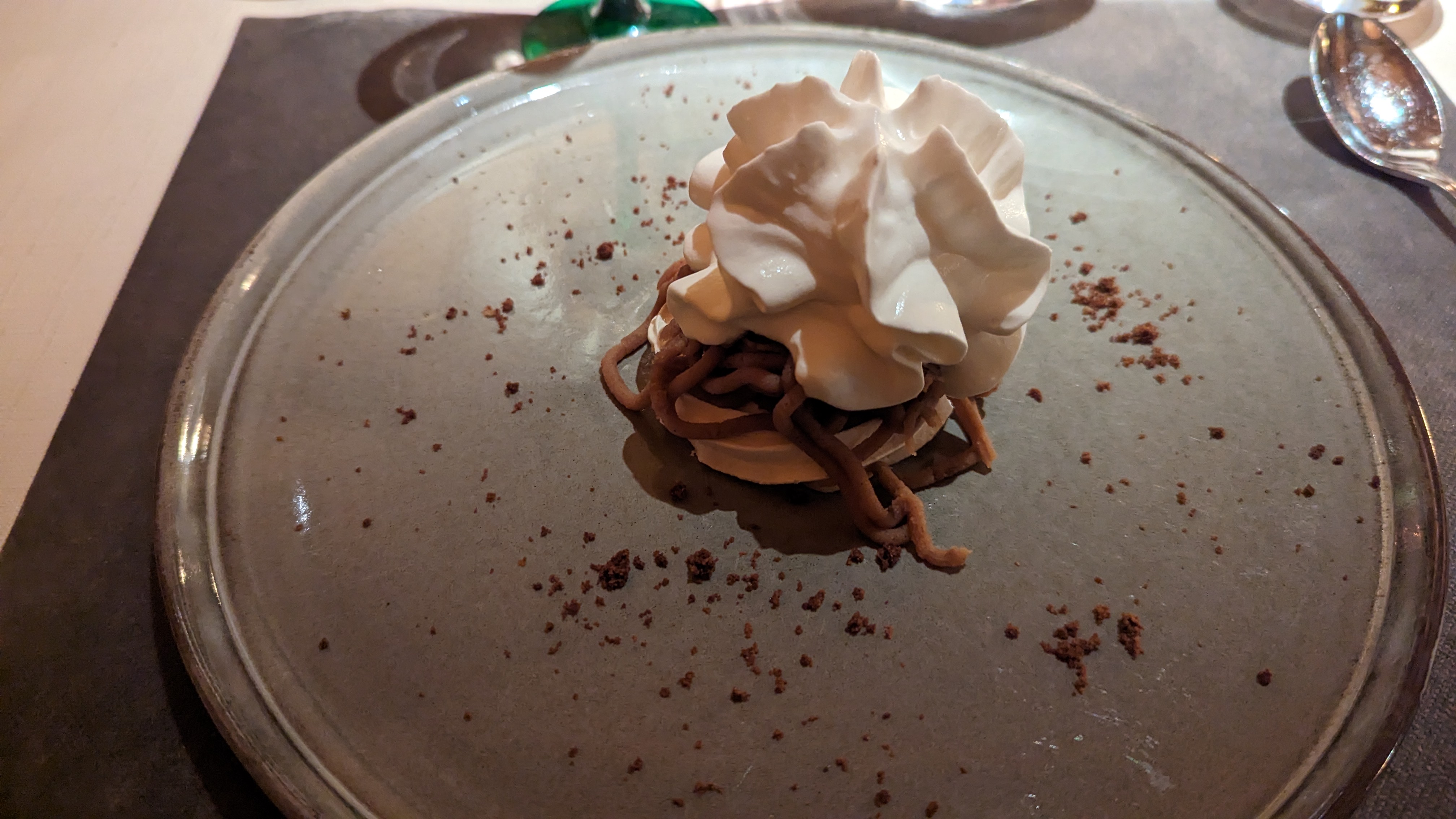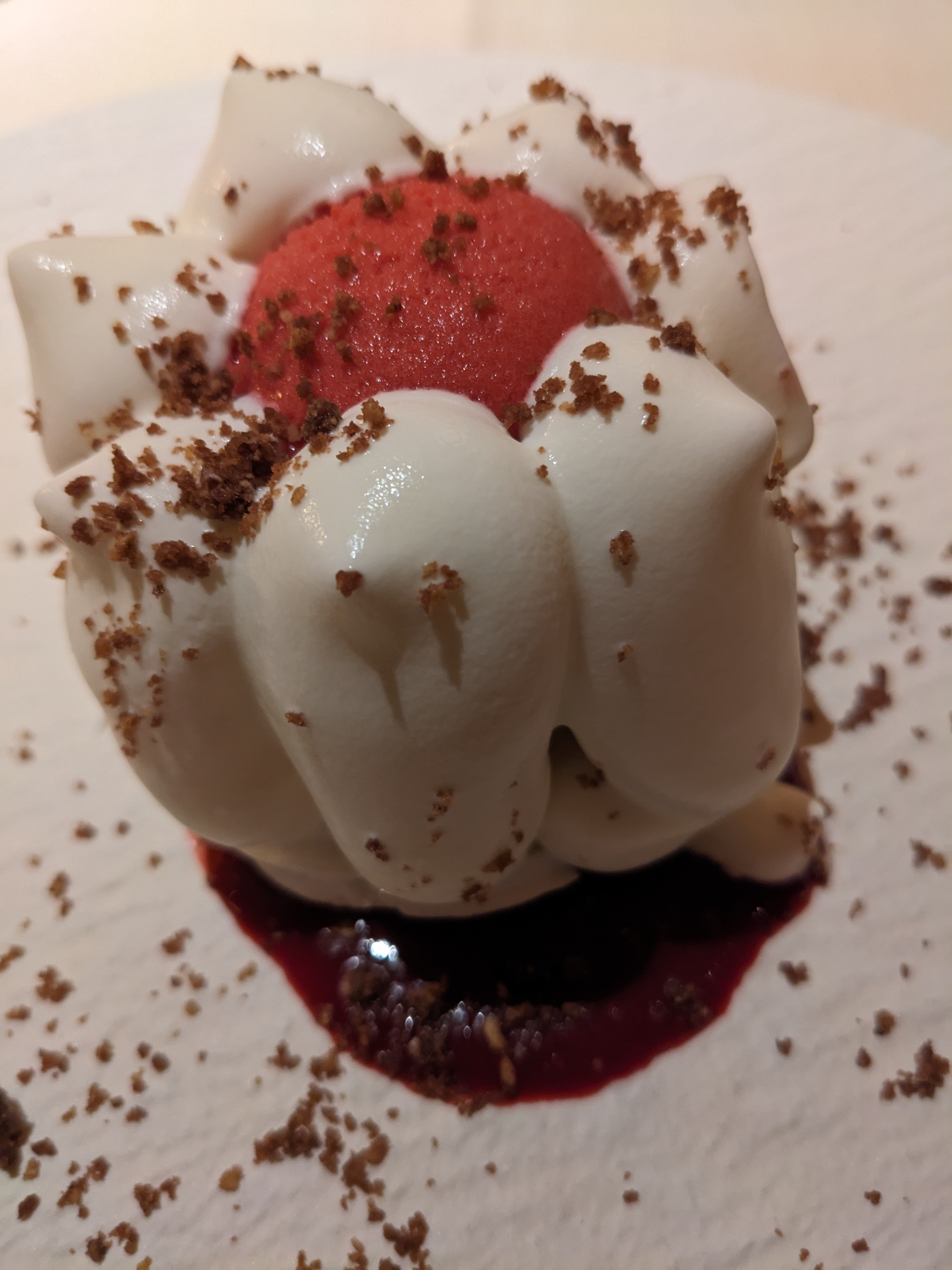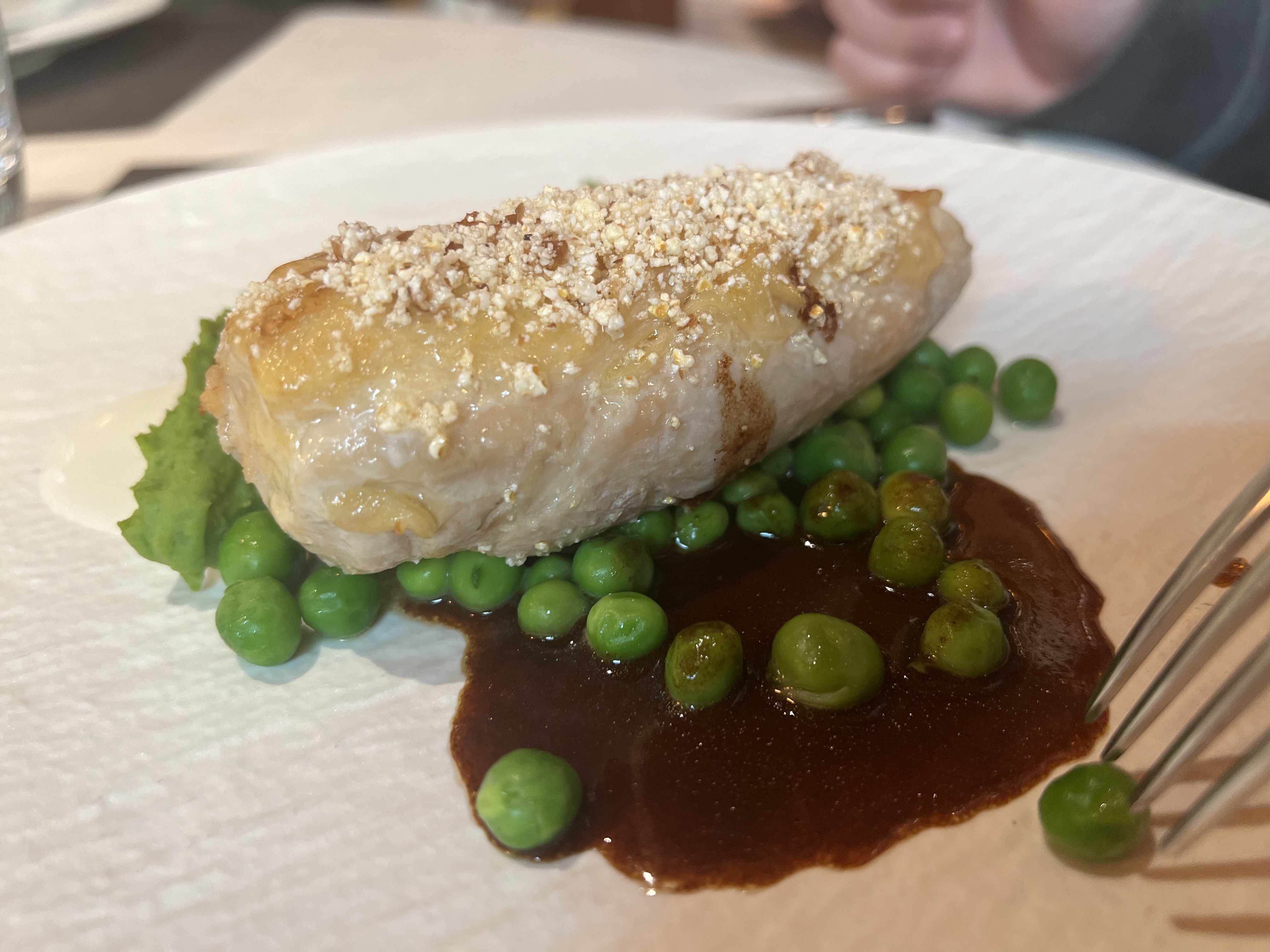Excellent 👌 Un preskoff sublime avec son granité de radis piquant Et un paleron braisé avec un jus sublime Et j’ai switché sur un dessert à la carte : dessert chocolat sur biscuit noisette avec glace cacahuète Sublime 😋 Et mon mari a réussi à manger la mousseline de petits pois . Un exploit ! 😂👌👏