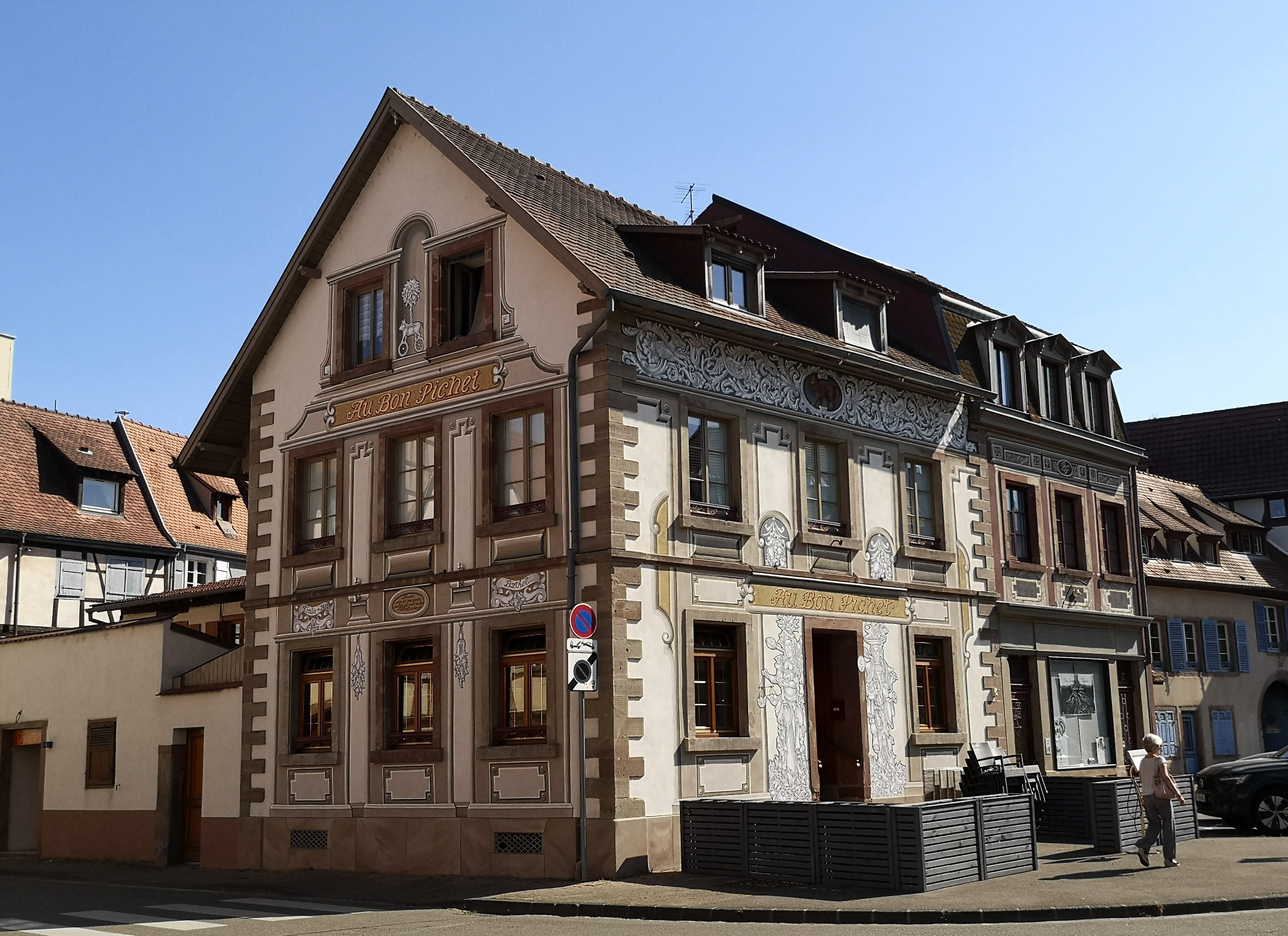 Petit ancien restaurant, super agréable. Ici c'est où les gourmands pur sang mangent et même parfois les plus grands chefs de la France. Au Bon Pichet on peut goûter la passion du bon produit, et surtout au niveau des viandes de première qualité, dans l'assiette! Sur notre table pour quatre, aujourd'hui au déjeuner : Terrine de foie gras d'oie mi-cuit avec une compote aux fruits secs, salade extrêmement fraîche au vinaigrette vraiment très bon à la moutarde de Dijon, 'Dampfnudel' au hareng mariné et raifort. Ensuite une choucroute 'full option' de haute gamme au pommes à la vapeur, des entrecôtes géants AUBRAC, qualité triple A + beurre maître d'hôtel et pommes de terres sautés comme seulement ma grand-mêre savait faire auparavant je pensais. Un filet de canard au choux rouges avec 'Bubblespaetzle' au fromage blanc et pour finir une tarte aux pommes moelleuse et sorbet de framboises, tout fait maison. Mon dieu, c'est pas seulement pour sa nature magnifique et ses villages absolument adorables mais aussi pour la cuisine rustique de grande tradition qu'on vient en Alsace, n'est pas? Incontestablement, parmi nos coups de coeur dans sa catégorie, bravo au chef et au garçon gentil qui nous a servi. Note: aussi les vins sont très bons ... (sur la carte il y a même les grand maisons, comme Weinbach- Faller et Trimbach etc.. , a un prix reasonable)