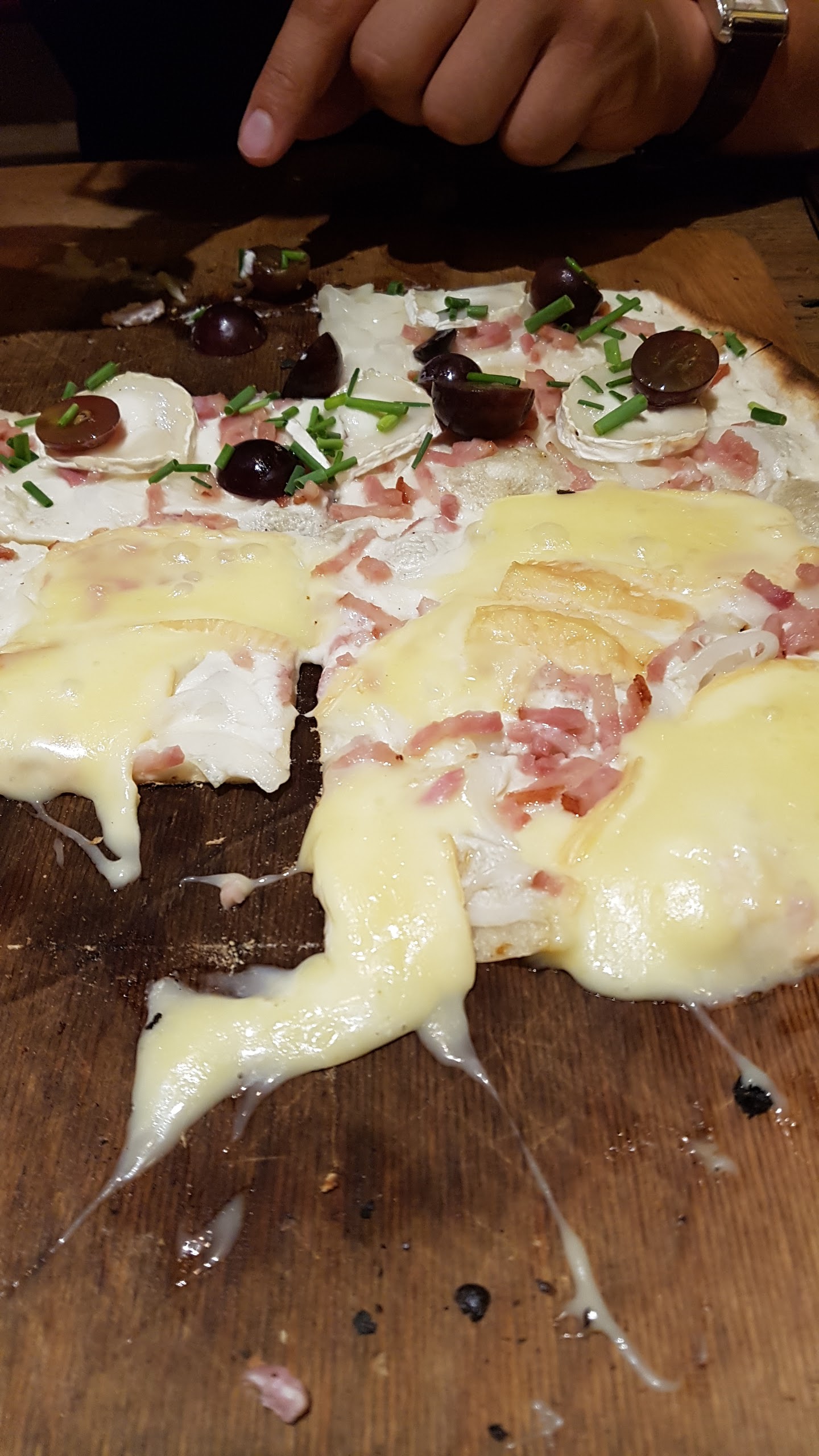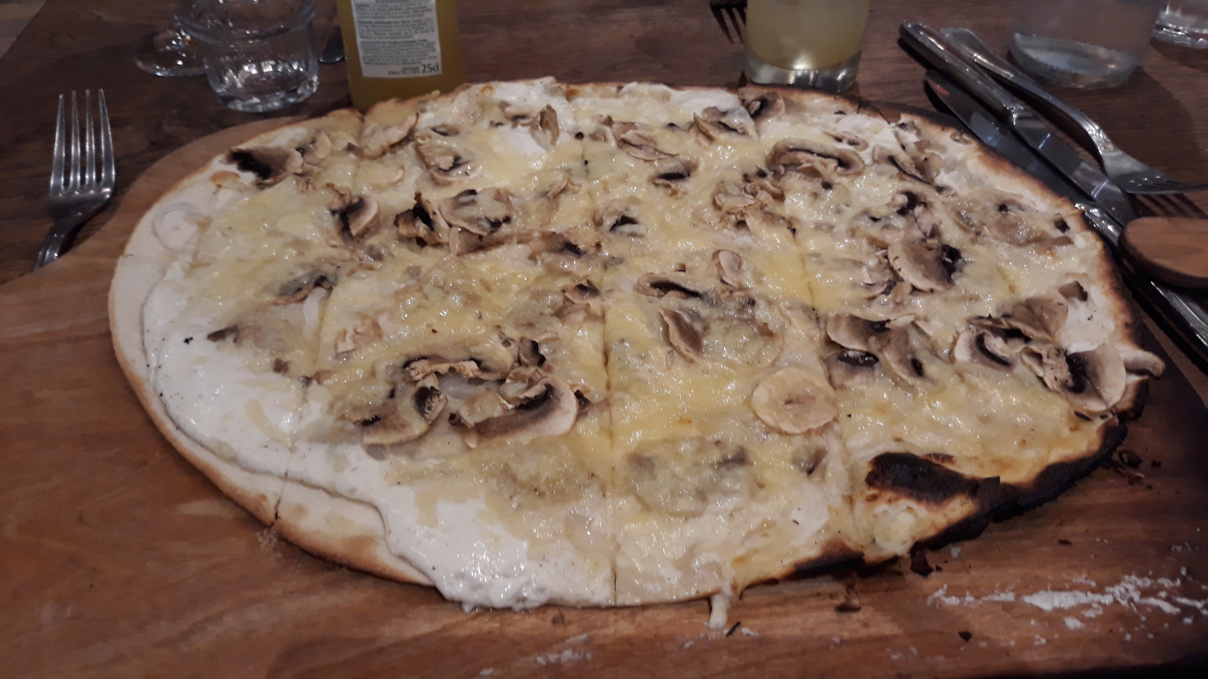 Commandé 2 tartes flambées (Chevre miel et Végétarienne), résultat : c’est la même chose car la différence d’ingrédient c’est raison sec pour l’une et lardons pour l’autre ! Par compte, le point commun est la quantité énorme de fromage au point d’être écoeurant. Seul point positif, le service...