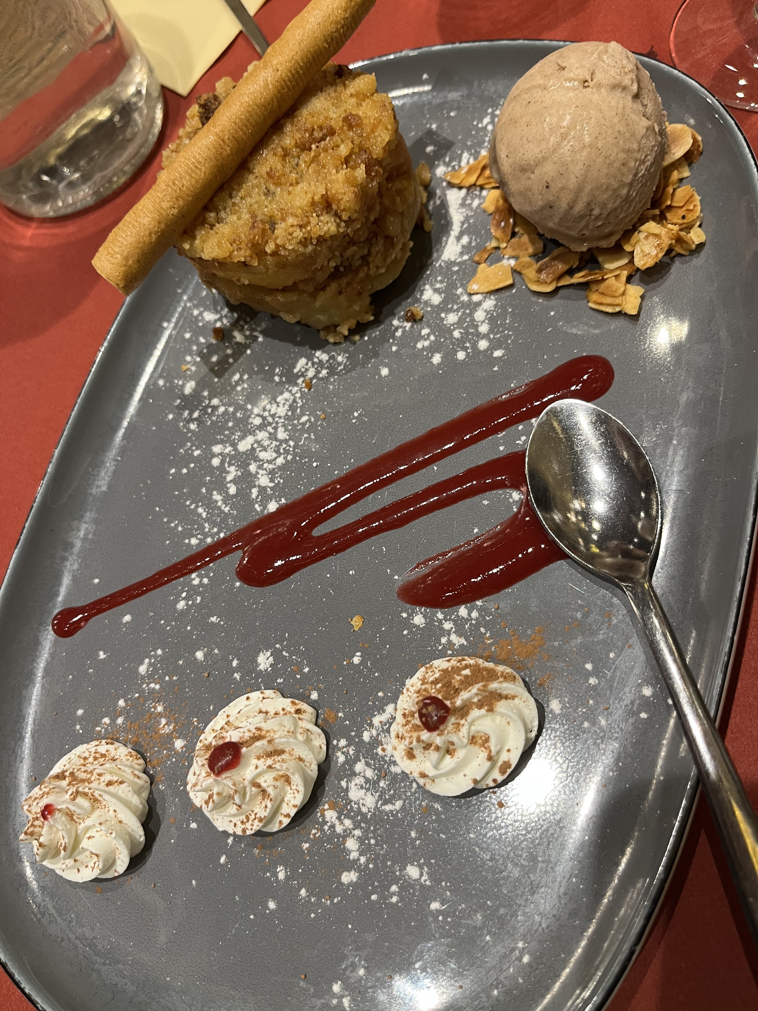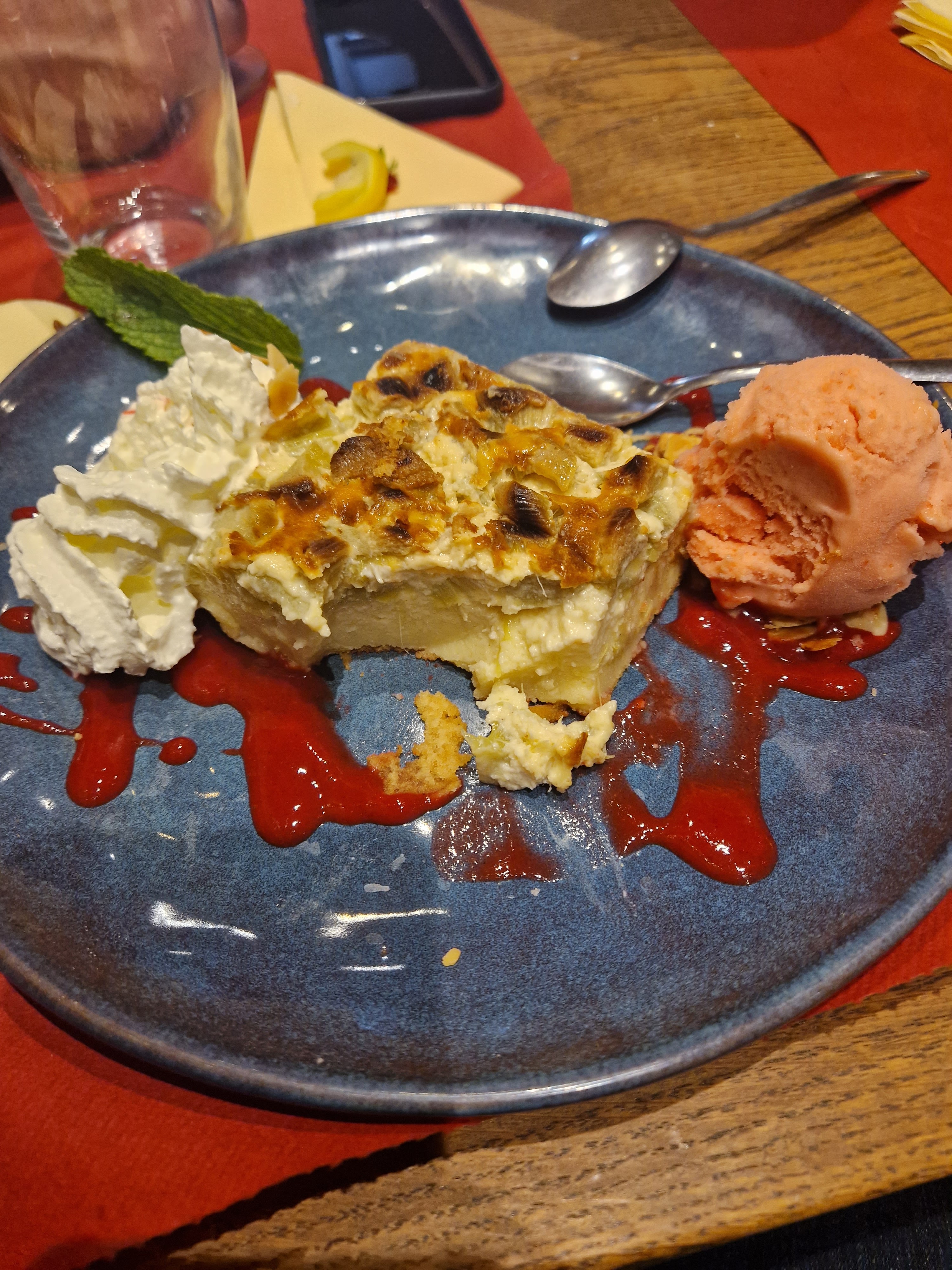 Repas très agréable. Tarte flambée très bonne et le rosti gourmand excellent. Les déserts tout aussi excellents et copieux. Serveur très compétent, gentil, commerçant. À su nous conseiller de façon pertinente et en fonction de nos gouts. Nous avons passé un très bon moment.