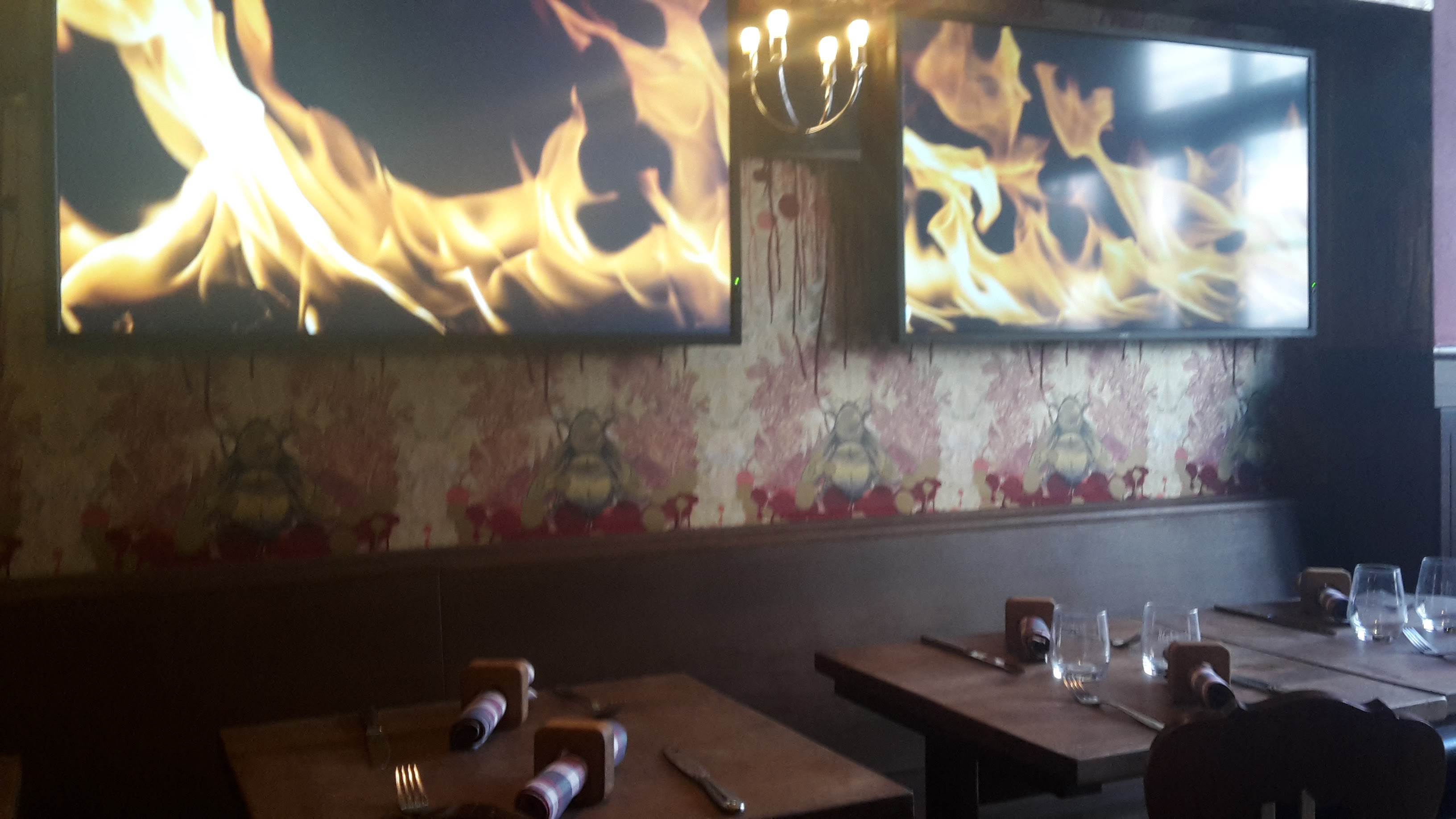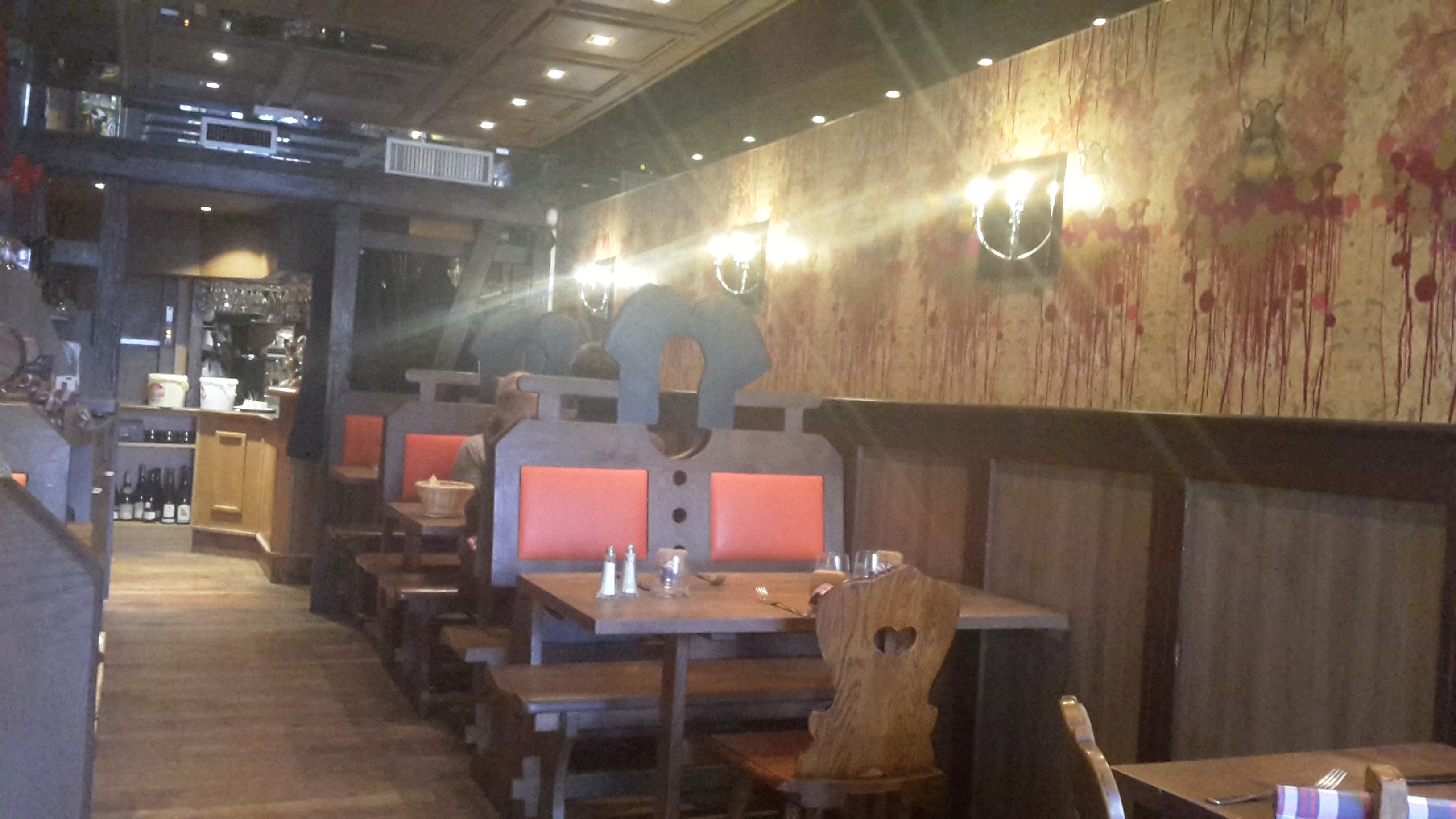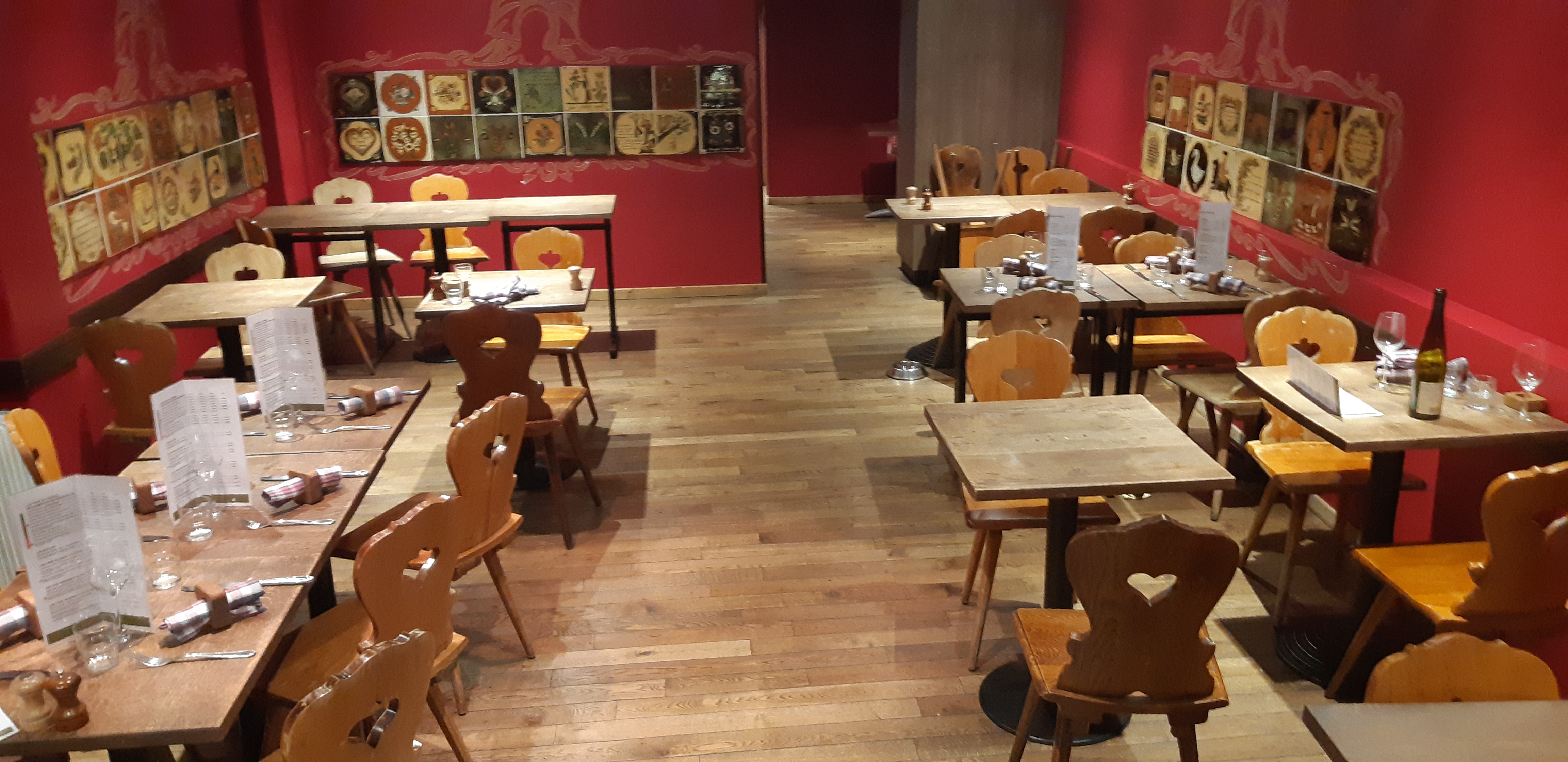 réveillon de Noël réservation obligatoire - service nul, l'extra qui avait été embauché était débordé rapidement. Si on avait été à la soirée du comité des fêtes pour une bonne cause, j'aurais compris le manque de professionnalisme mais là, c'était du grand n'importe quoi. Les commandes qui n'arrivent pas, un verre renversé pas nettoyé, les assiettes qui arrivent froides... Bref, pour le prix demandé on est vraiment loin du compte. Pour le cadre, c'est étroit. Un cadre est taggé à l'étage. Déçu et je ne recommande vraiment pas !