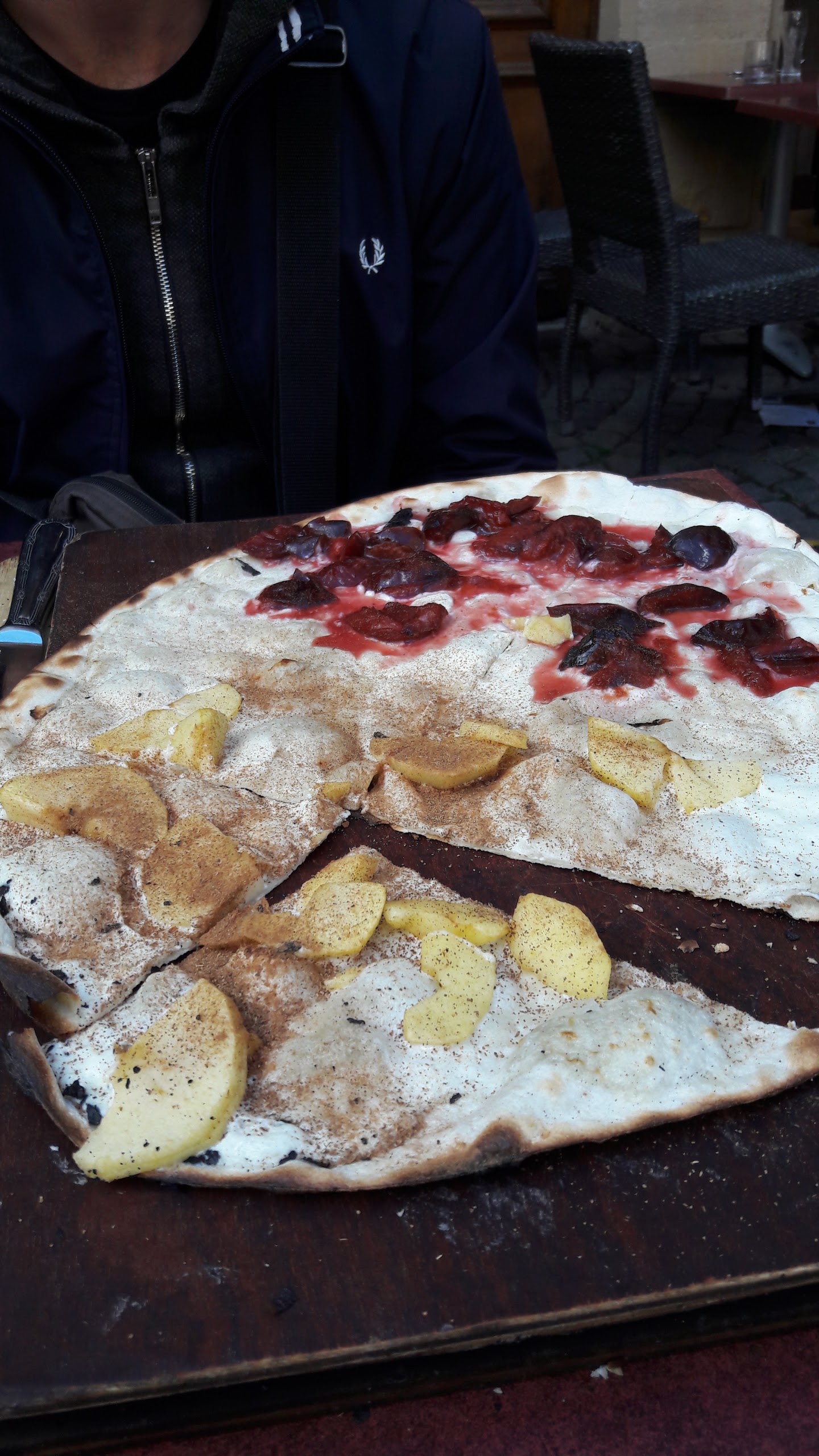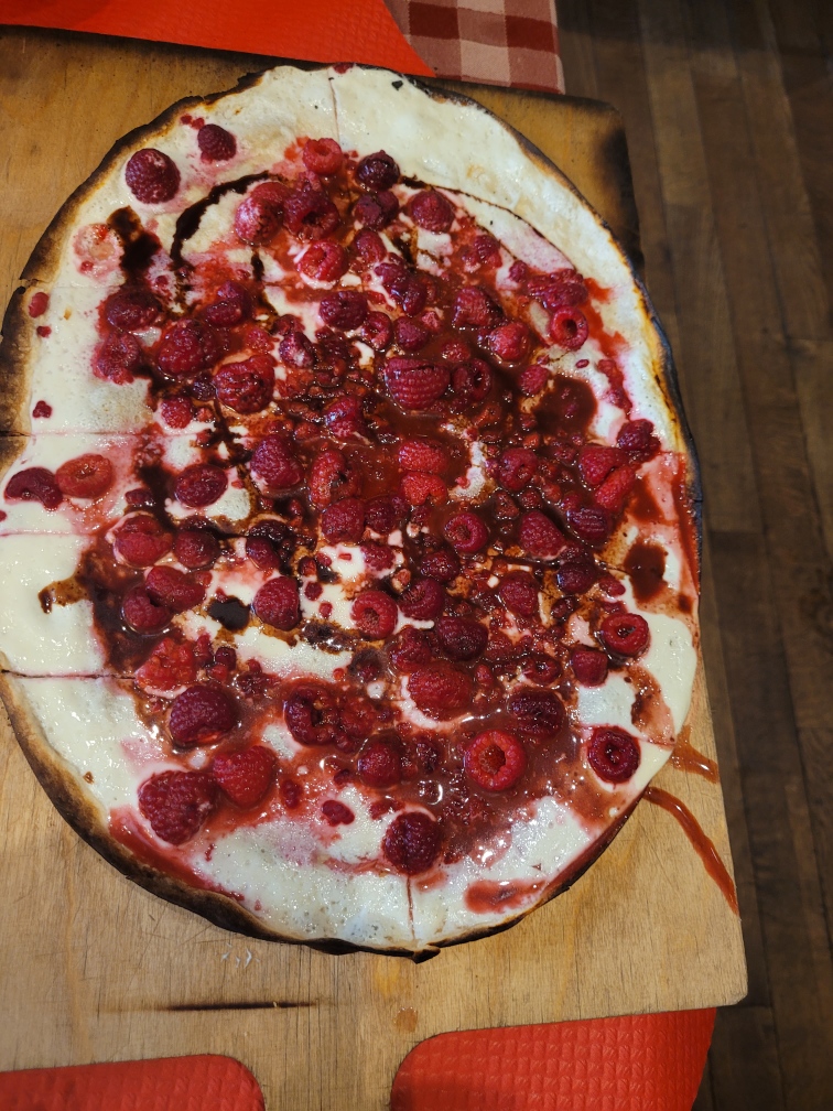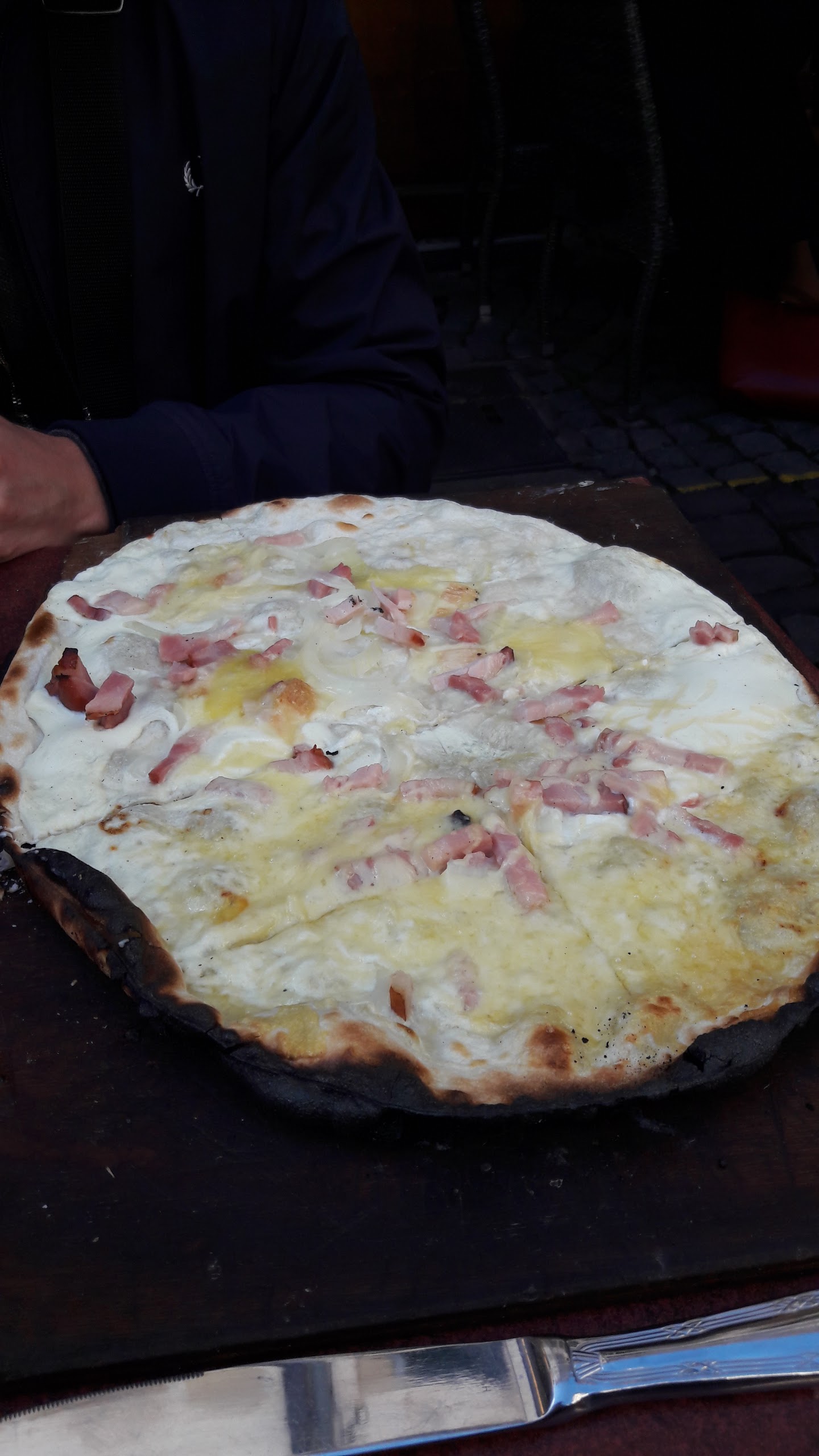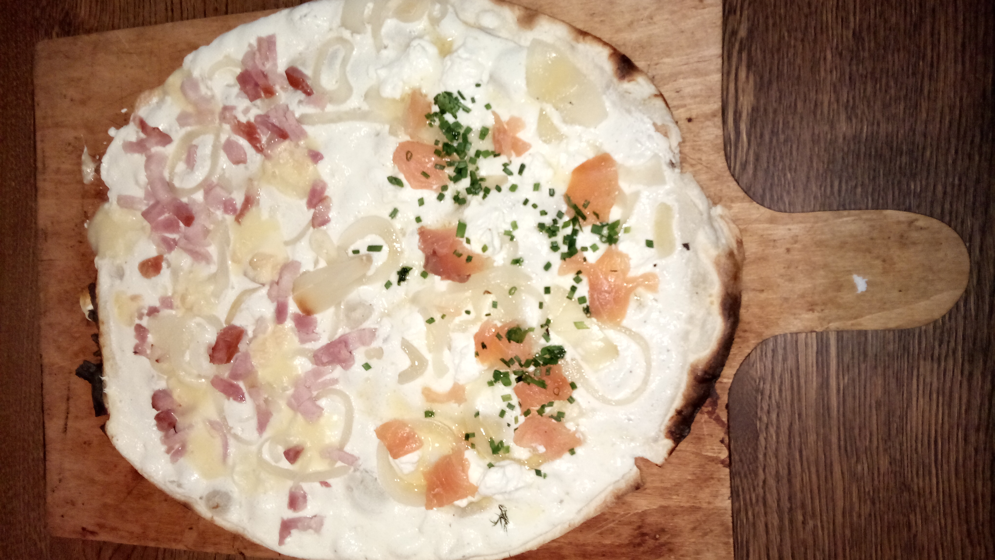 Repas en soirée, rostis et flammekuches délicieuses (particulièrement la framboise/chocolat en dessert). Le serveur est resté souriant et agréable malgré le fait qu'il était seul pour servir.