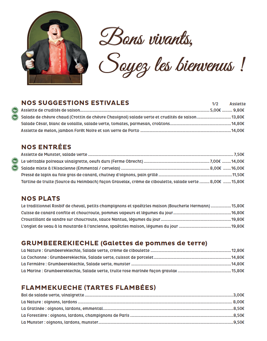 Bonsoir Nous avons mangé dans ce restaurant ce soir avec des amis, nous n’avons pas fait pu finir nos plats avant de quitter le restaurant pour la simple et bonne raison que les plat n’était toujours pas cuit correctement après deux retours en cuisine. Ceci est inadmissible surtout après avoir patienté 1h20 pour les recevoir l’hygiène reste nettement à déplorer étant donné que les traces de rouge à lèvres sur les verres étaient encore présentes le serveur étant très agressif, nous avons décidé de fuir ce restaurant en payant la note tout de même, alors que nous avons consommé uniquement les accompagnements des viandes servies Je ne vous recommande absolument pas ce restaurant pour déguster de la gastronomie alsacienne étant moi-même alsacien, j’en suis très déçu à FUIR.