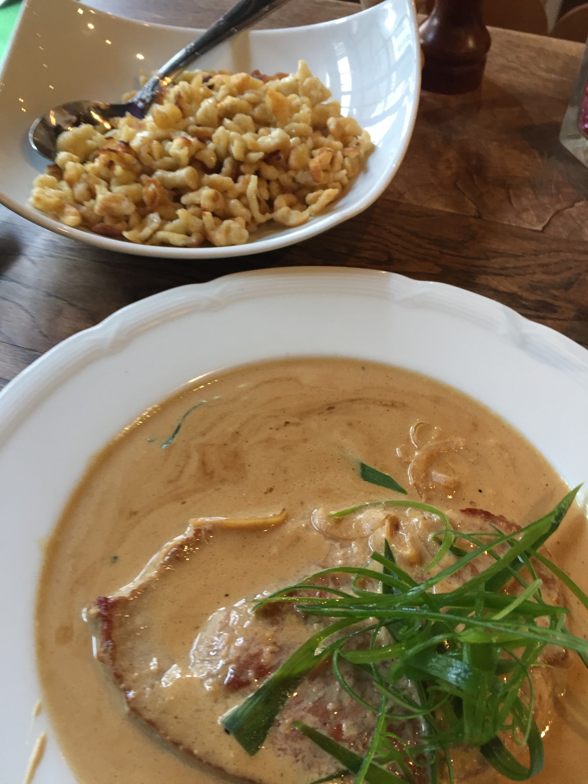 Accueil très chaleureux, serveurs extrêmement sympathiques ! J’ai commandé une escalope à la crème et c’était juste : E-X-C-E-L-L-E-N-T : des spaetzles frais et fais maison, une sauce très bonne et servit en bonne quantité ! ... je recommande à 100%!
