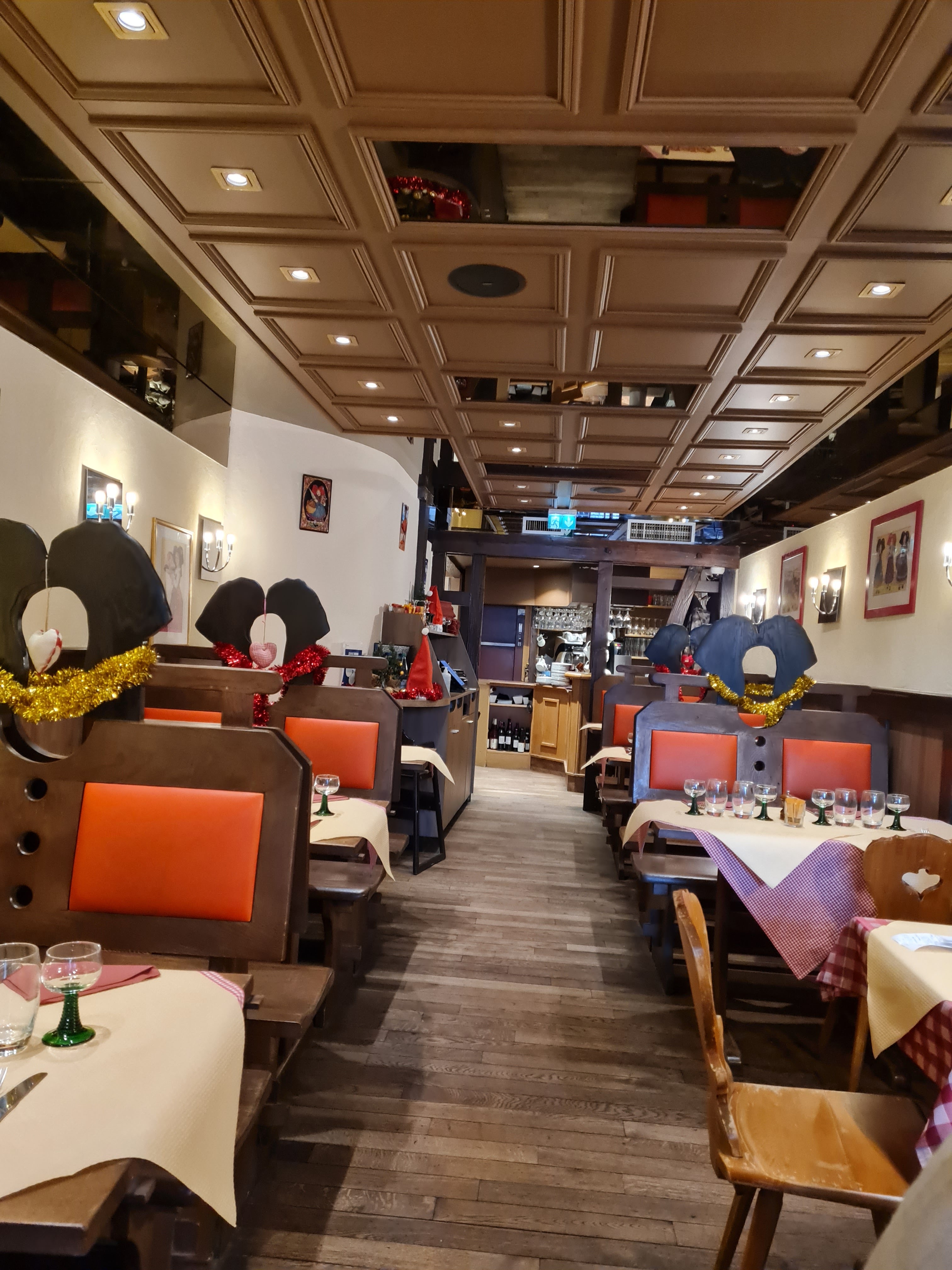 Un petit restaurant d'un style typique alsacien/germanique qui propose des menus de spécialité alsacienne notamment le flammekueche. La portion de ce plat est suffisant pour une personne. Le seul défaut c'est que ce resto n'est pas du tout spacieux, mais si vous cherchez de l'intimité avec votre famille, copain/copine ou vos camarades, vous êtes dans un bon endroit.