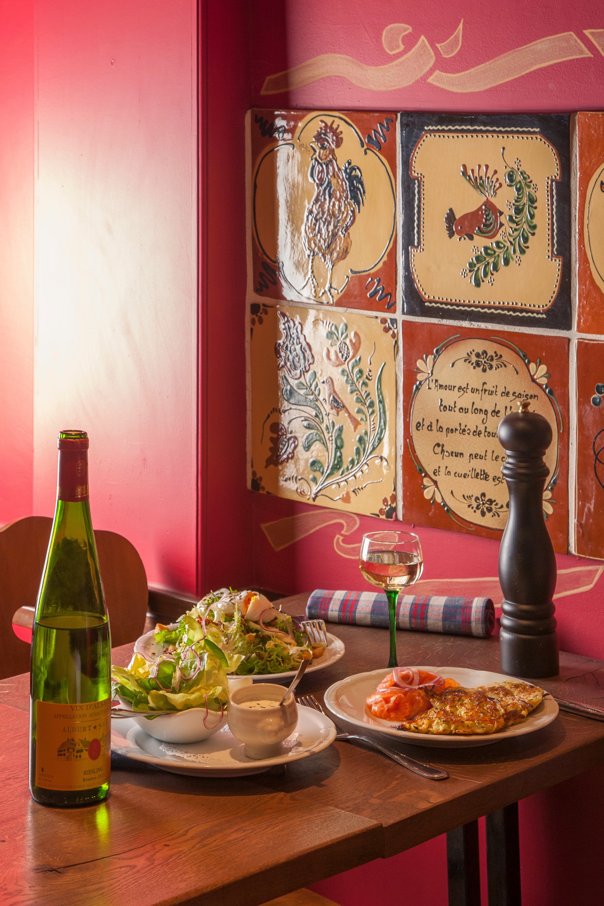 Un restaurant typiquement alsacien, avec des plats traditionnels bons, bien exécutés et copieux. Le service est correct, on manque cependant un peu de place lorsqu'on est 4 à table. Autre bémol, la taille de la carte : elle est assez restreinte, ce qui augure l'utilisation de produits frais, des plats fait maison, mais n'incite pas vraiment à revenir pour goûter autre chose.