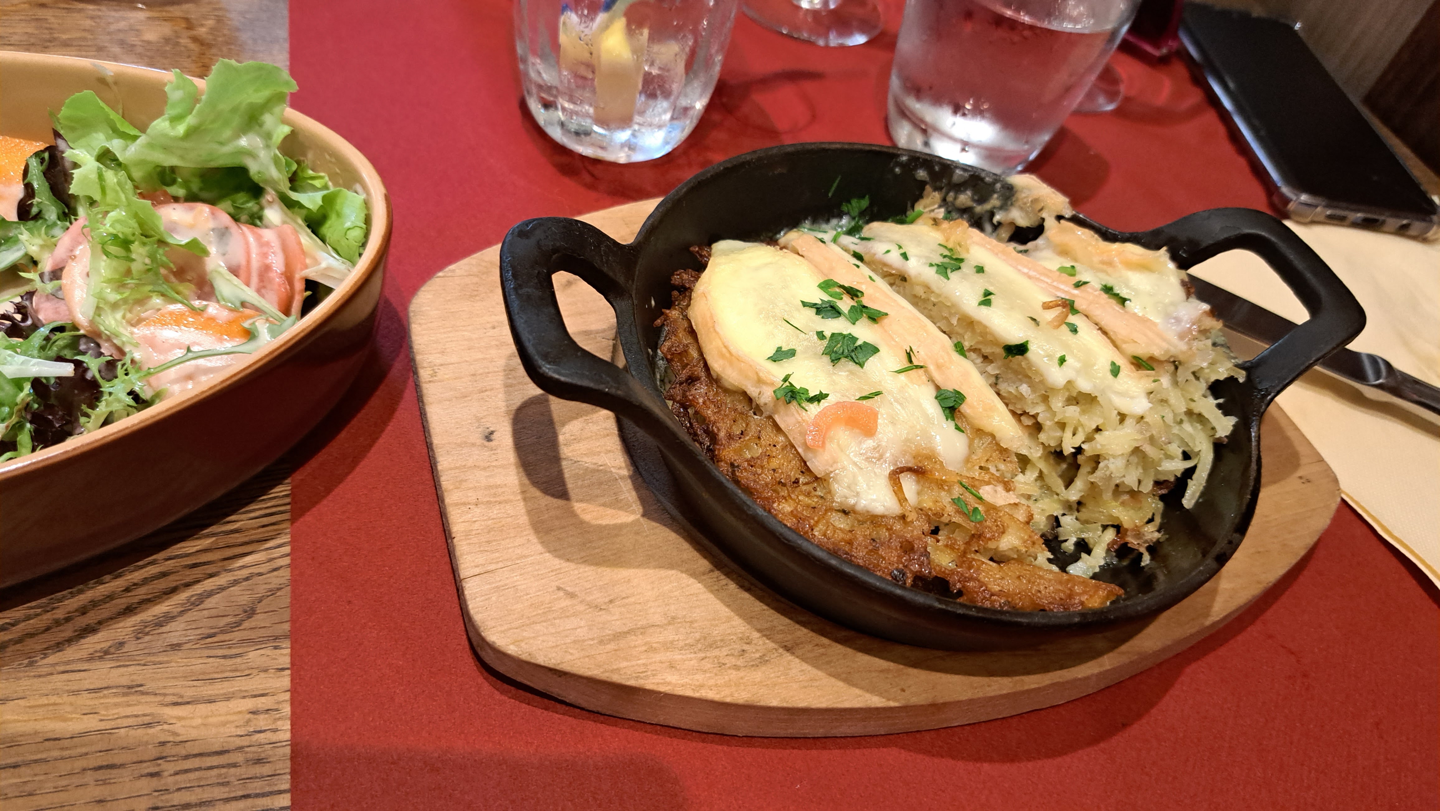 Bonne surprise, un plat de très bonne qualité. Ils ont réussit à trouver un changement optionnel savoureux pour un de leur plat puisque j'étais réticent pour un fromage proposé dedans. Le service était au petit soin avec nous et très agréable Point négatif l'attente était un peu longue mais pour moi elle en valait la peine.