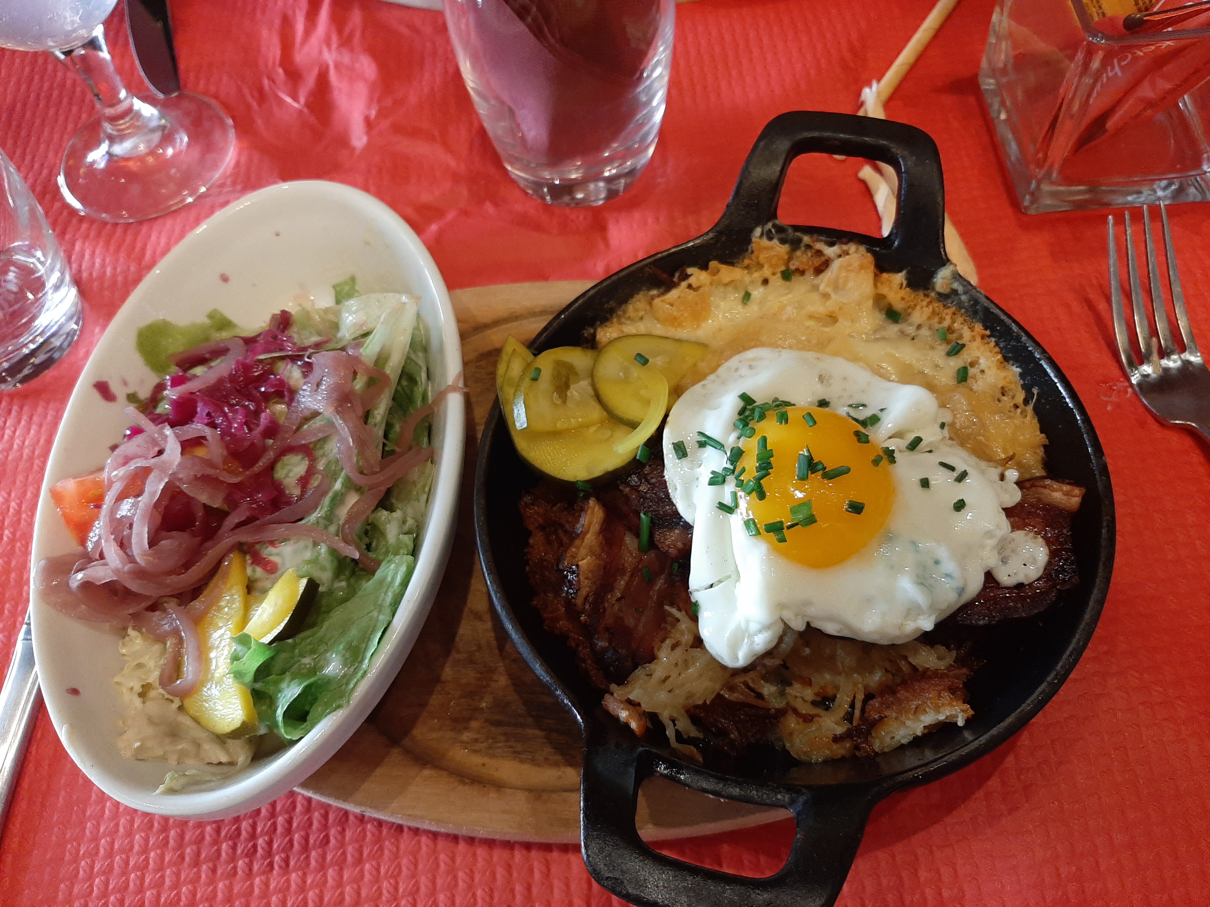 1h30 d’attente et en excuse nous dire qu’ils font 50 couverts, restaurant loin d’être complet donc incompréhensible ! J’ai commandé une salade alsacienne et c’est le dernier plat qui est arrivé puis au vue de la couleur du gruyère elle avait été préparée à l’avance donc je ne comprendre pas pourquoi autant d’attente, quand on demande une info on nous répond de manière agressive.. enfin bon je ne recommande pas du tout
