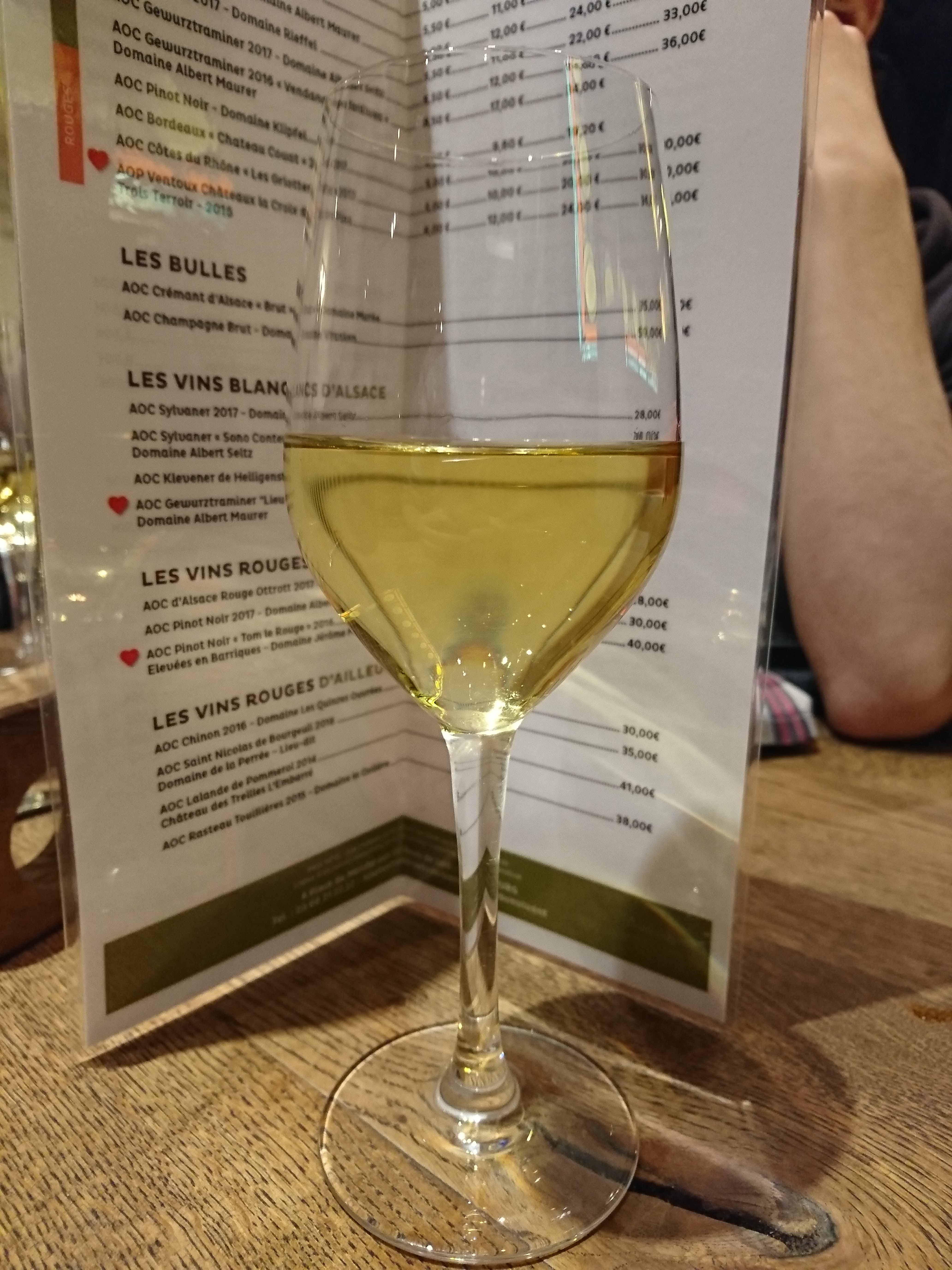Découvert suite à une réservation La Fourchette d'un ami; Sélection de vins alsaciens de qualité, un foie gras maison succulent ! Les plats principaux sont peu nombreux mais ceux-ci sont de qualités: vous avez la possibilité de manger du cheval ! La truite gravlax fut une excellent découverte pour moi. Le dessert du jour était une excellente tarte aux pommes maison, la part était copieuse et m'a un peu surpris à la fin du repas ! Serveur très agréable et avait l'air à l'aise avec la clientèle allemande qui était à nos côtés.