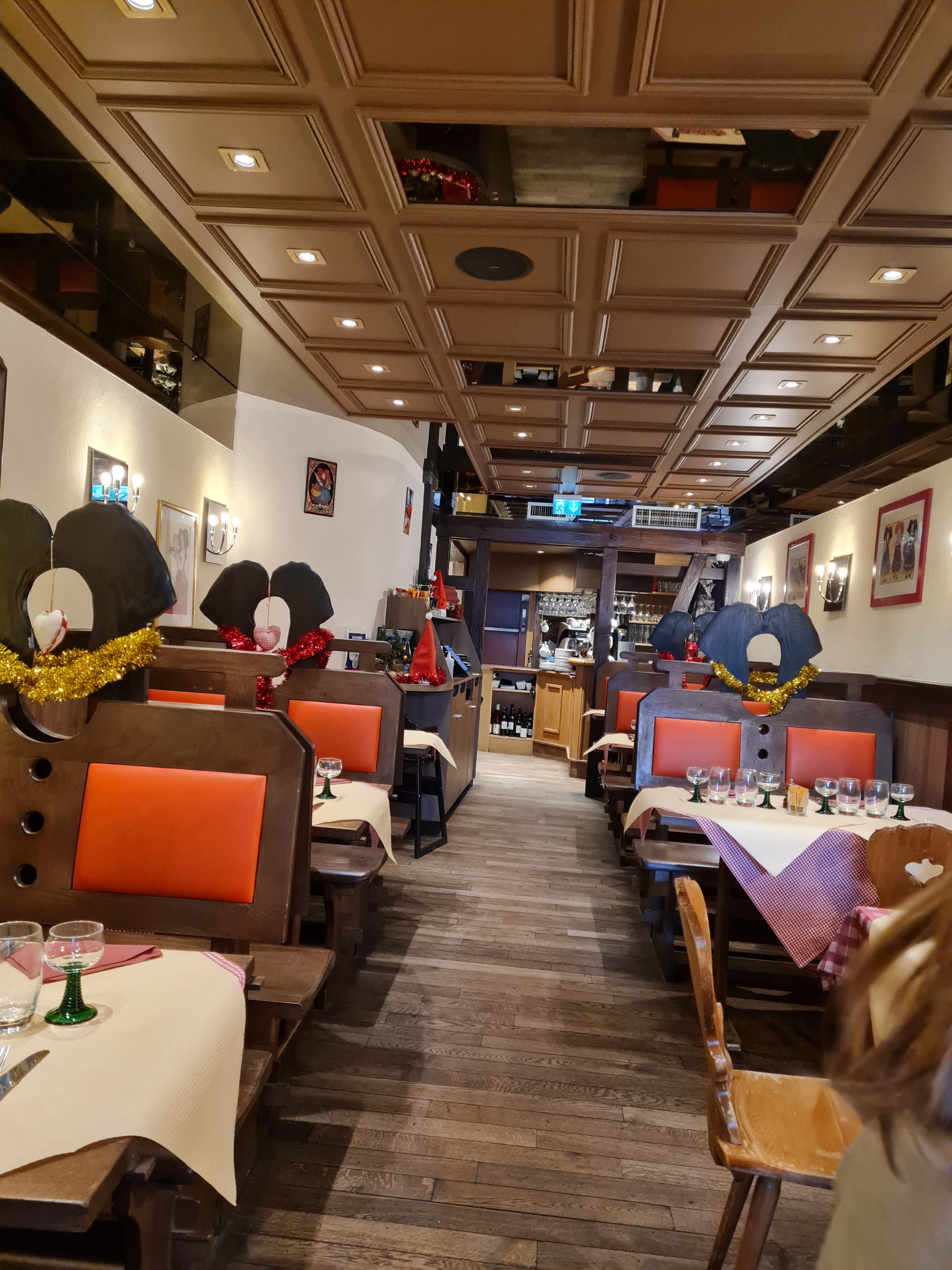Petit restaurant pas très loin de la cathédrale de Strasbourg, décoration traditionnelle sans tomber dans le kitsch. Concernant le repas les plats sont bon ni trop peu servis ni de trop. La qualité du service était au top malgré les quelques Couacs qui leurs sont arrivés.