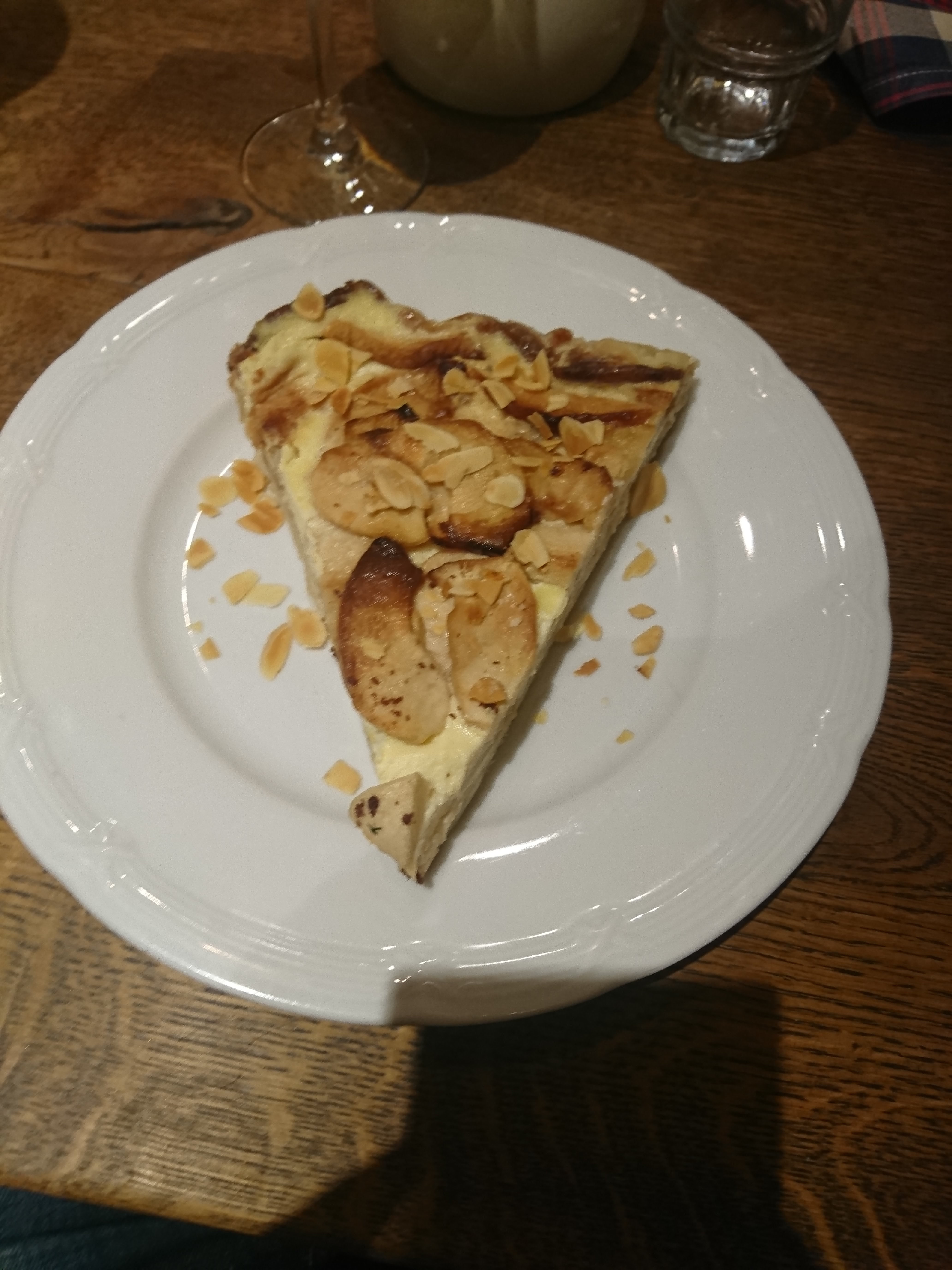 Tout avait excellemment commencé avec deux flamenkuches fantastiques, Plats copieux et bons , galette de pomme de terre, jambon forêt noire, saucisses , tout était authentique et bien servi, mais le dessert malgré une très belle présentation était VRAIMENT DÉCEVANT: tarte aux pommes passées , pâte brisée rance et mouillée, c est vraiment dommage, ça peut arriver, le serveur a d ailleurs omis de nous prévenir de la fermeture des cuisines afin de nous laisser plus de choix sur les desserts ce qui nous aurait évité peut-être cette désolation. ,( restaurant visité une première fois il y a 2 ans qui nous avait laissé un super souvenir )