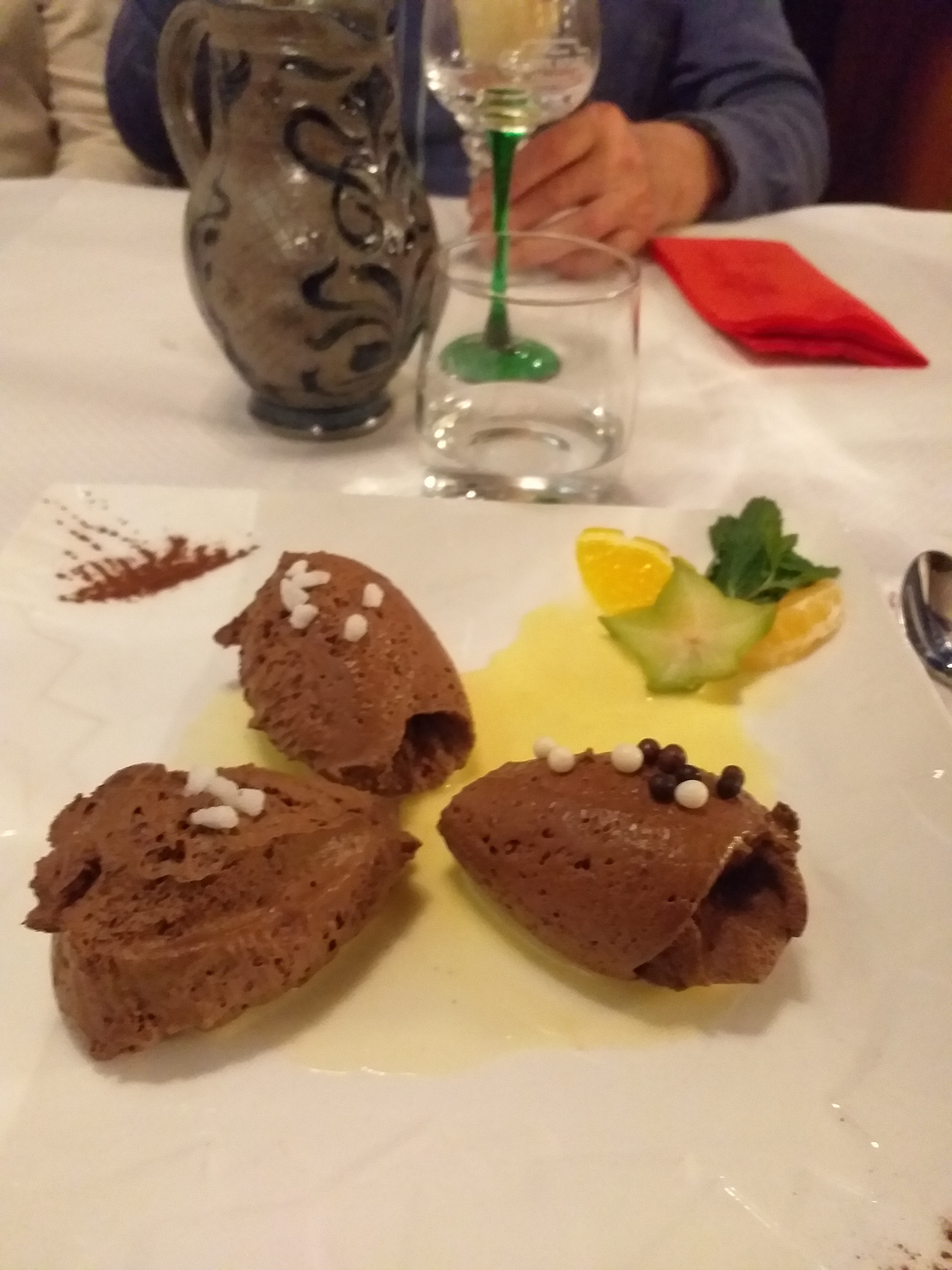 Joli décor intérieur comme extérieur, mais déçu par le plat, le pain chaud mais pas d'aujourd'hui, la bouteille déjà ouverte et trop froide.