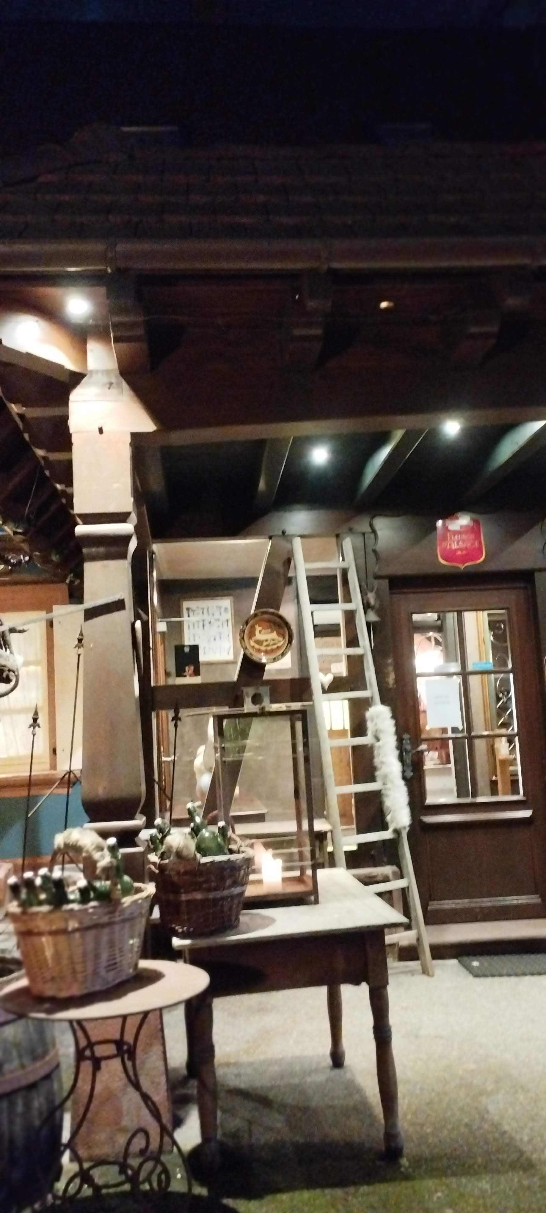 Une découverte originale et gourmande lors d' un déjeuner. Accueillis par une décoration originale où se mêlent les pièces d' un collectionneur, une forêt temporaire de sapins et de belles décorations de fin d'années, on se sent tout de suite les bienvenus. Le pas de la porte franchi, l' accueil est très agréable, la salle à la décoration typiquement alsacienne est belle, chaleureuse et confortable. Ce jour était proposé (entre autres) un civet de cerf parfaitement cuisiné que j' ai dégusté avec plaisir. La carte est sobre, plutôt bon signe à mes yeux.