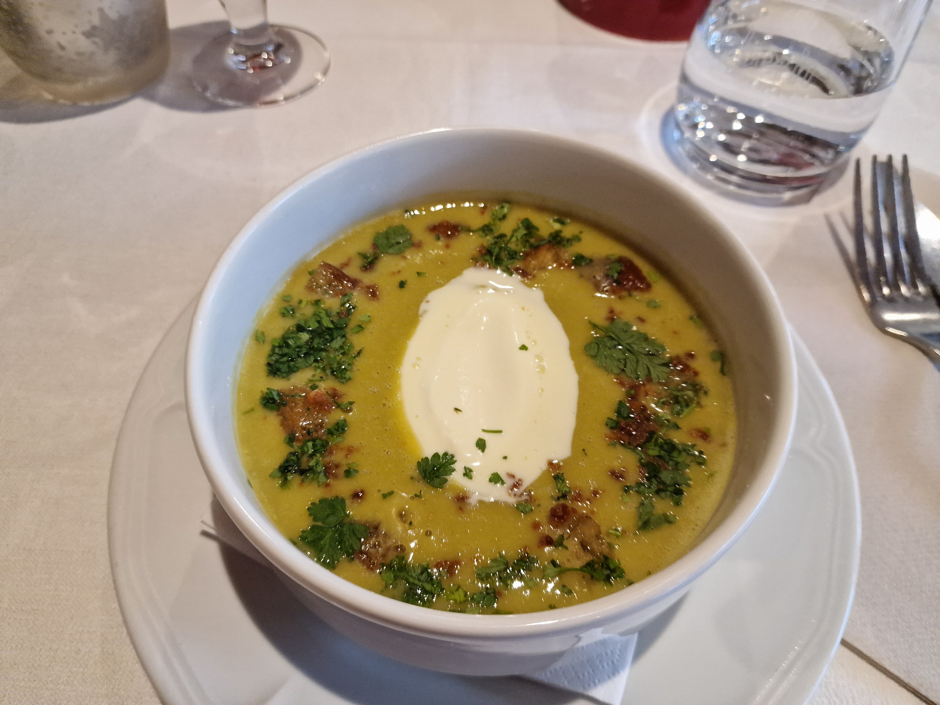 Toujours à un niveau élevé. Bien fréquenté, mais sans agitation. Le personnel est extrêmement sympathique. Nous avions une place sur la terrasse confortable, qui se trouve malheureusement juste dans la rue principale, mais qui est séparée par une haie. Les plats étaient tous excellents, appétissants et très savoureux. Outre les plats de poisson et de viande, des (très bonnes) tartes flambées sont également proposées le soir. Une visite en vaut vraiment la peine. Le rapport qualité/prix est à un niveau élevé, en rapport avec la qualité.